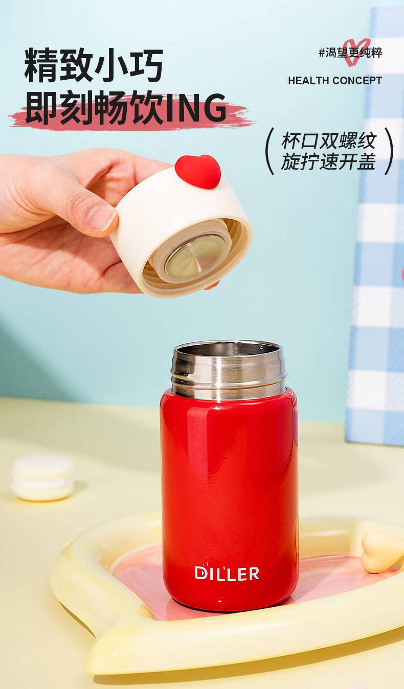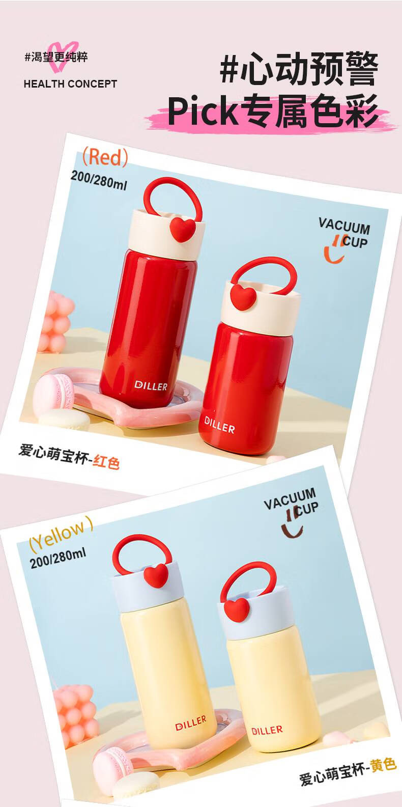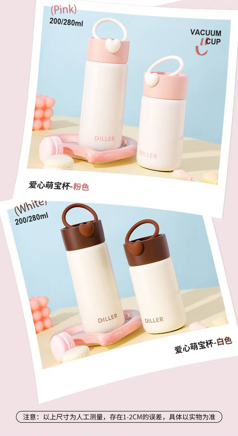 迪士尼(Disney)hellokitty迷你保温杯女生可爱便携泡茶水杯316不锈钢小容量杯子 粉白+kitty公仔+凯蒂猫 280ml