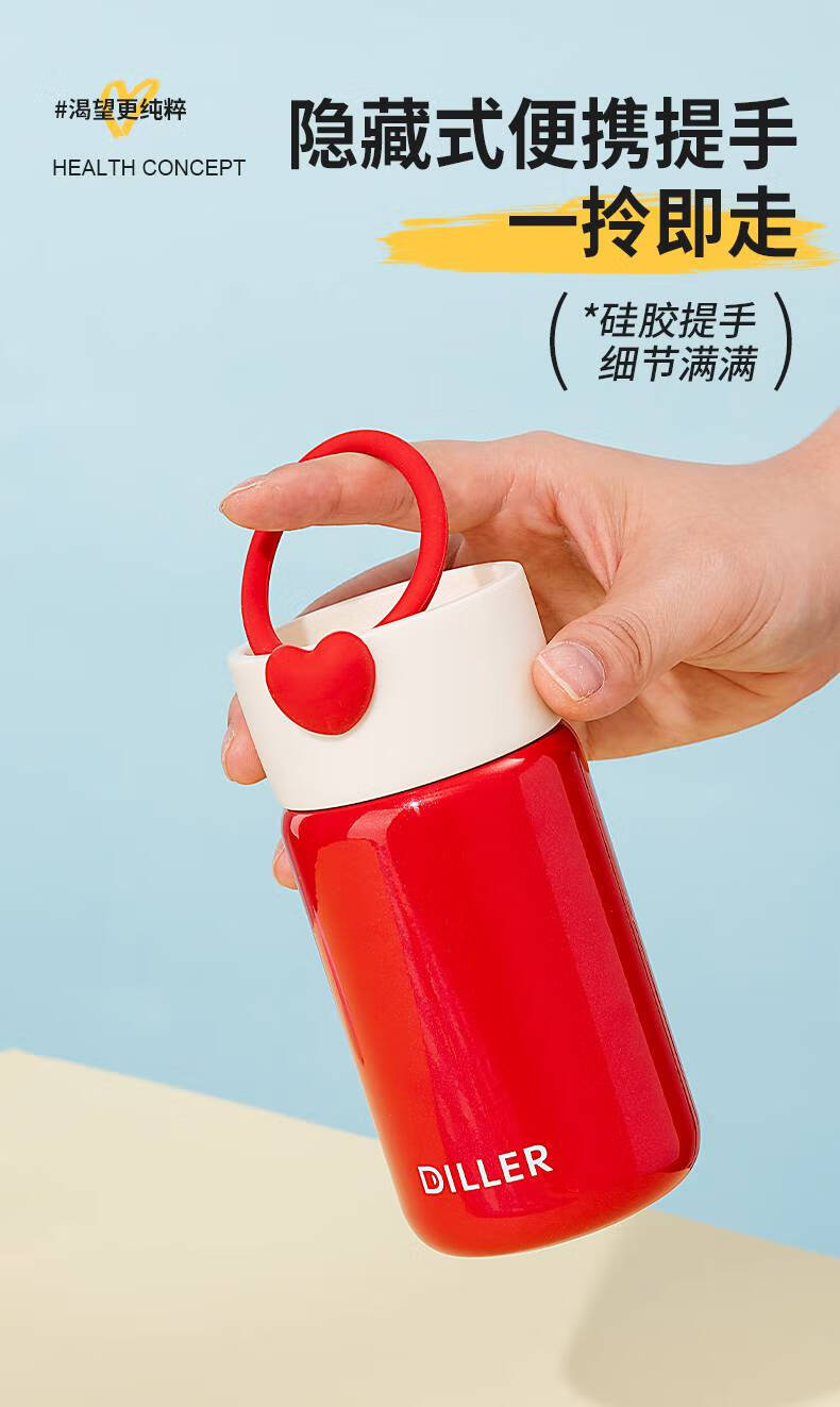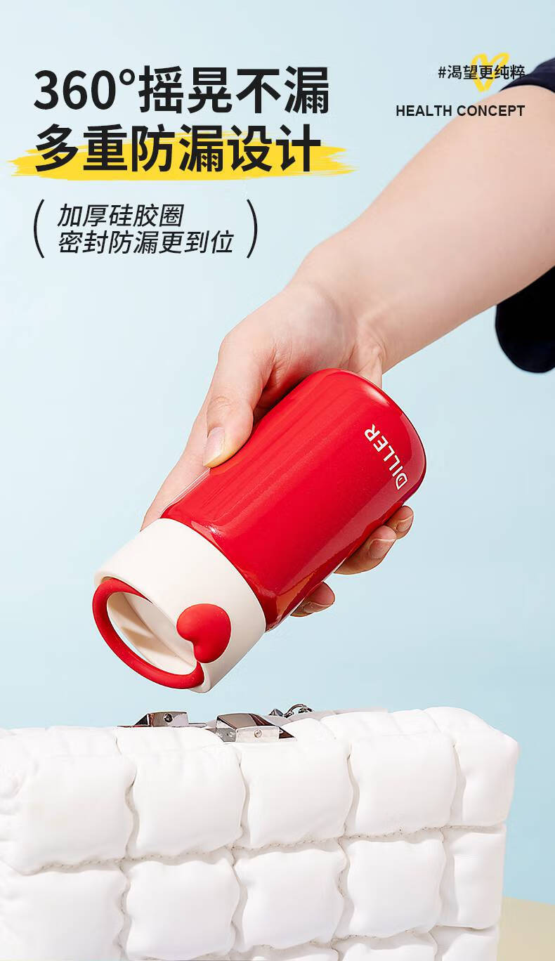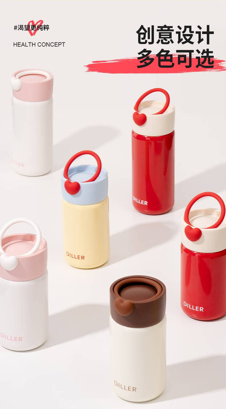 迪士尼(Disney)hellokitty迷你保温杯女生可爱便携泡茶水杯316不锈钢小容量杯子 粉白+kitty公仔+凯蒂猫 280ml