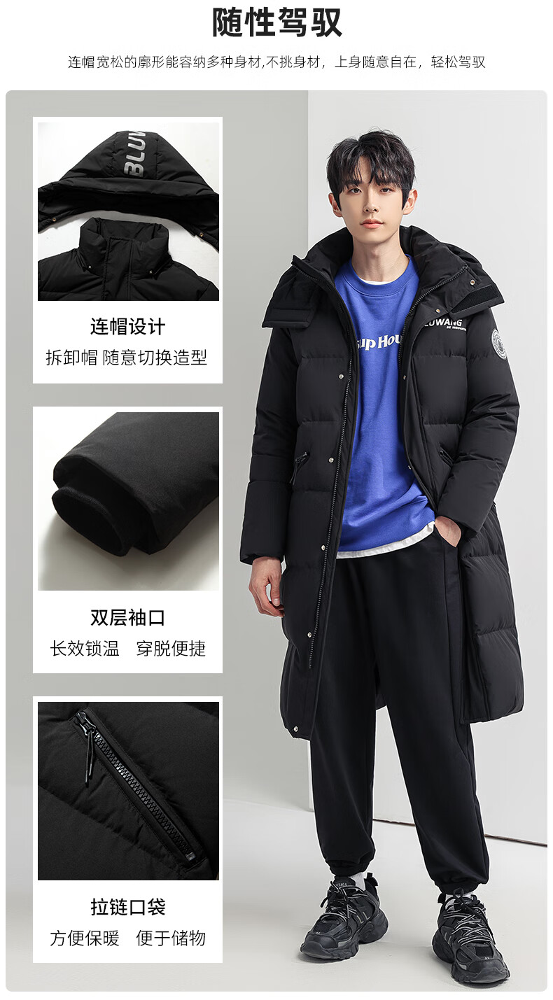海澜之家(HLA)羽绒服男25新款运动SPORTSDAY抗静电外套男冬季 黑色3C L 175/92A 推荐140-160斤