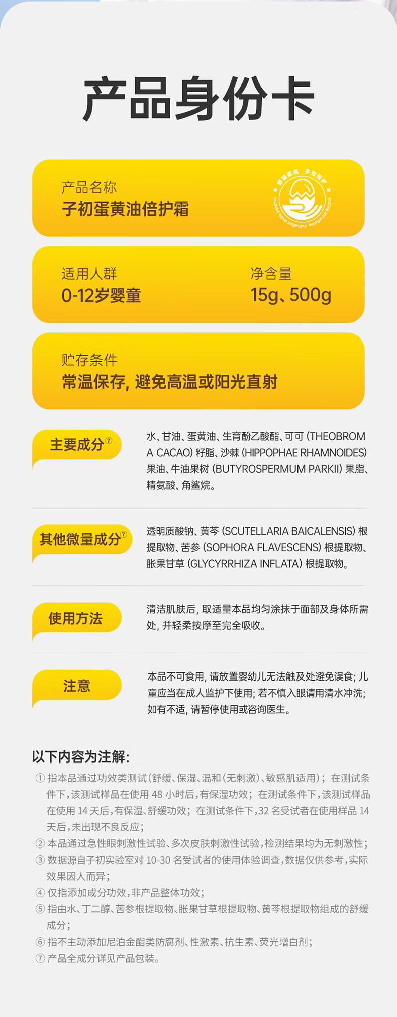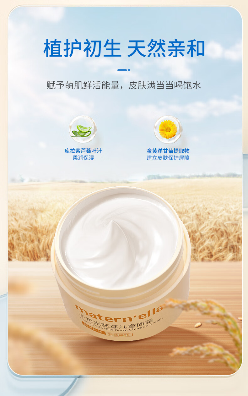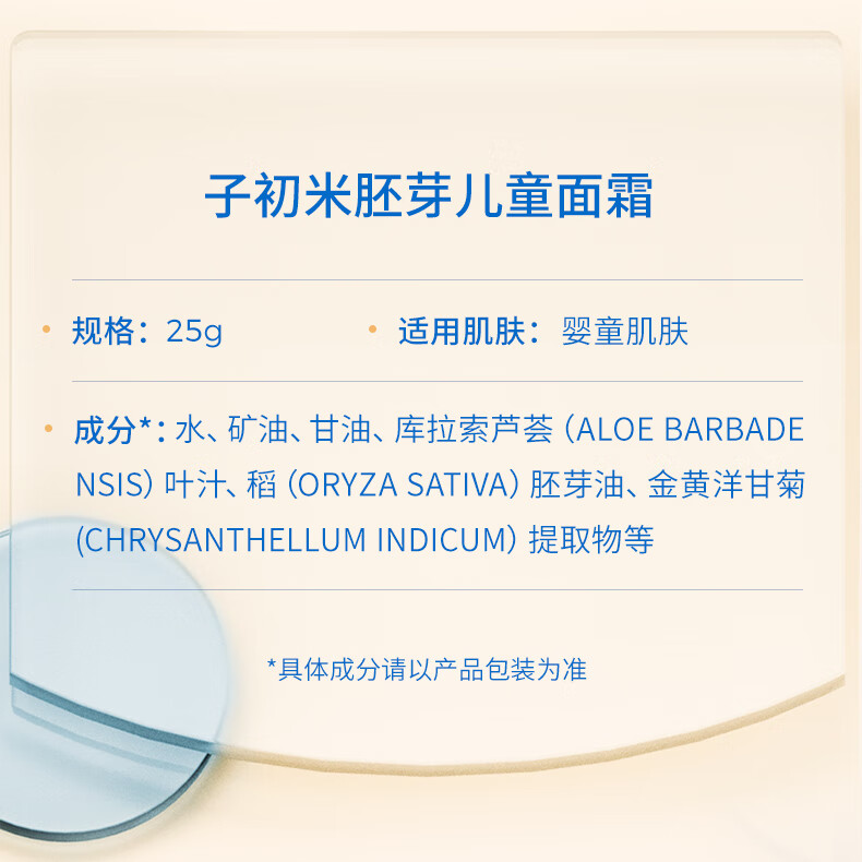 子初儿童蛋黄油面霜舒缓保湿大容量面霜婴儿宝宝润肤乳 米胚芽儿童面霜 25g/瓶*2