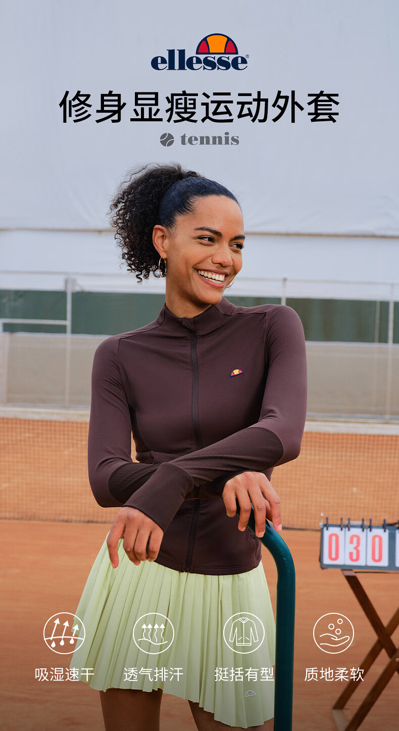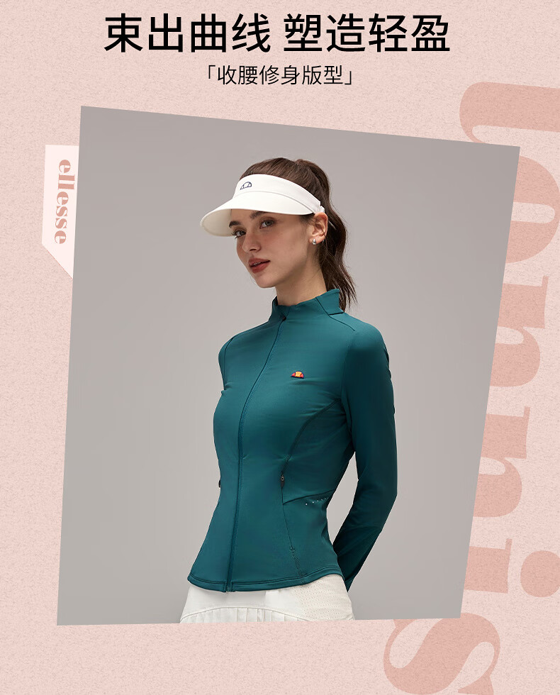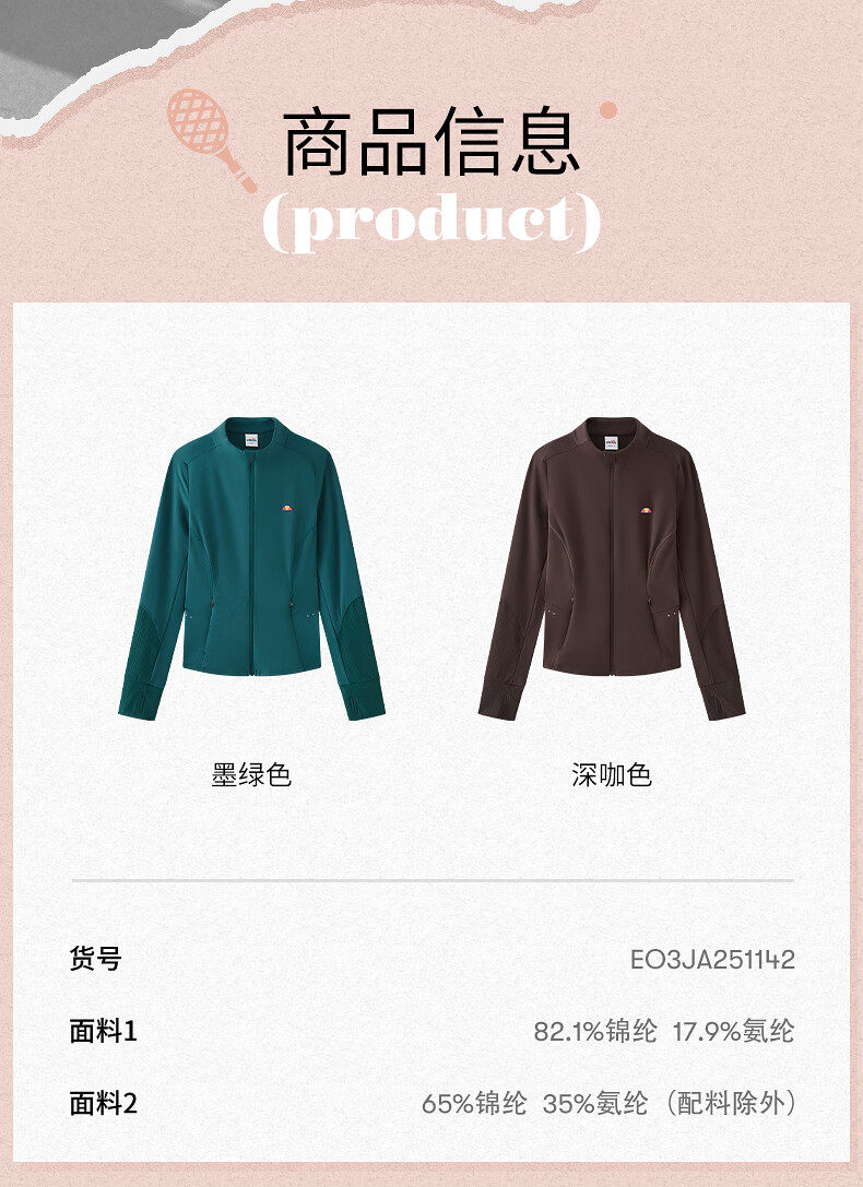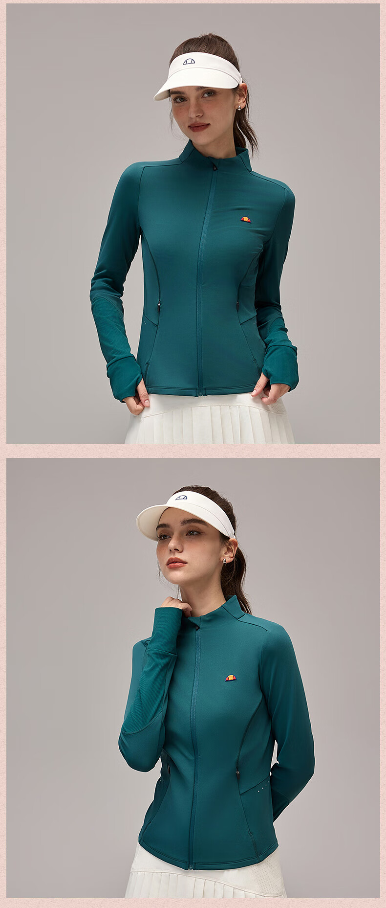 ellesse小贝壳时尚修身显瘦插肩网球运动外套 墨绿色 L
