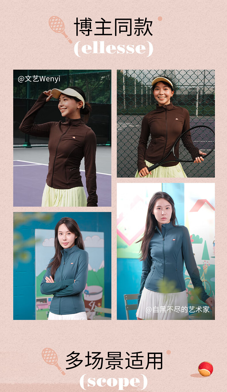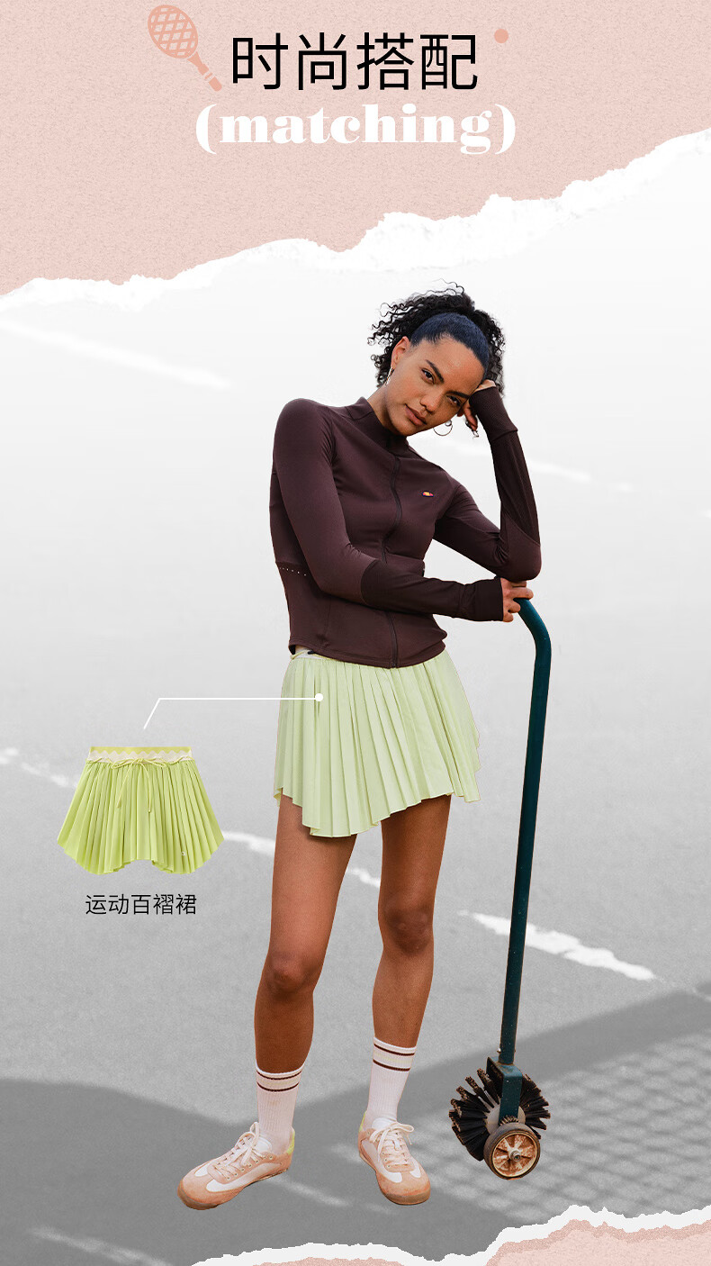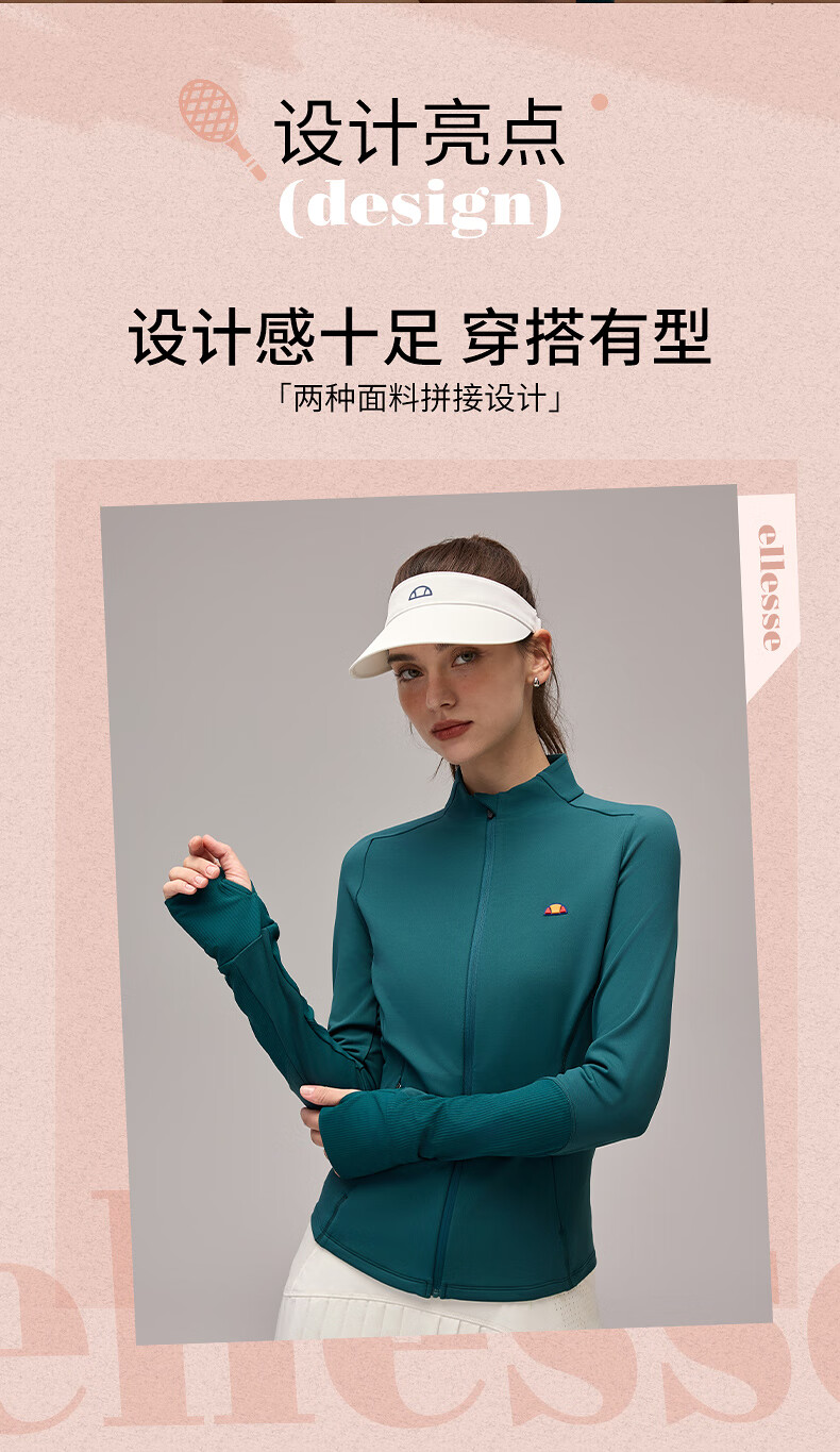 ellesse小贝壳时尚修身显瘦插肩网球运动外套 墨绿色 L