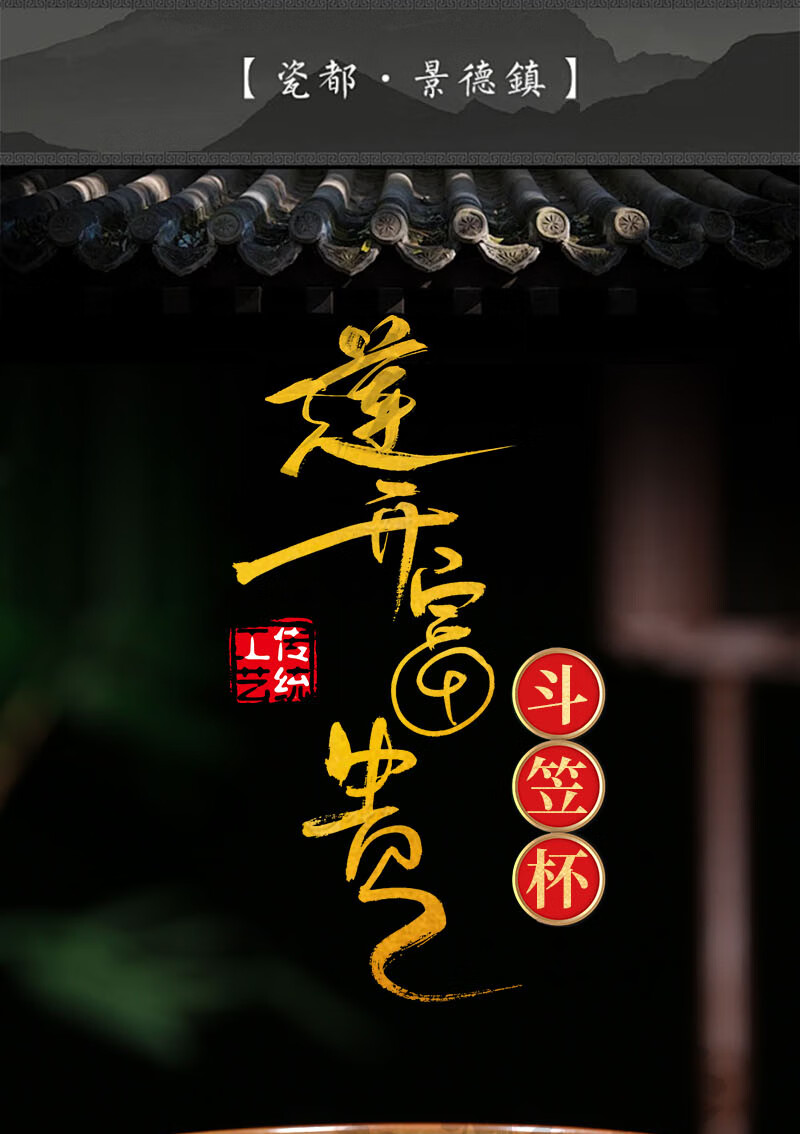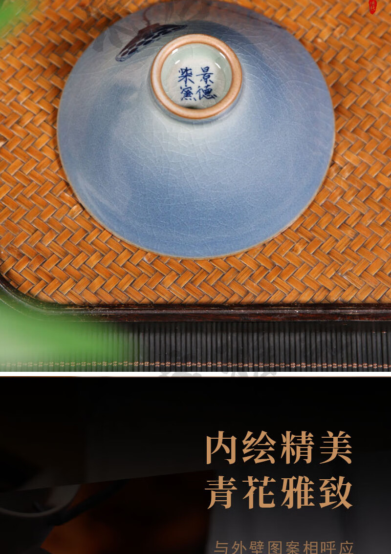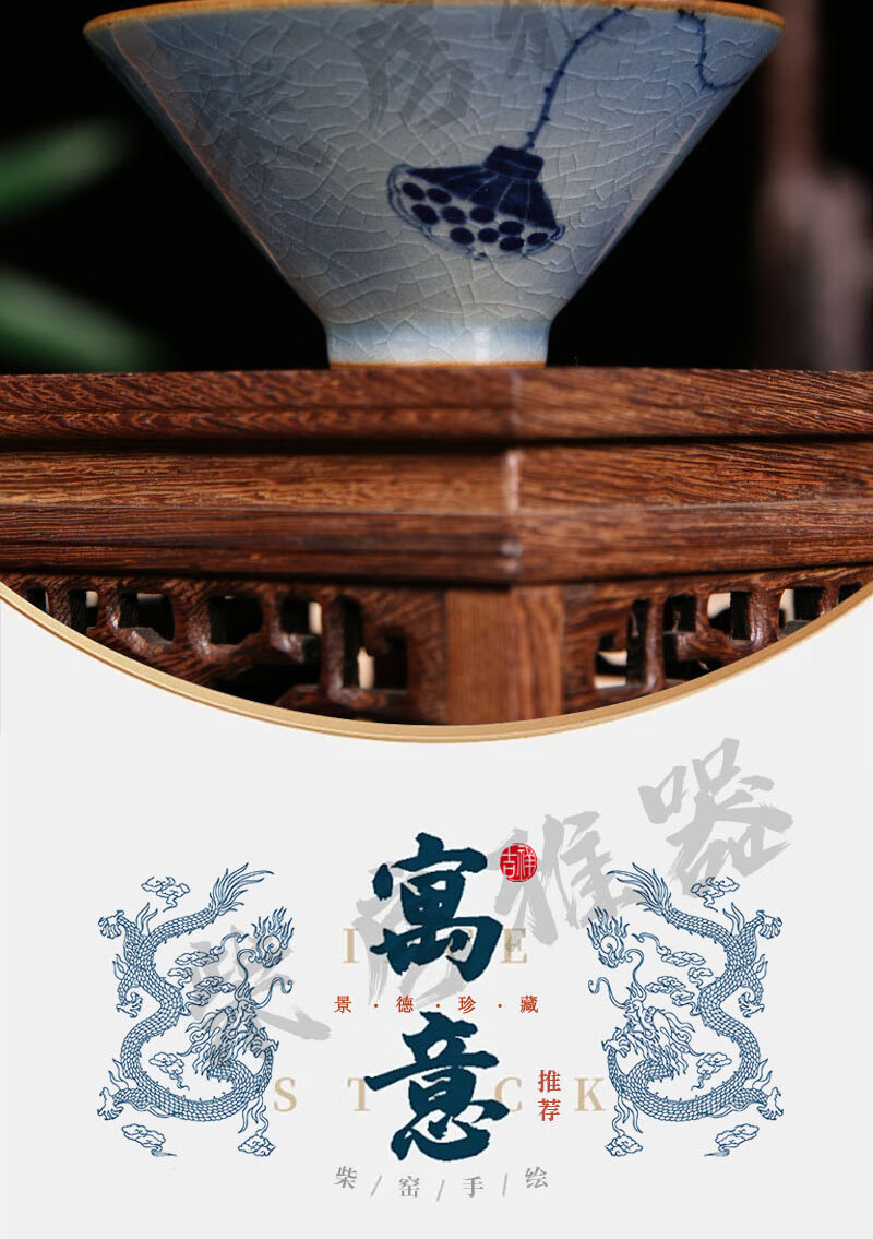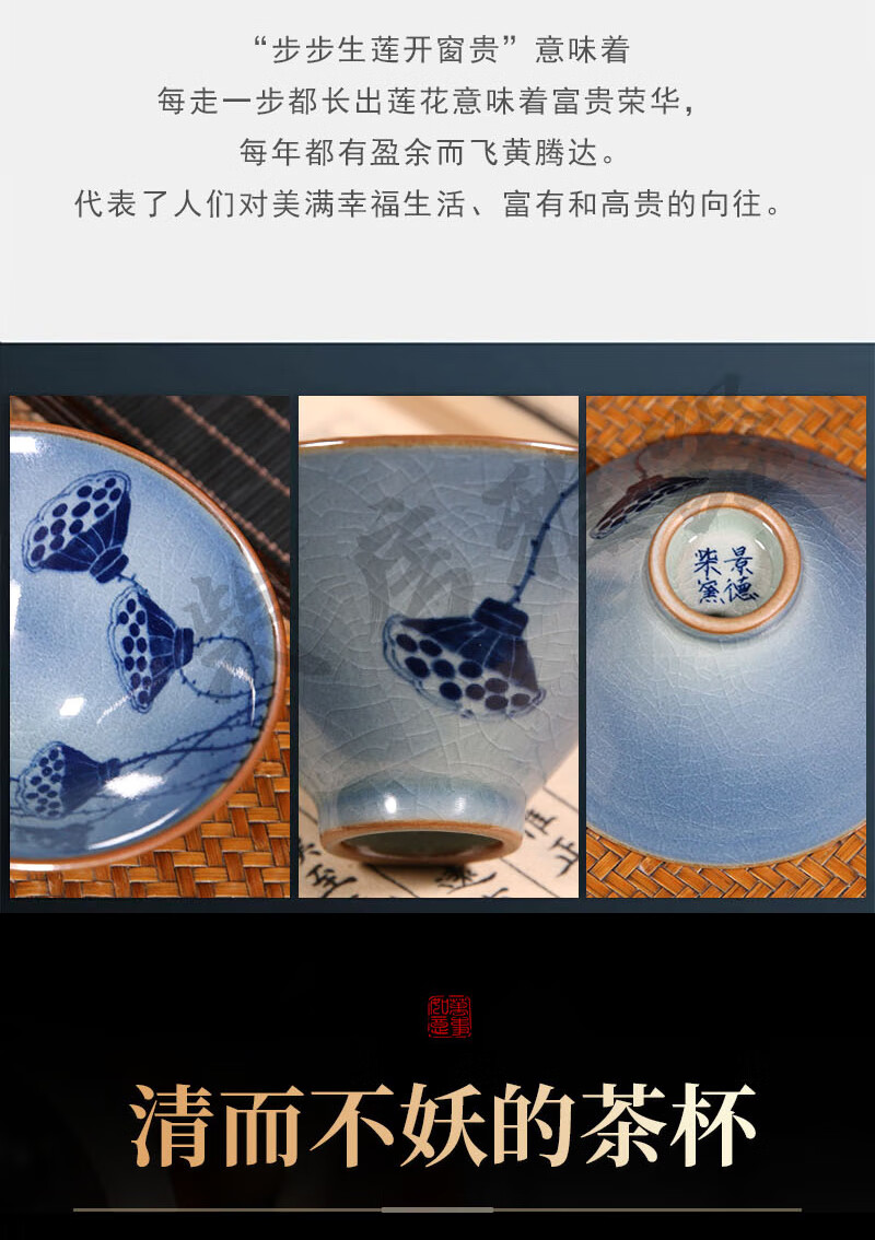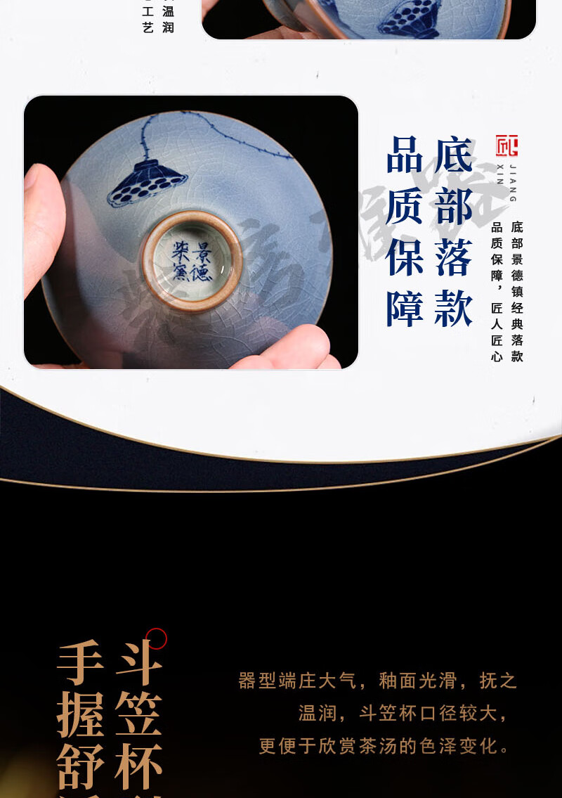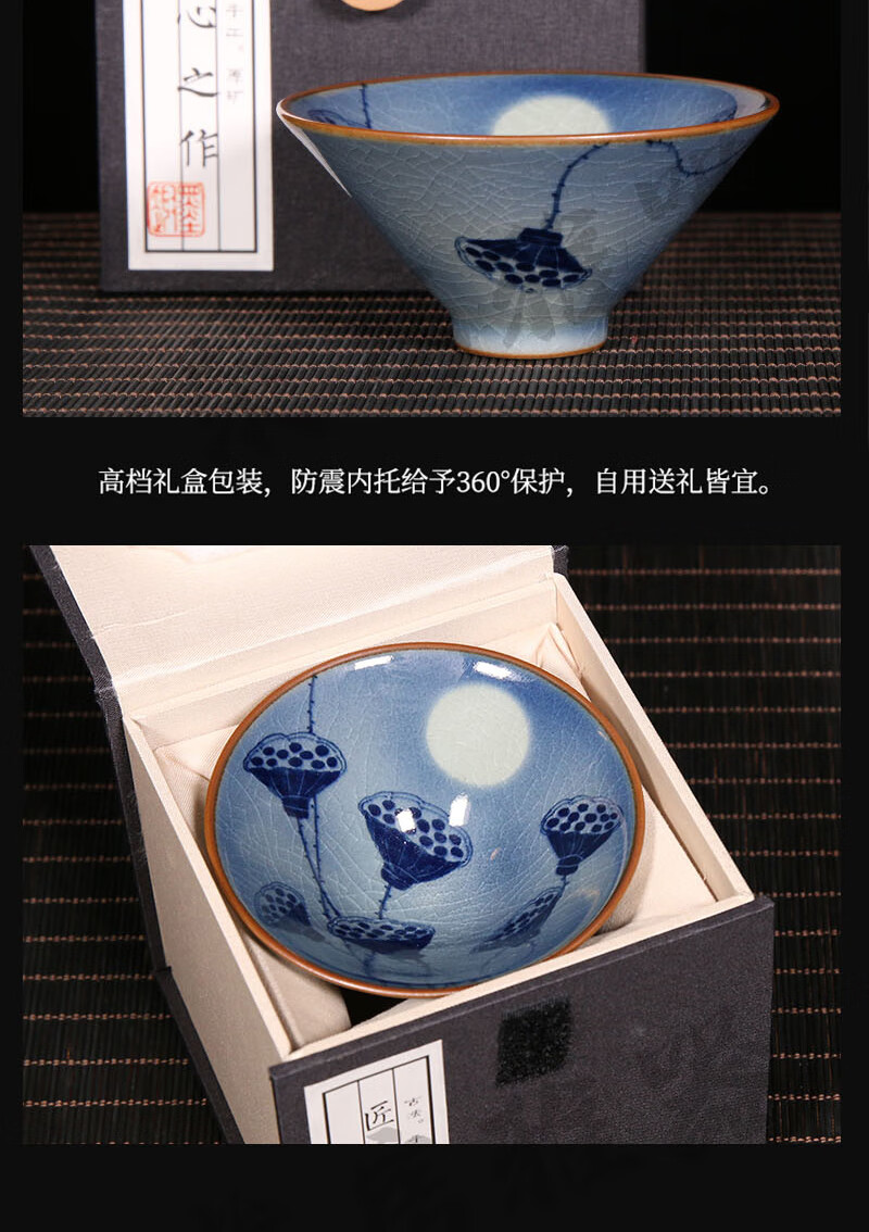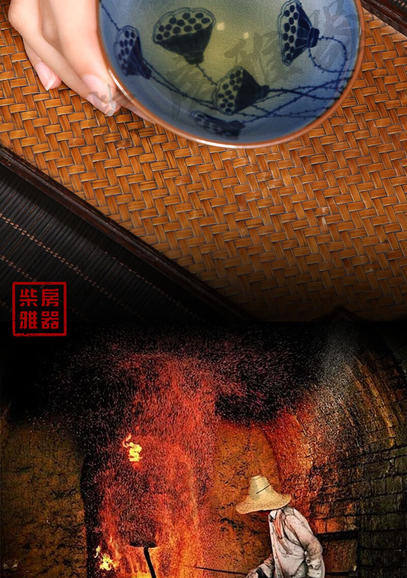 【柴房雅器】莲开富贵柴窑斗笠杯主人杯斗笠杯纯手工青花斗笠杯 莲开富贵斗笠杯