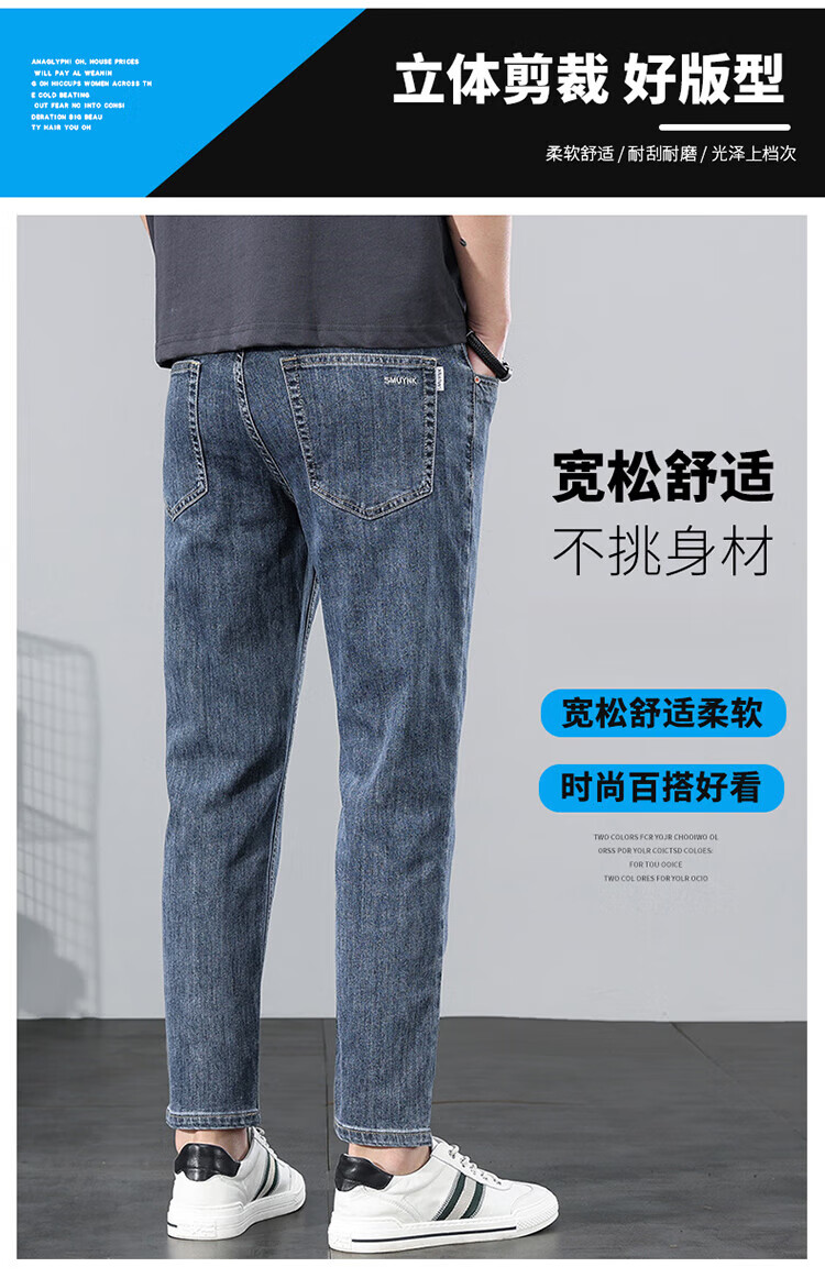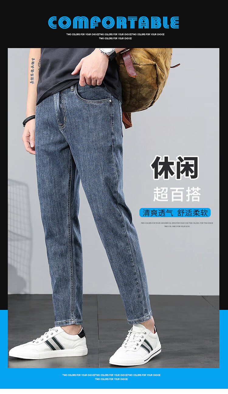 Prato Lee男士九分牛仔裤男夏季直筒裤男休闲弹力春秋九分裤男9分裤子薄款 9901深蓝色 34