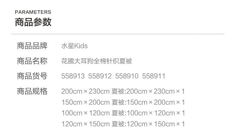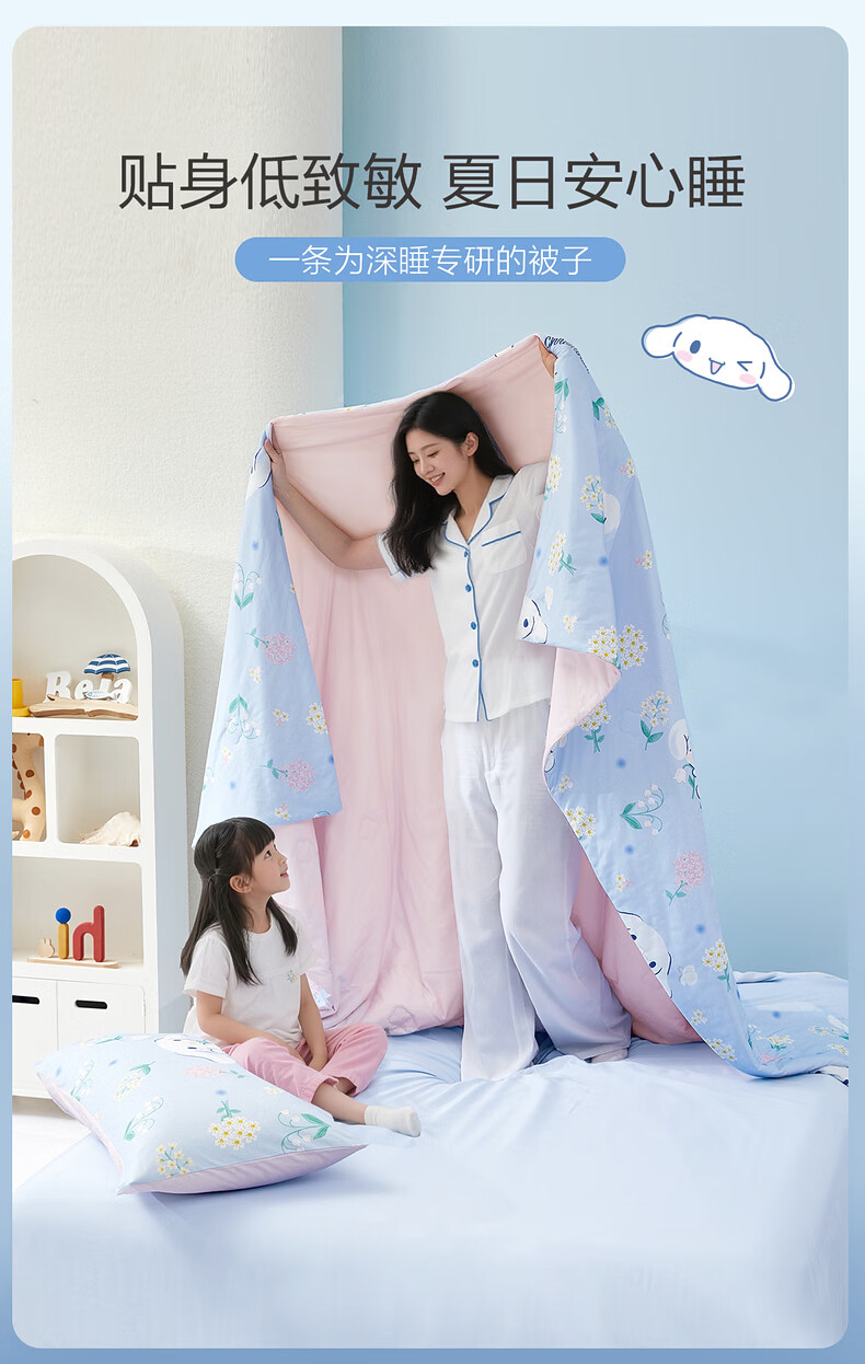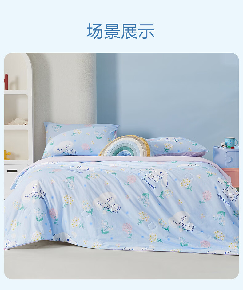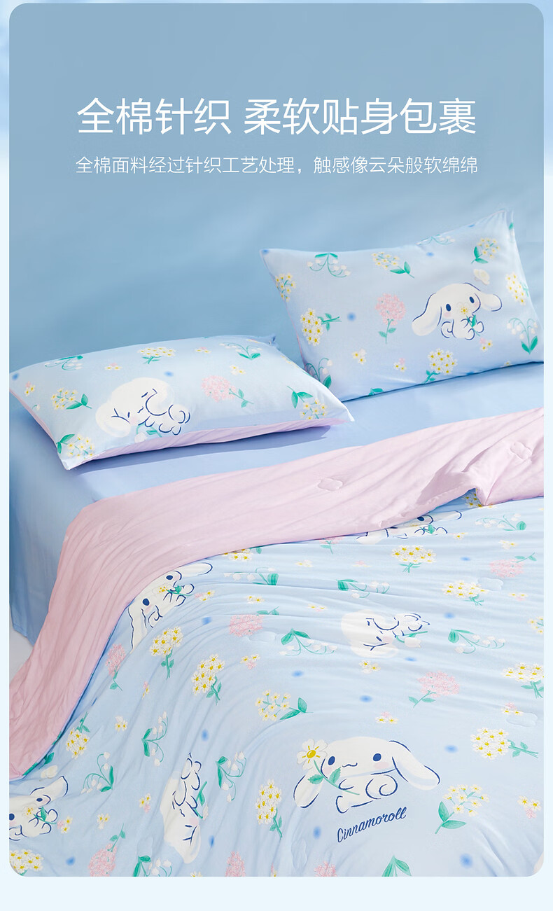 水星家纺儿童夏凉被空调被A类纯棉抗菌可机洗夏被芯薄被子宿舍夏凉被 花圃大耳狗全棉针织夏被 100cm*120cm