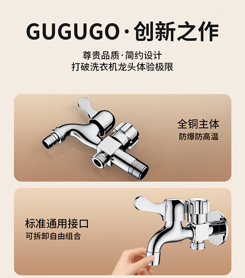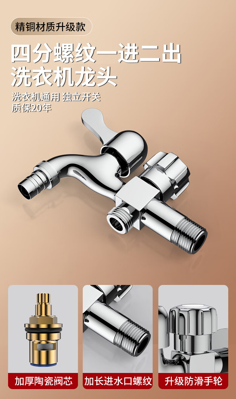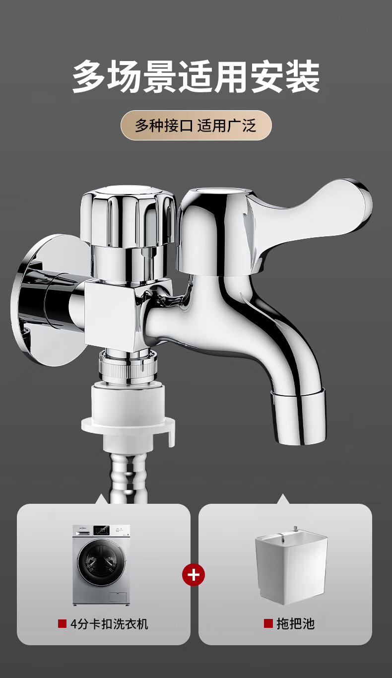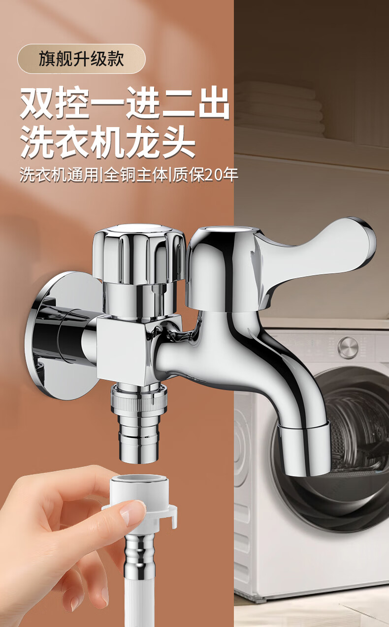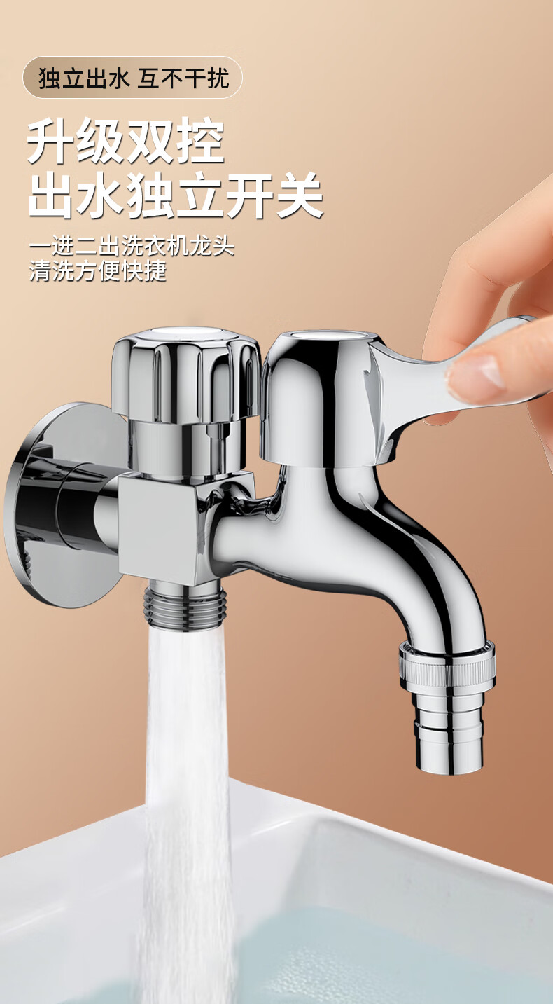 GuGuGo【德国】洗衣机水龙头一进二出水龙头全铜拖把池双开双出水龙头 【全铜加厚】双出水龙头(4分扣+4分扣) 加厚全铜主体丨4分接口通用