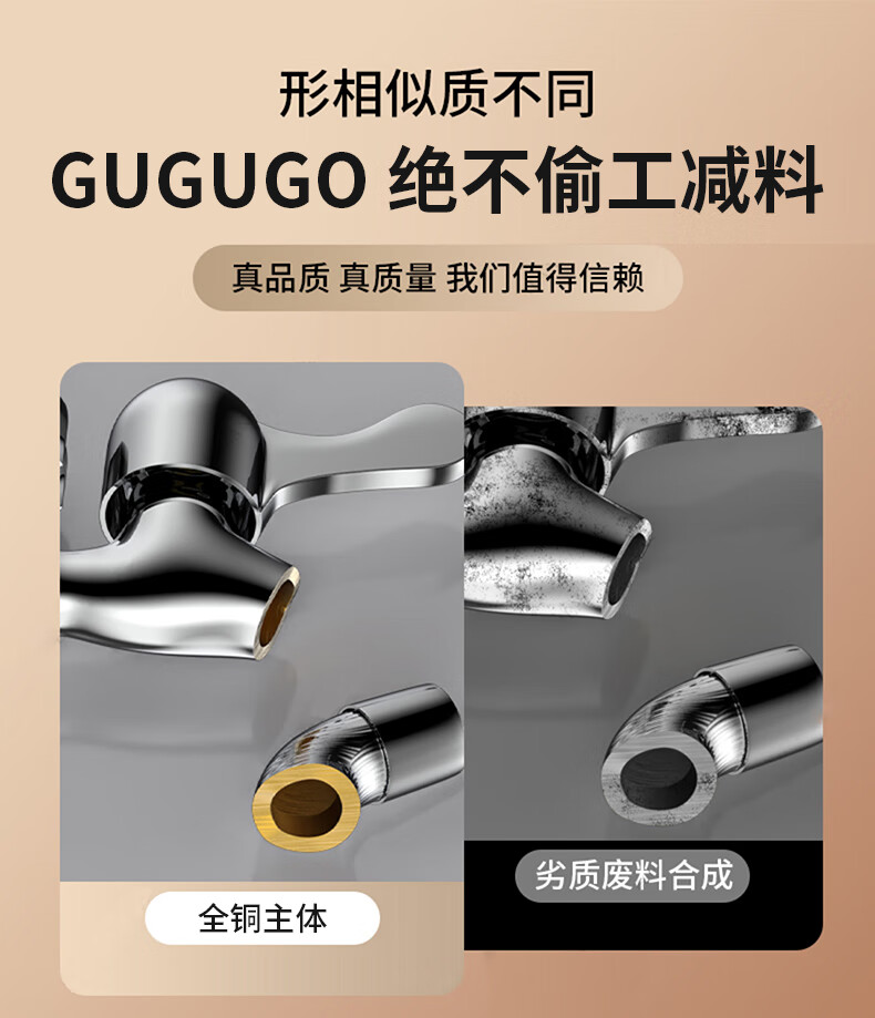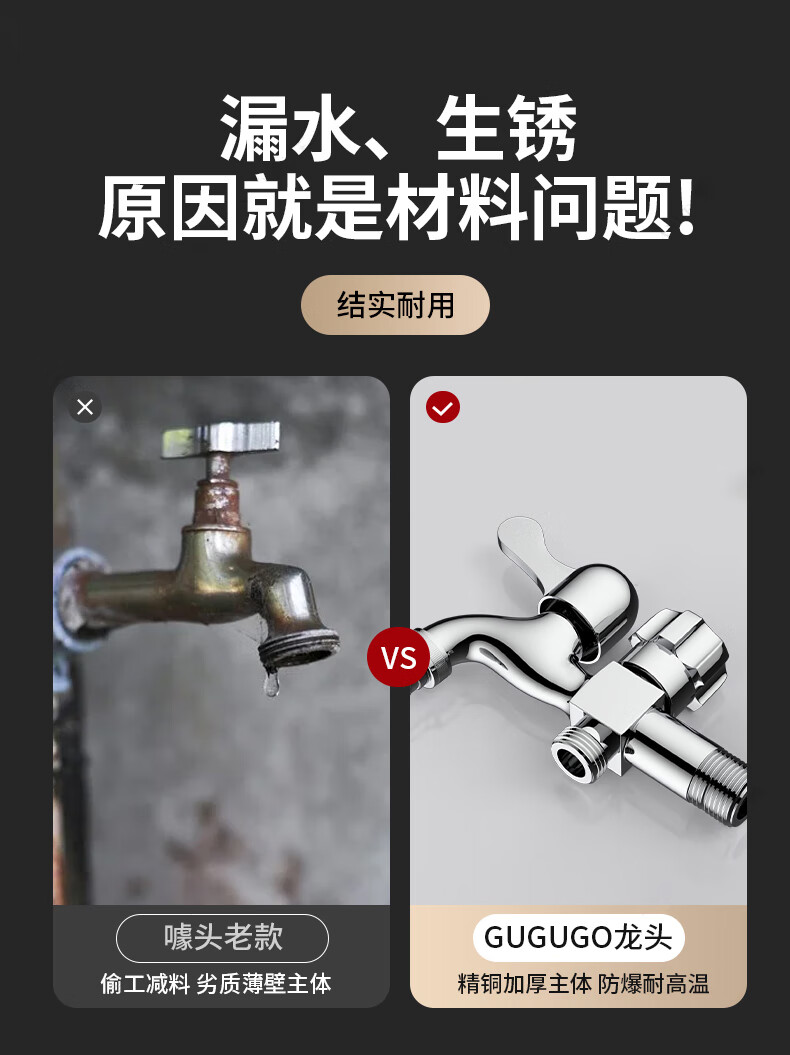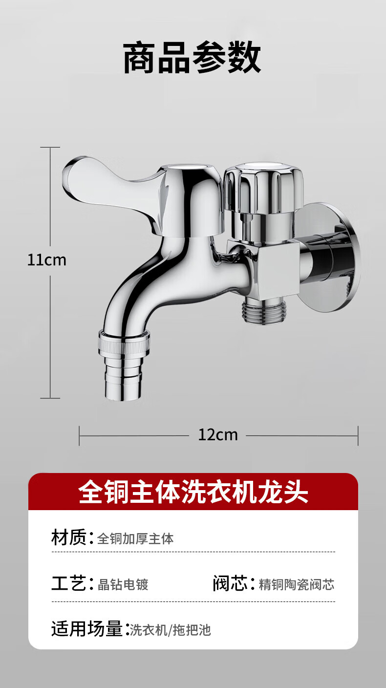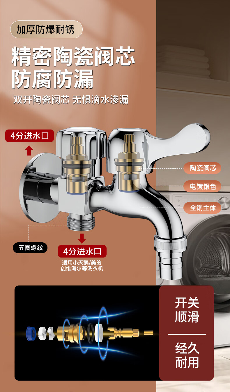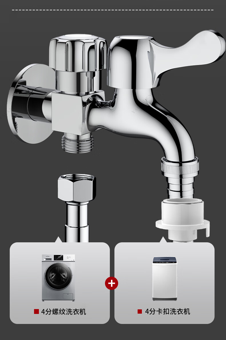GuGuGo【德国】洗衣机水龙头一进二出水龙头全铜拖把池双开双出水龙头 【全铜加厚】双出水龙头(4分扣+4分扣) 加厚全铜主体丨4分接口通用