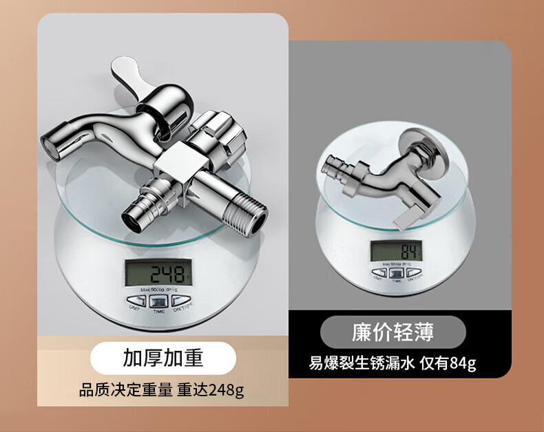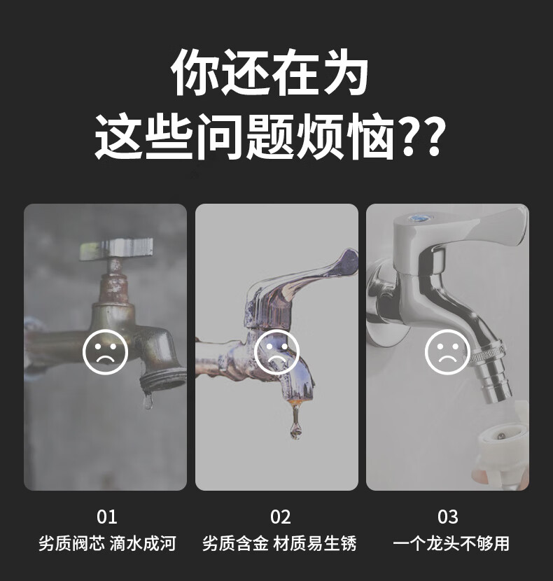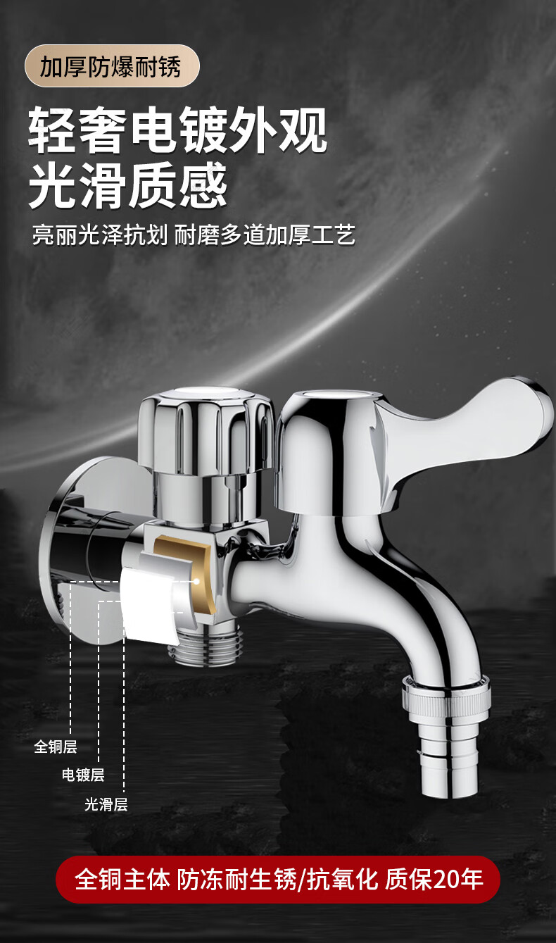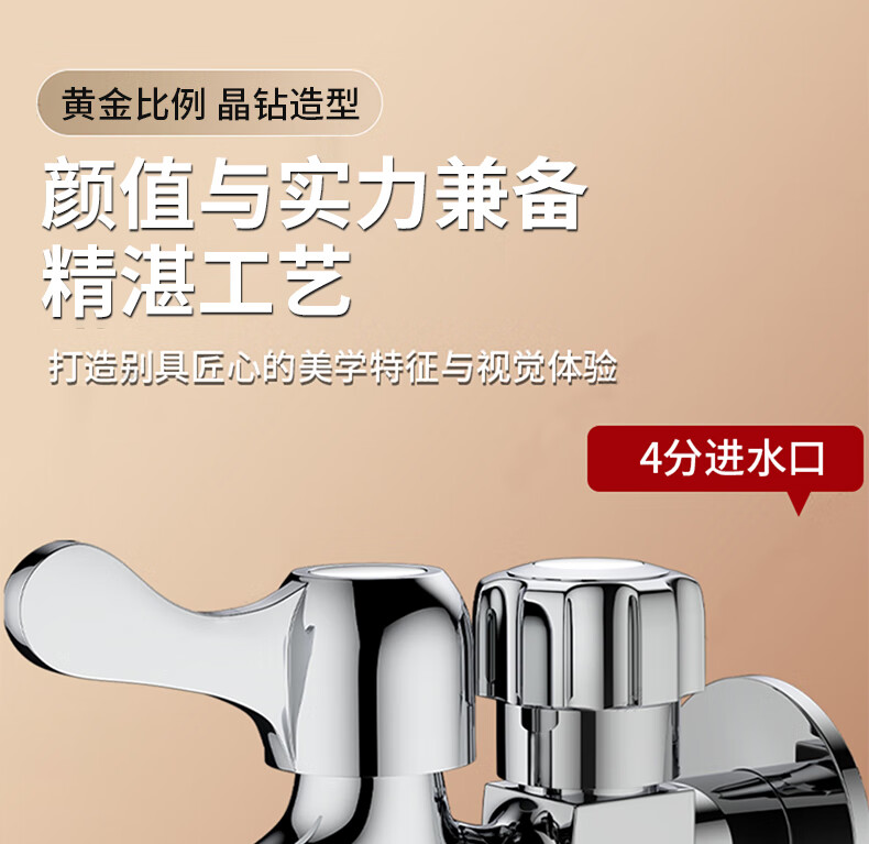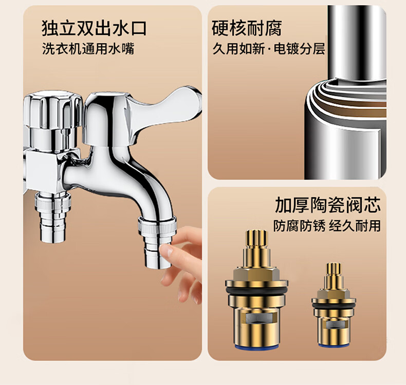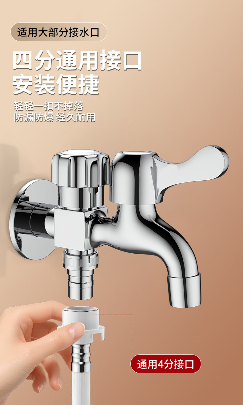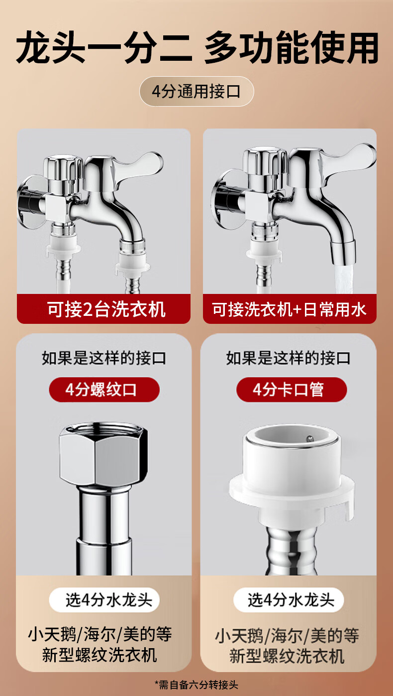 GuGuGo【德国】洗衣机水龙头一进二出水龙头全铜拖把池双开双出水龙头 【全铜加厚】双出水龙头(4分扣+4分扣) 加厚全铜主体丨4分接口通用