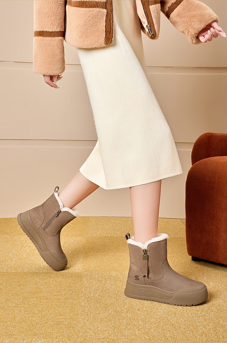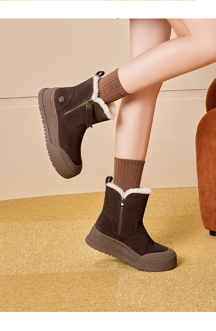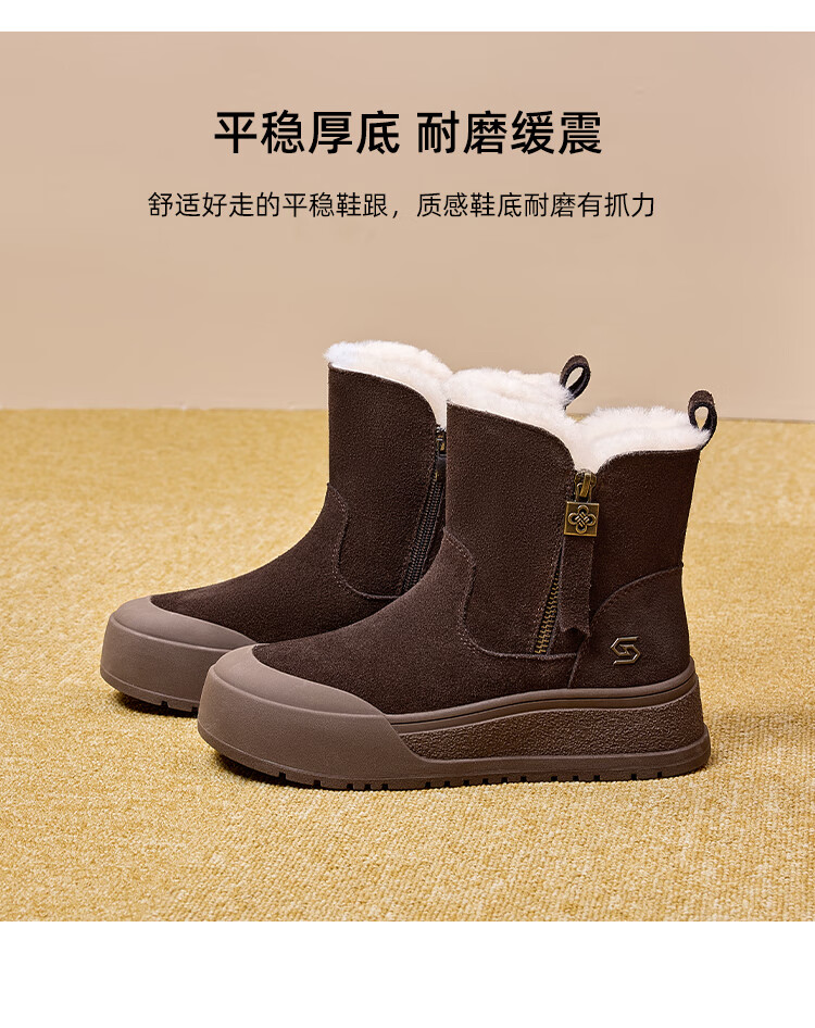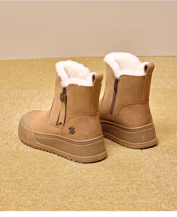 星期六真皮厚底雪地靴女鞋2025新款冬季加绒加厚短筒靴防滑保暖东北棉鞋 驼色 【真皮加绒】跟高4.5cm 38