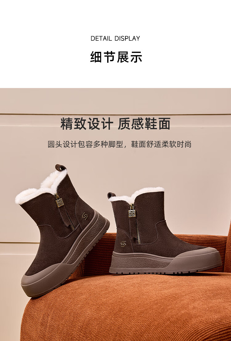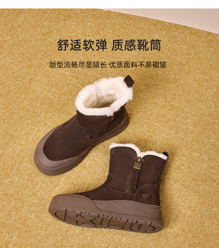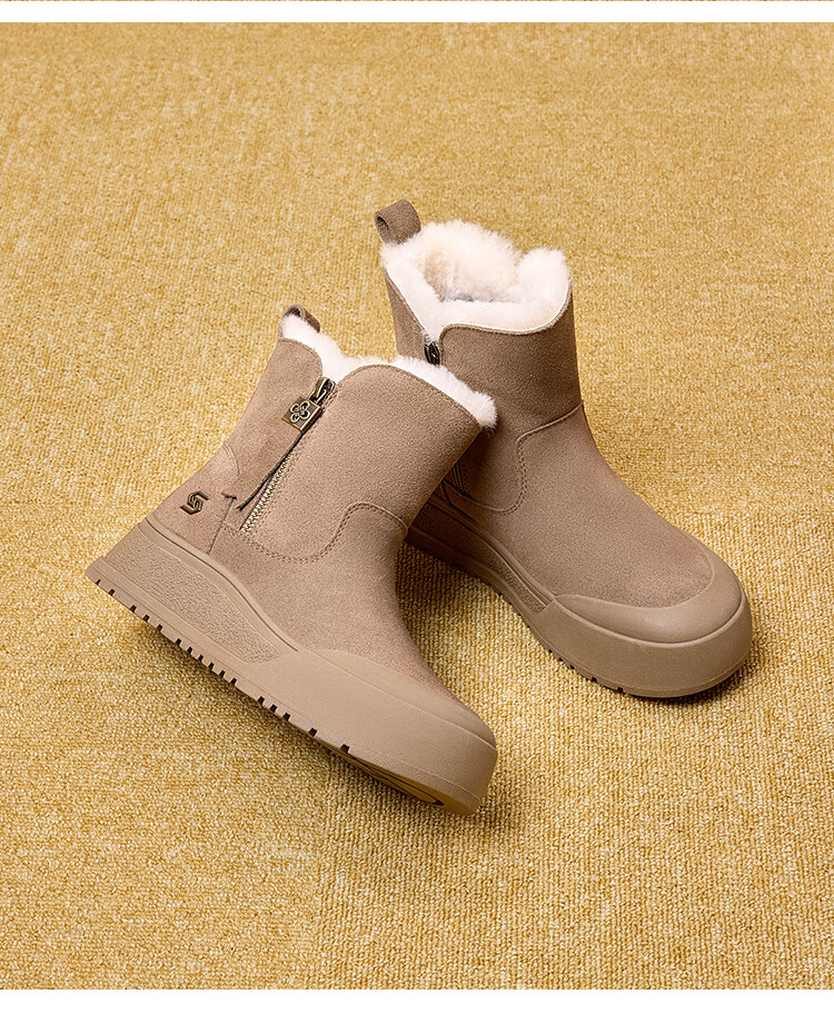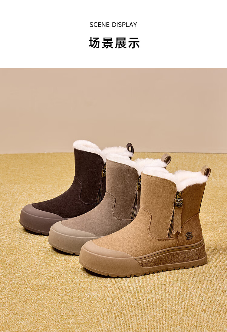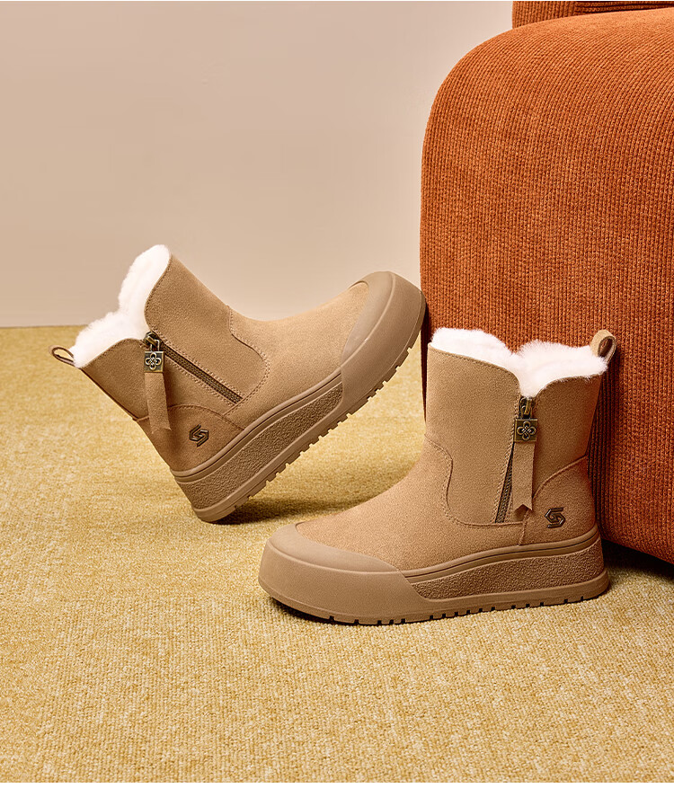 星期六真皮厚底雪地靴女鞋2025新款冬季加绒加厚短筒靴防滑保暖东北棉鞋 驼色 【真皮加绒】跟高4.5cm 38