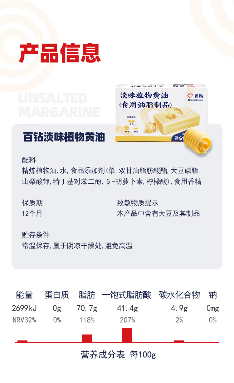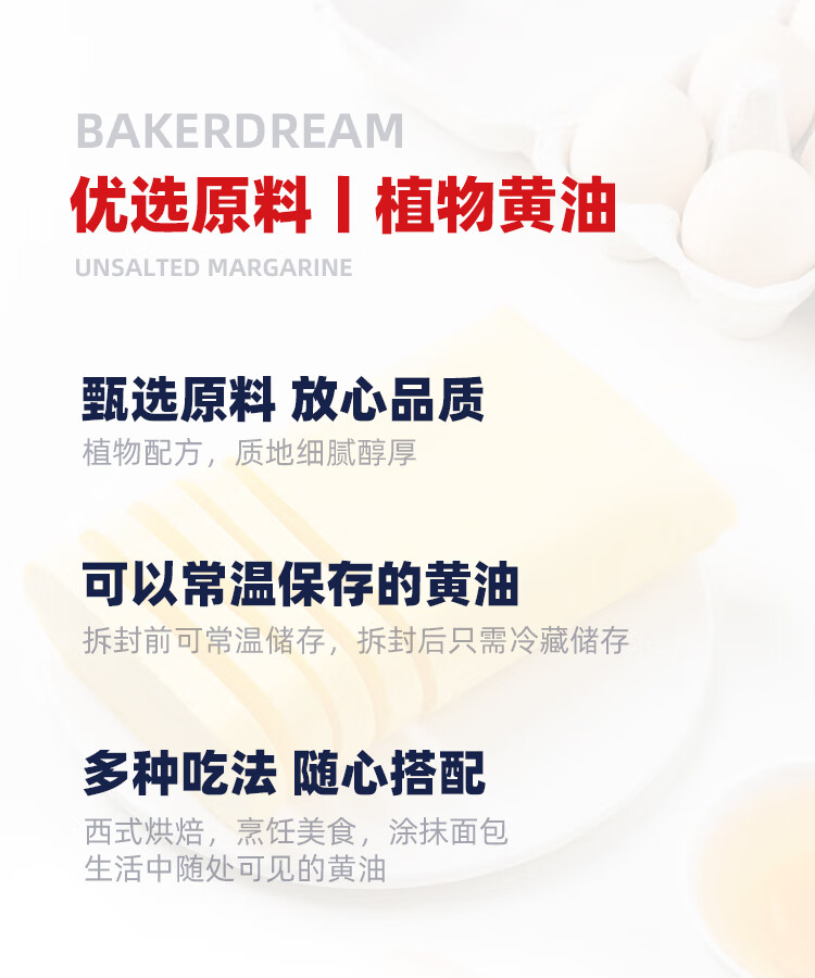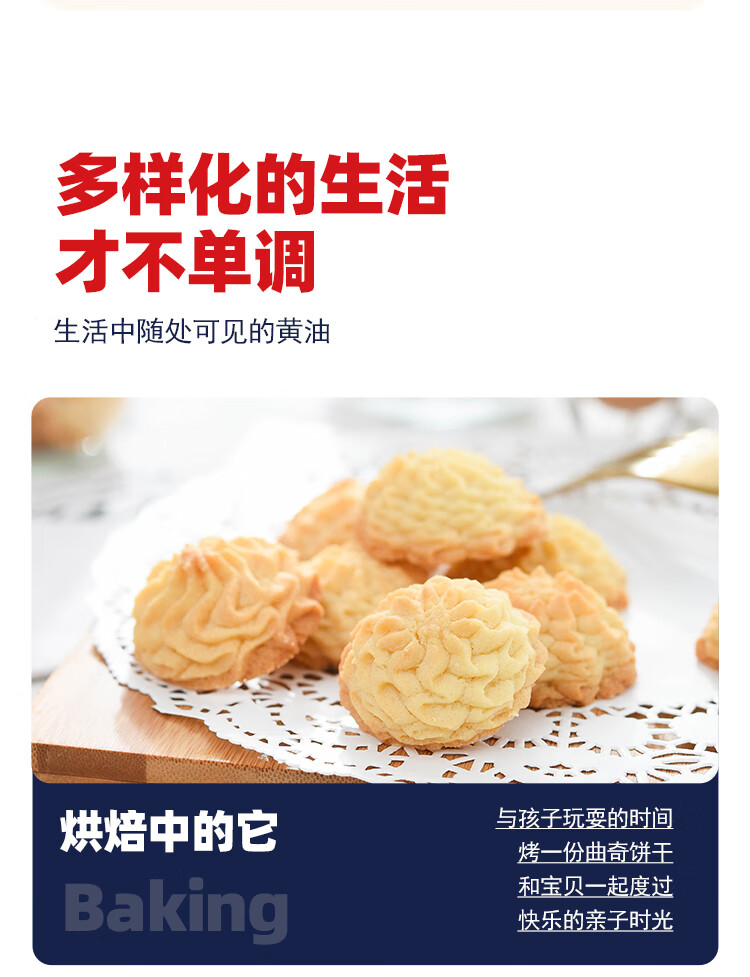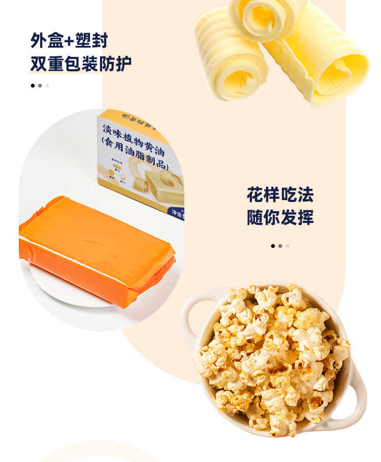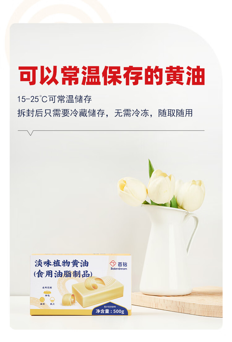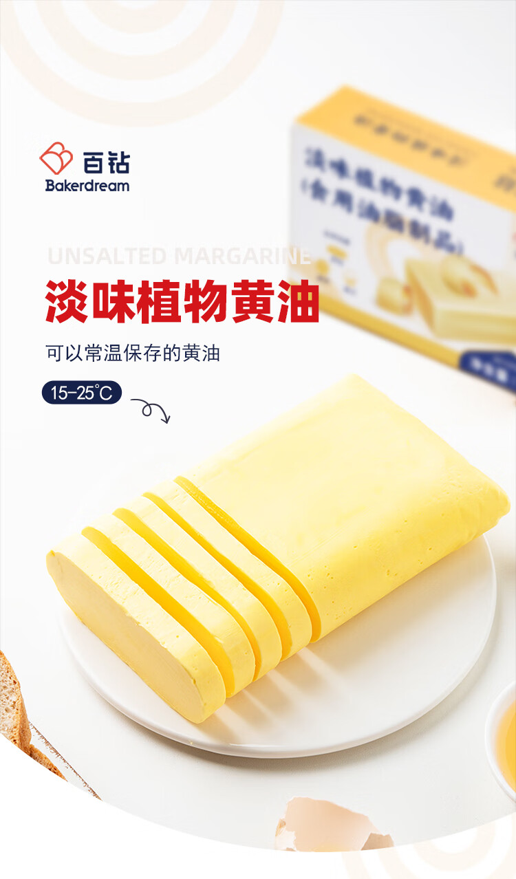 百钻淡味植物黄油500g 家用煎牛排做饼干面包爆米花材料烘焙原料