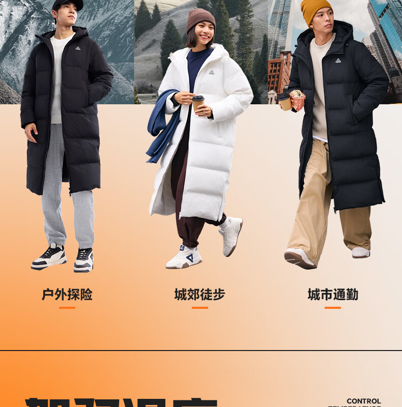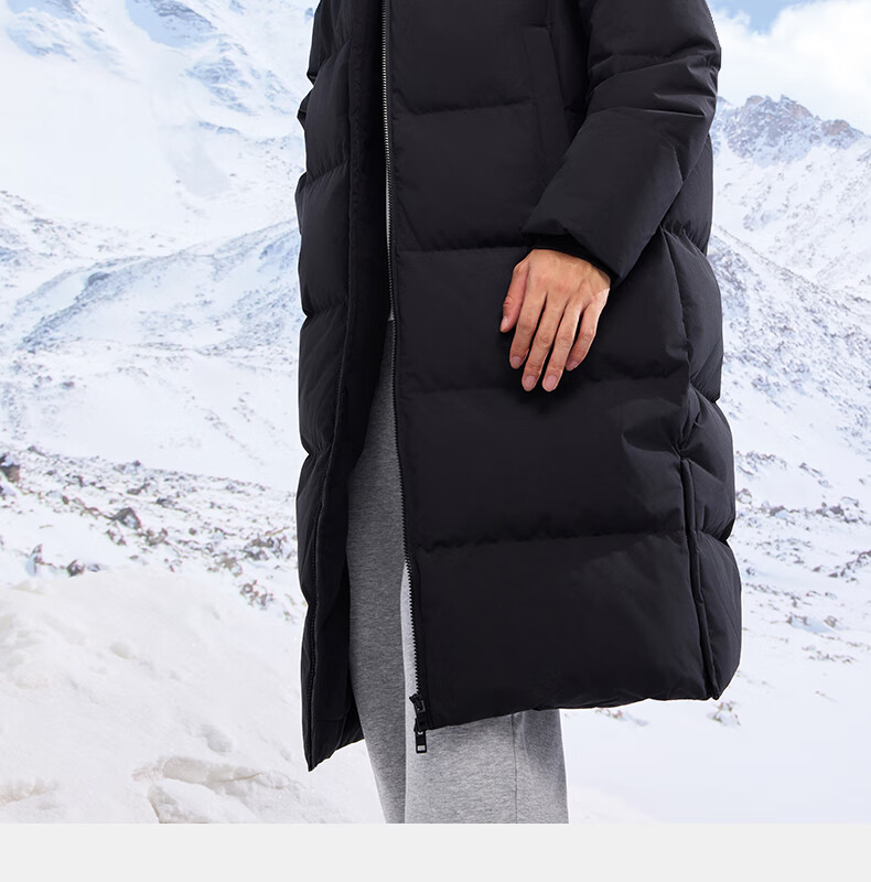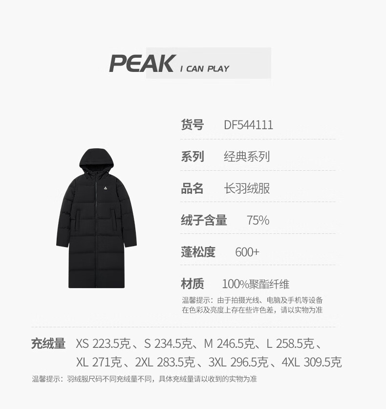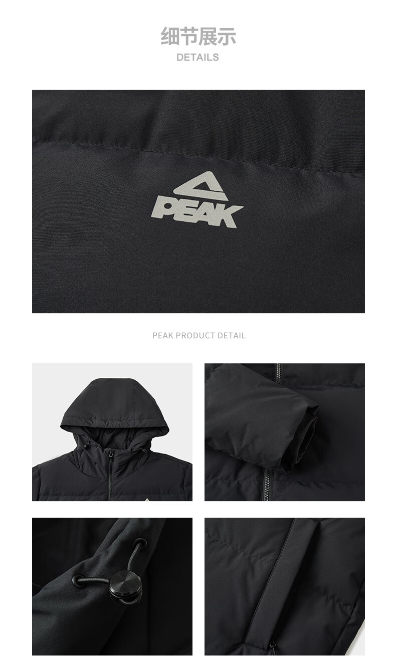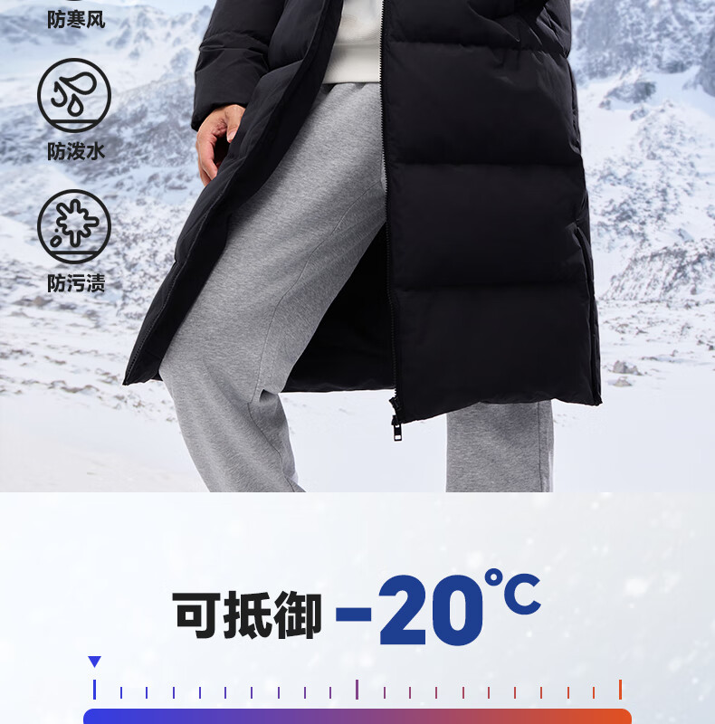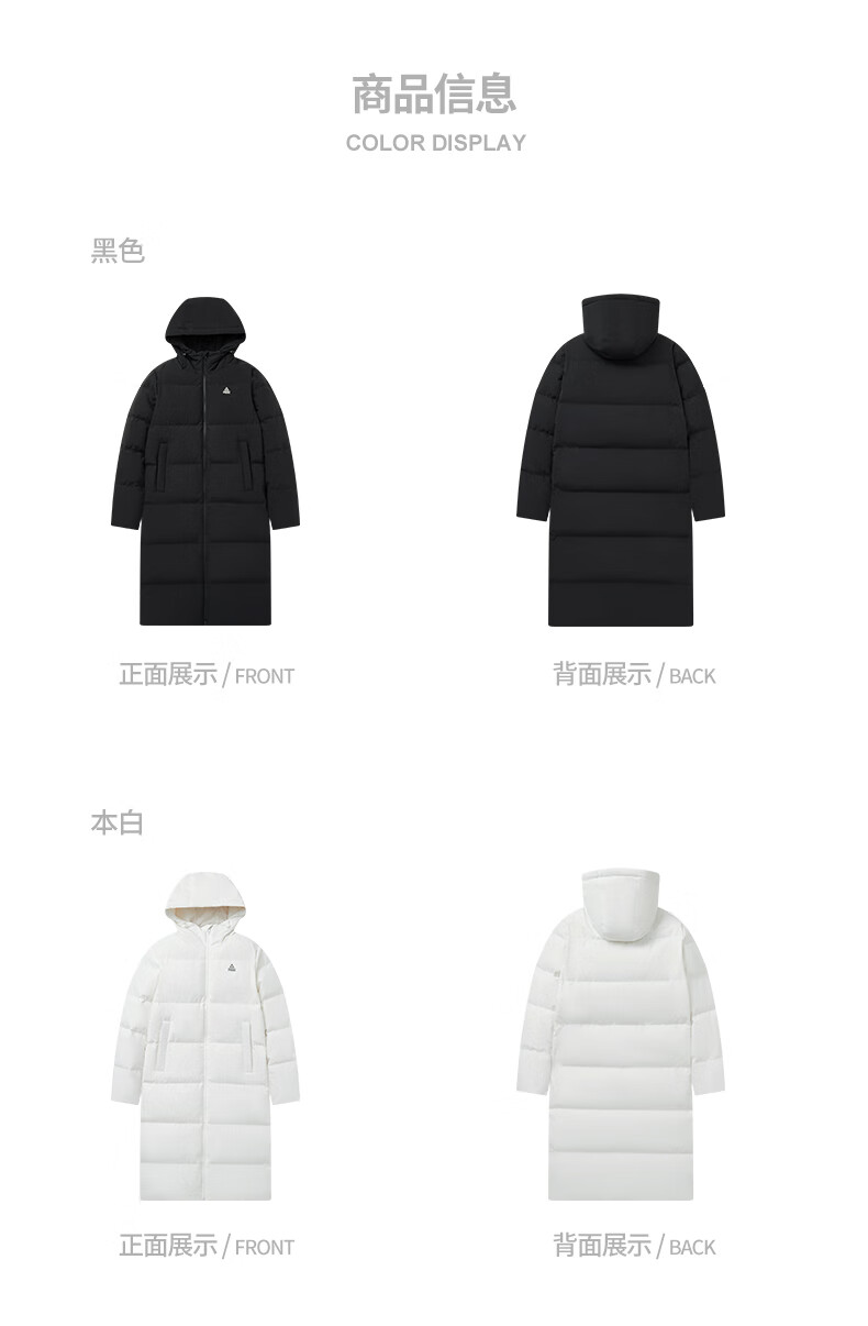 匹克驭雪长款羽绒服男冬季新款三防科技保暖通勤学生长款过膝连帽外套 黑色 XL