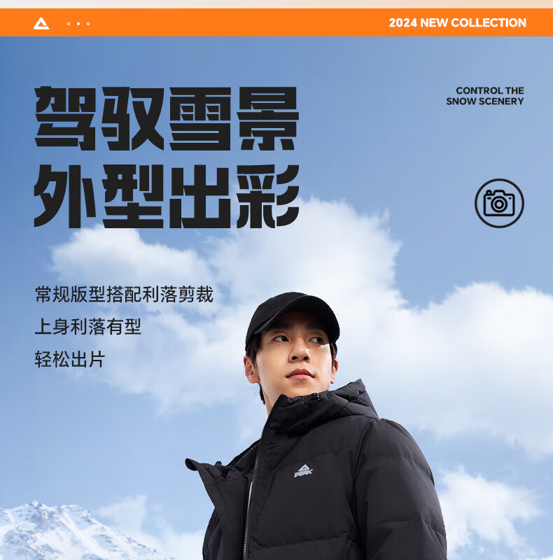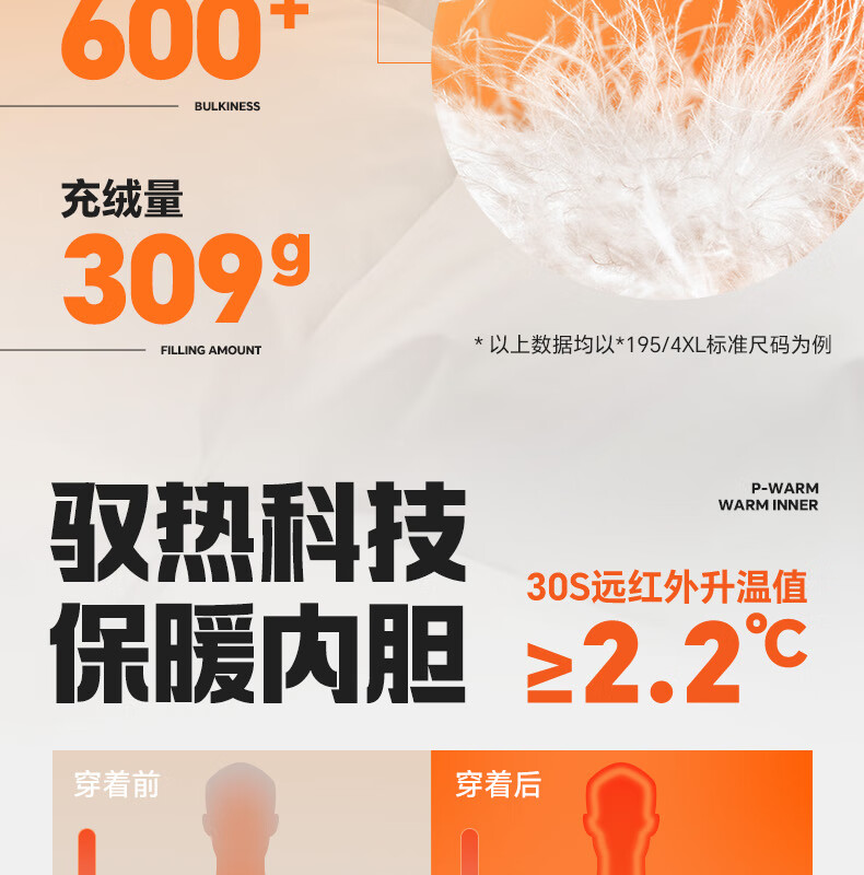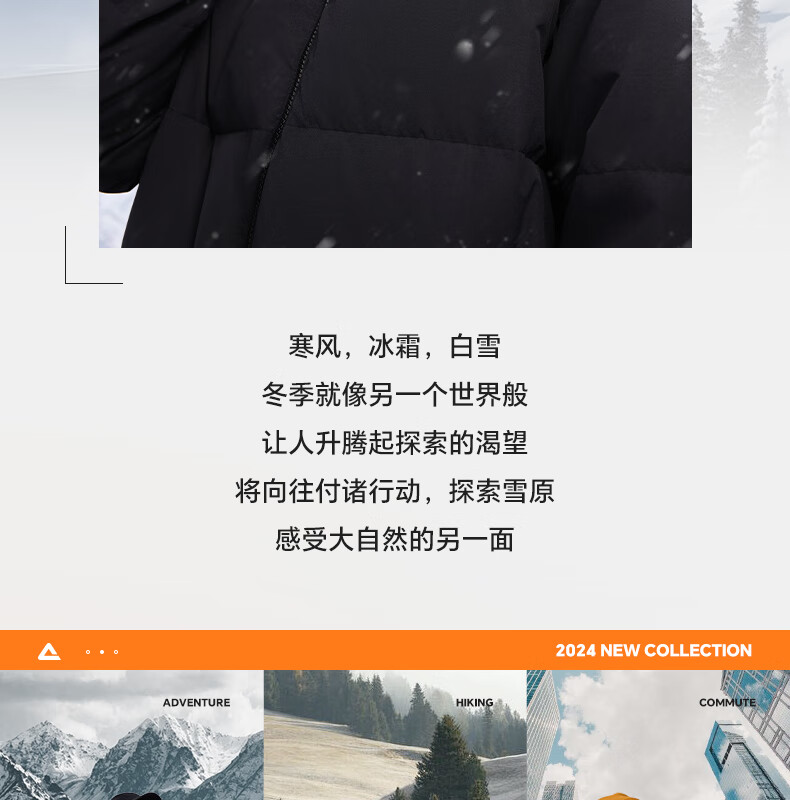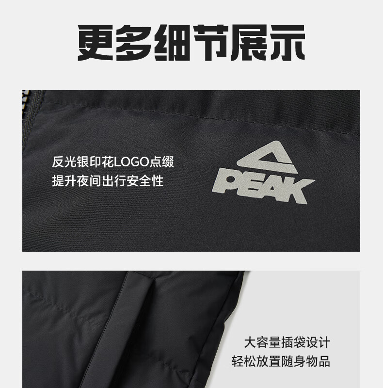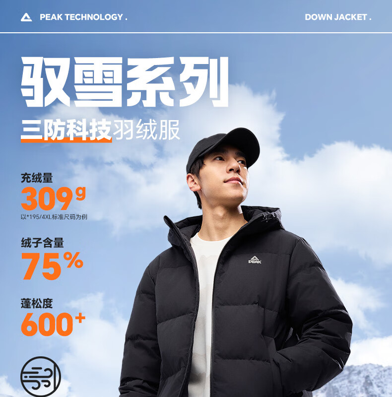 鸿星尔克四防|羽绒服男秋冬新款保暖防风防污防泼水户外休闲运动外套夹克 正黑 2XL