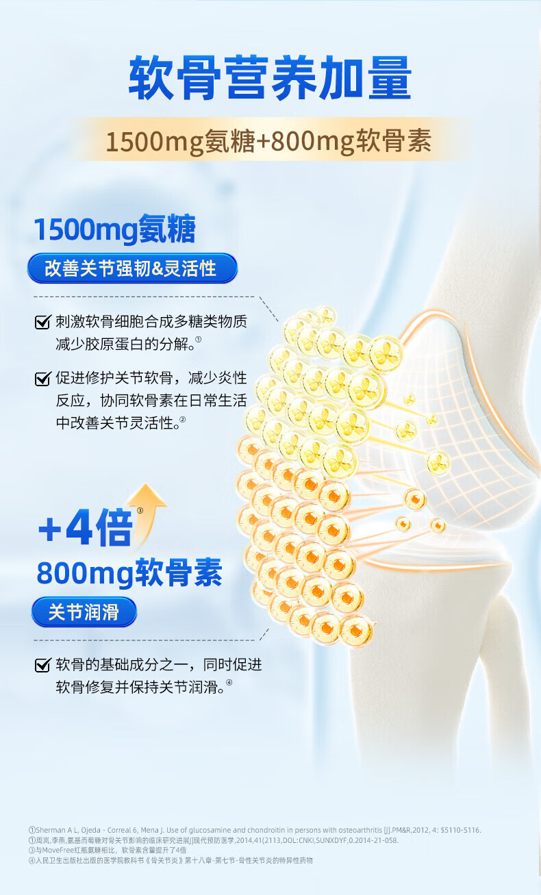 Move Free 益节高钙氨糖软骨素钙片240粒美国原装进口维骨力中老年成人补钙 【补钙补氨糖】高钙氨糖 240粒*1瓶