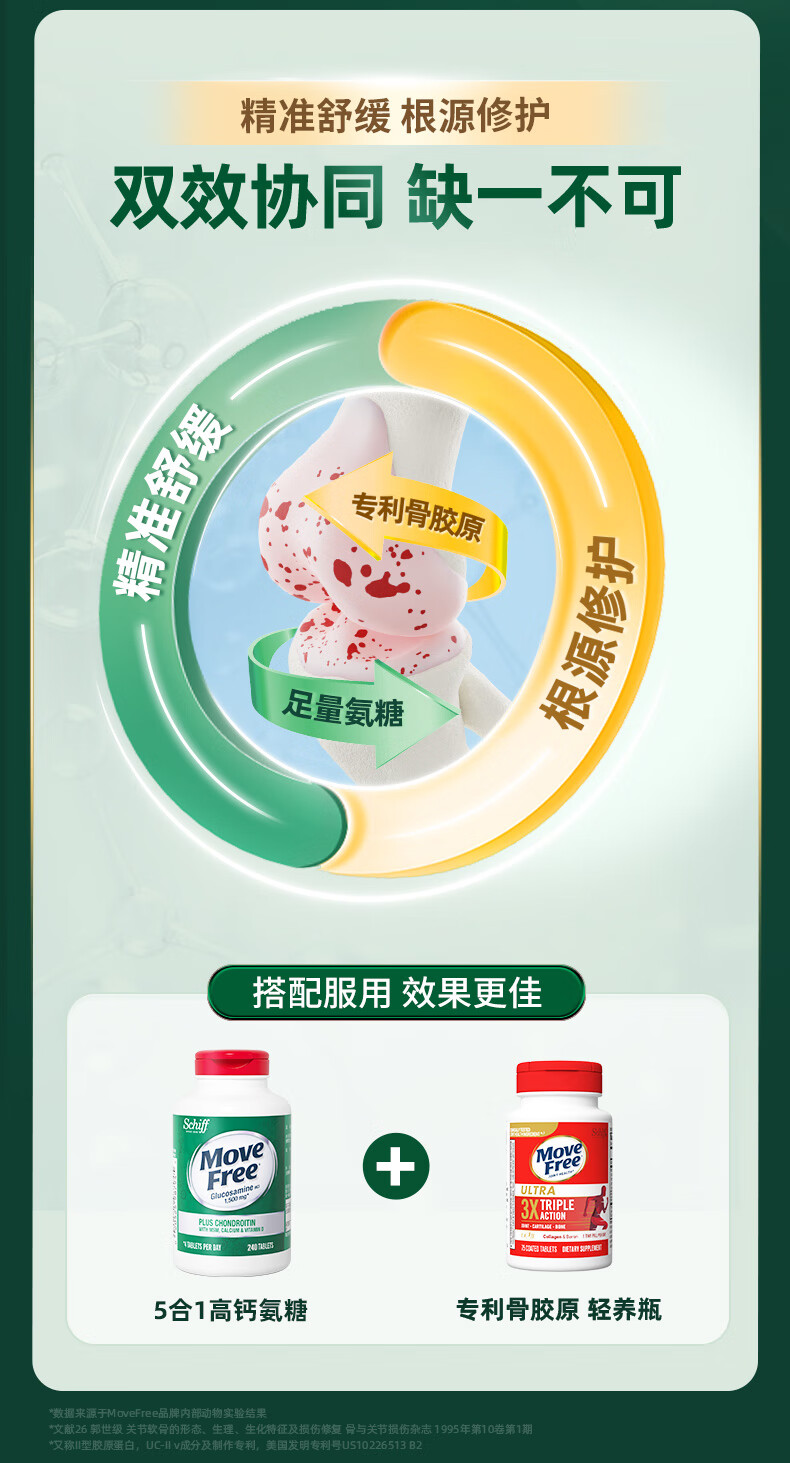 Move Free益节女士男士氨糖软骨素120粒 美国原装进口维骨力 成年中老年人 【女士氨糖】7效合1 活力养颜- 120粒*1瓶