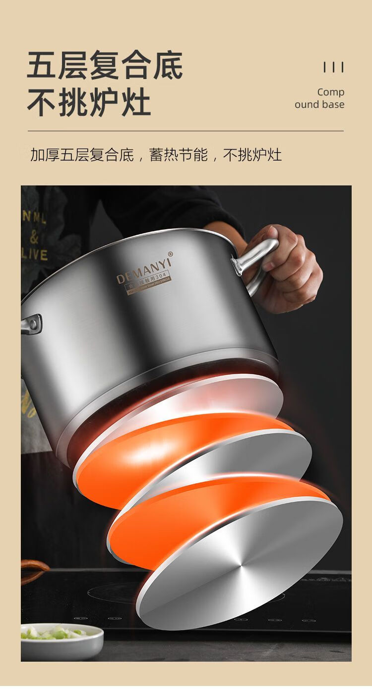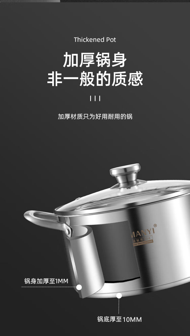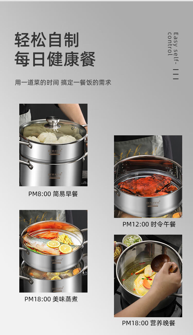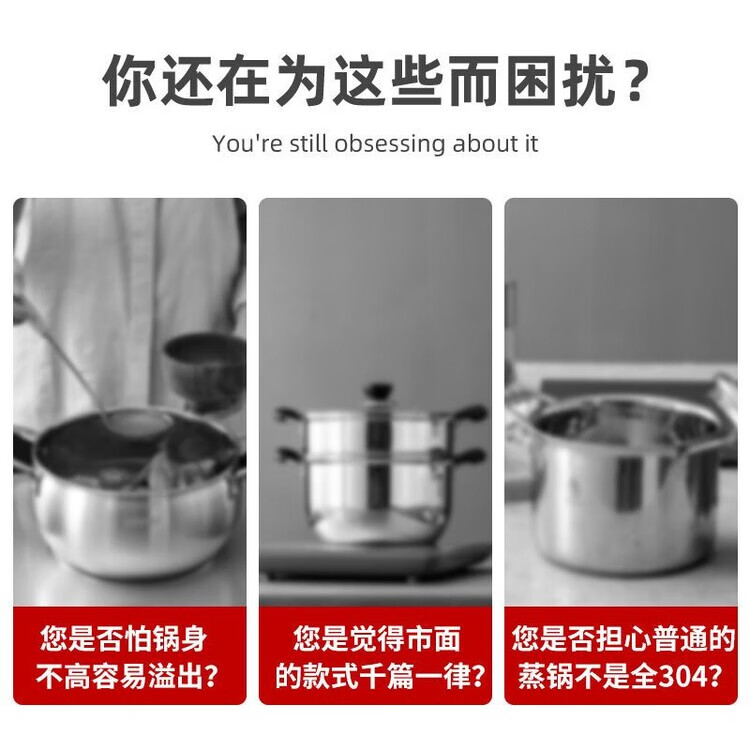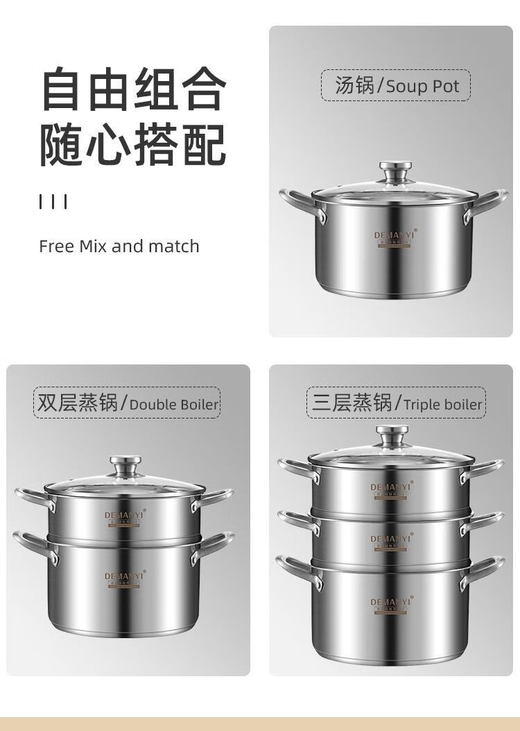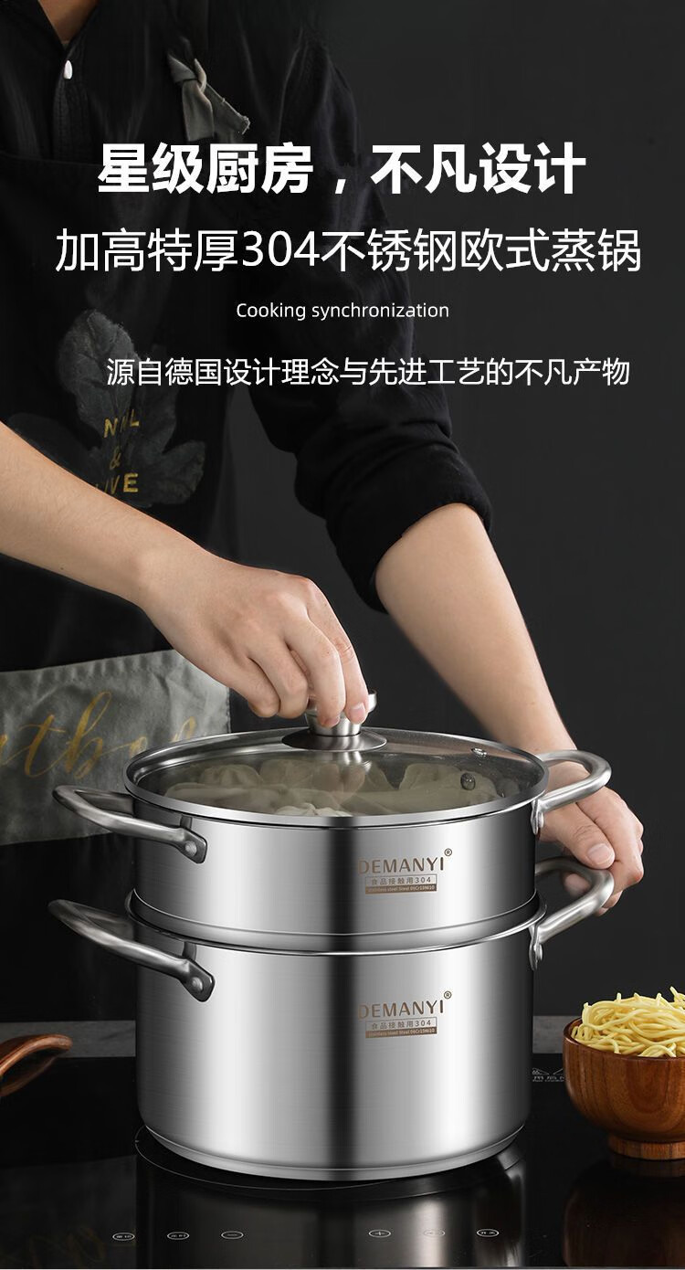 兰琦欧加厚304不锈钢小蒸锅双层家用汤锅蒸煮炖小型蒸笼电磁炉燃气灶用 26cm双层 1cm 全钢柄