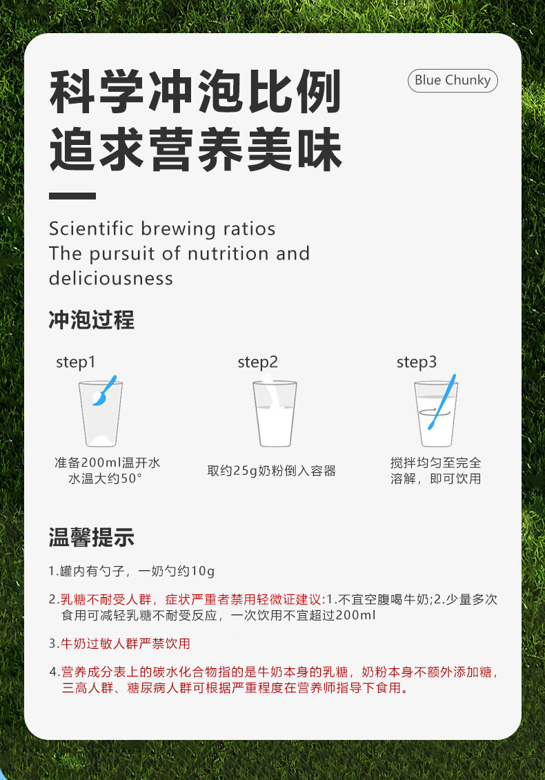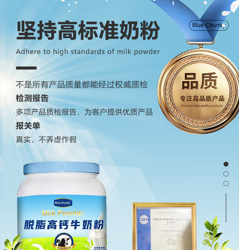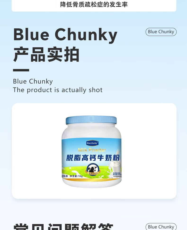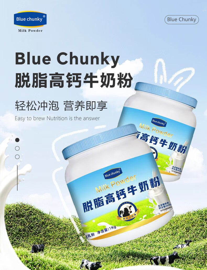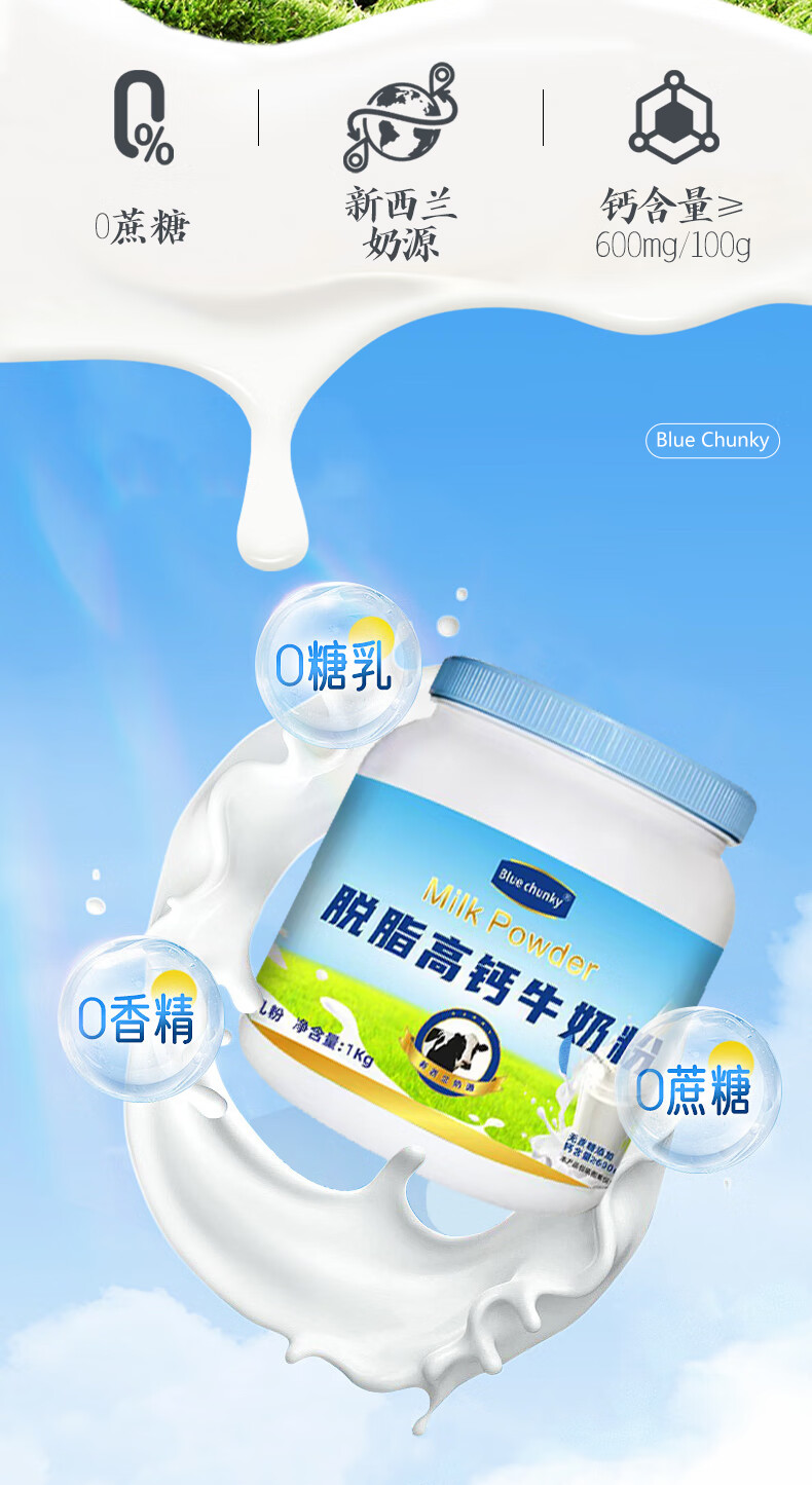 BLUE CHUNKY奶粉蓝成人奶粉脱脂高钙高蛋白胖子老人中年青少年新西兰奶源 脱脂奶粉1kg