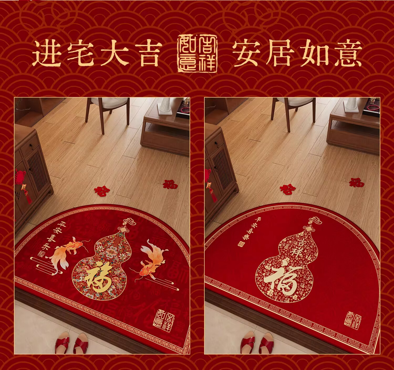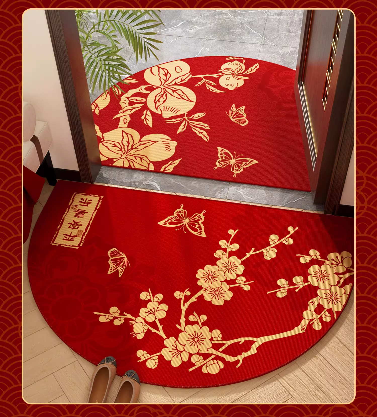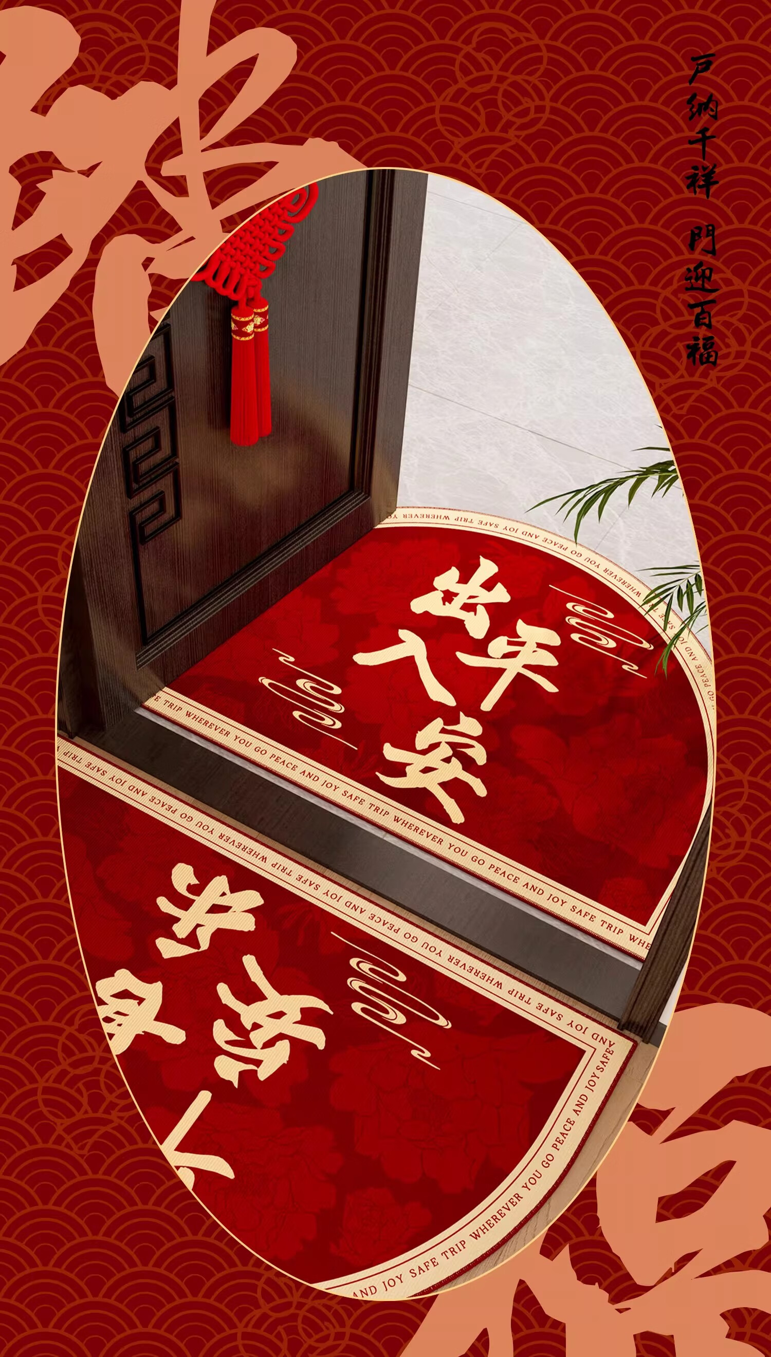 情更浓新年半圆出入平安红色入户门地垫玄关门口脚垫防滑耐脏福字进门垫 Q安期 60*90CM