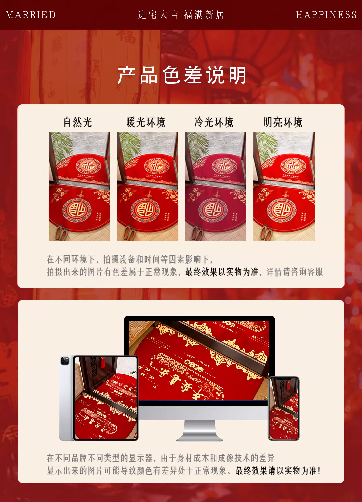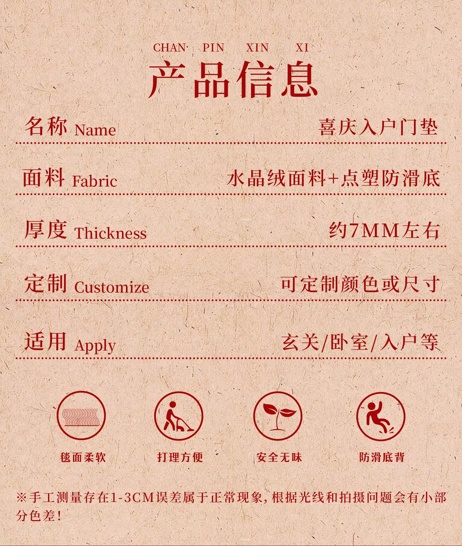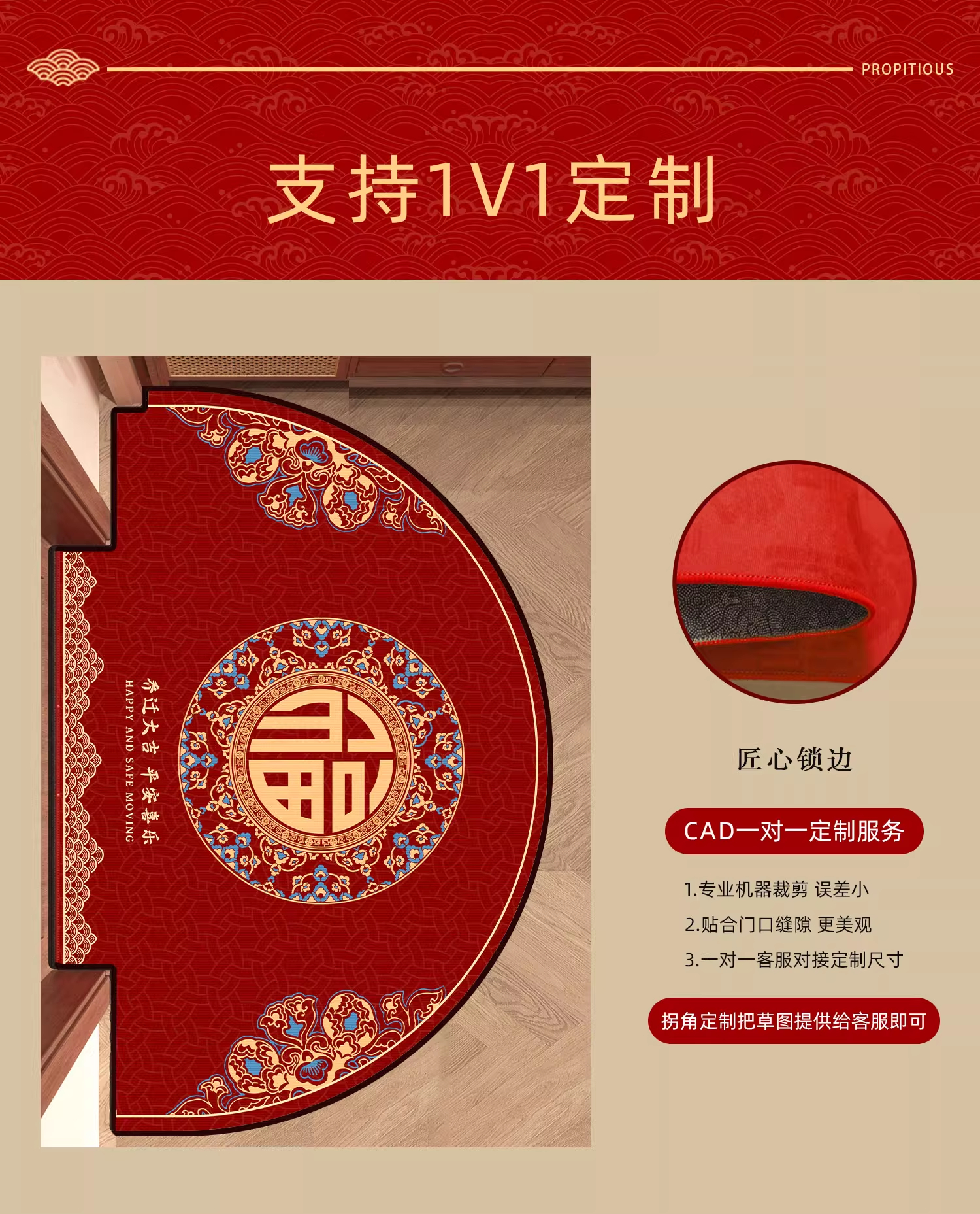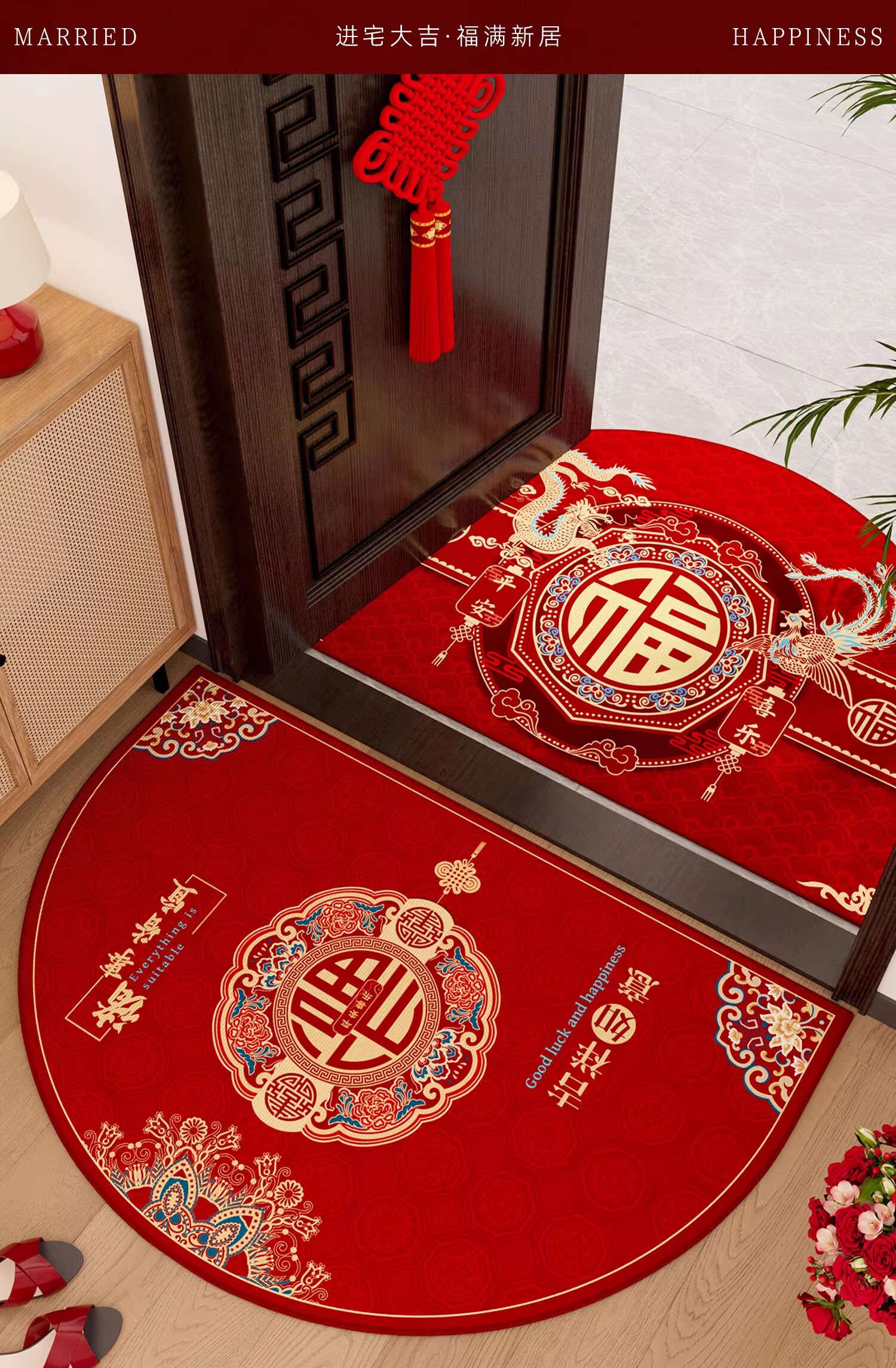 情更浓新年半圆出入平安红色入户门地垫玄关门口脚垫防滑耐脏福字进门垫 Q安期 60*90CM