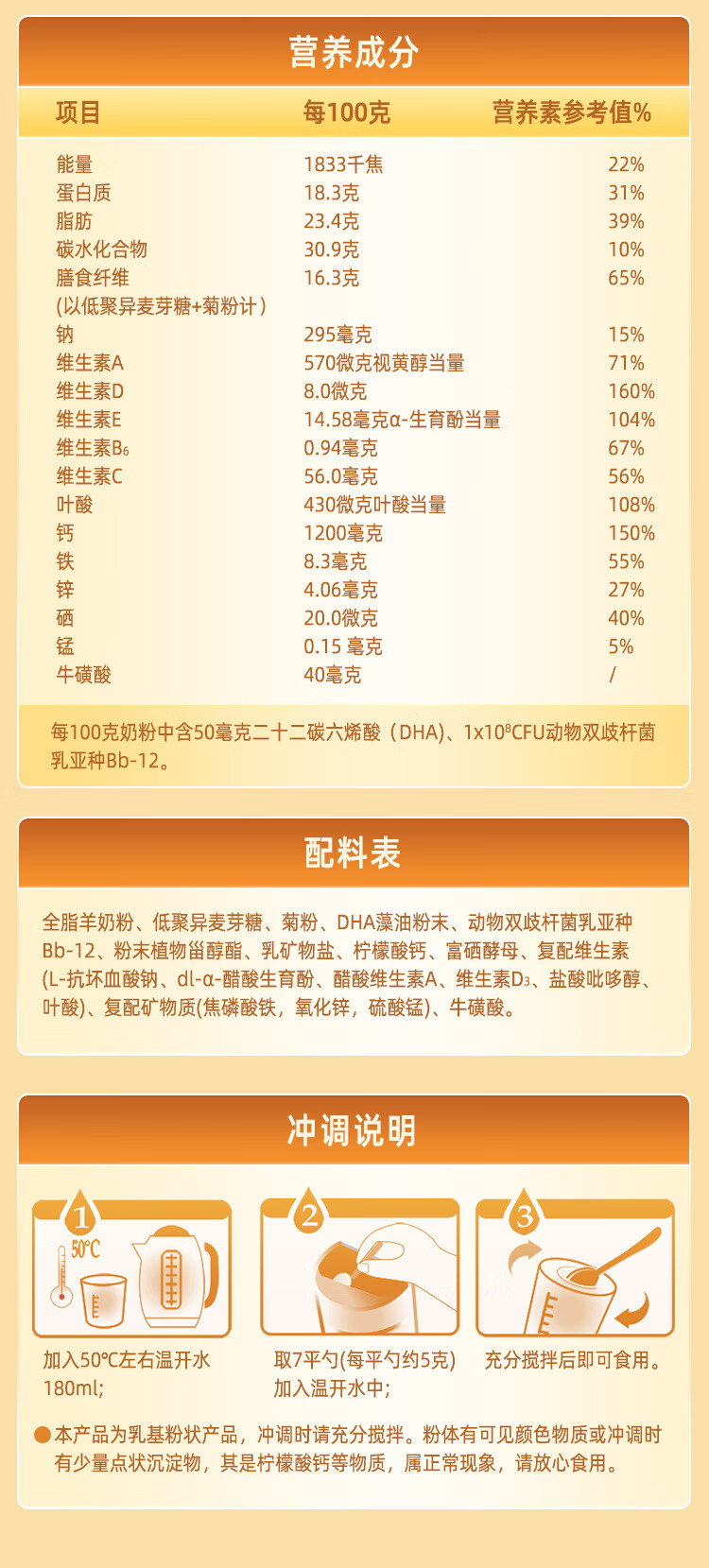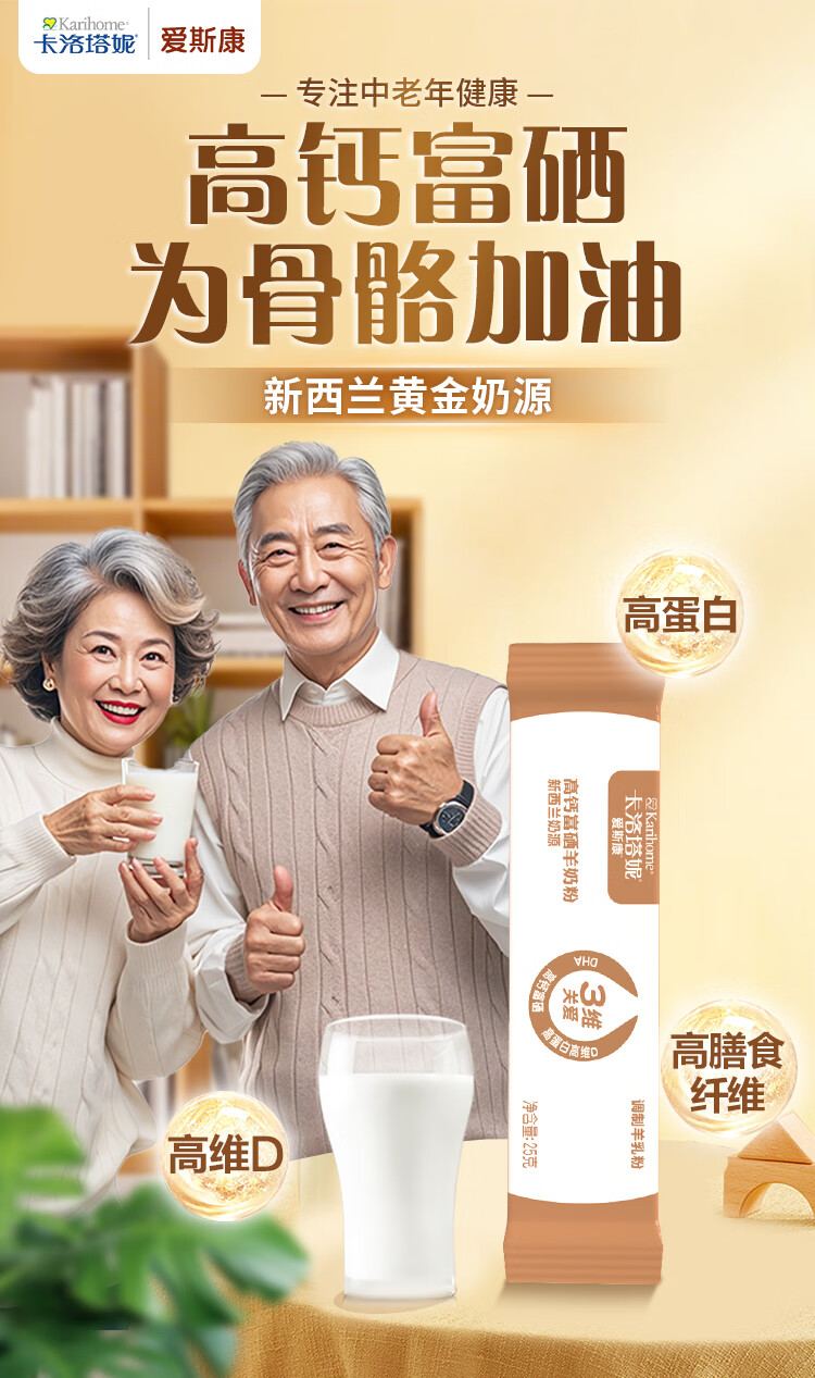 卡洛塔妮(karihome)中老年奶粉高钙富硒成人羊奶粉补钙试用装新西兰进口奶源25g