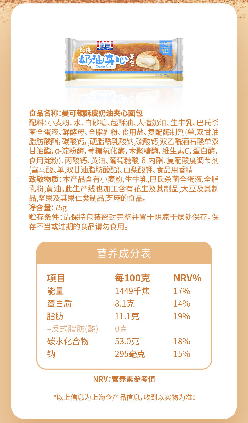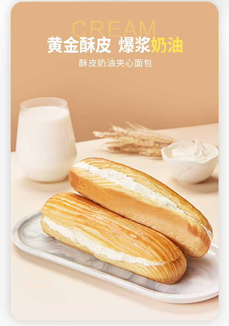 曼可顿酥皮夹心面包 手撕小面包 早餐食品速食懒人 成人儿童休闲零食 酥皮夹心面包 奶油75g*10