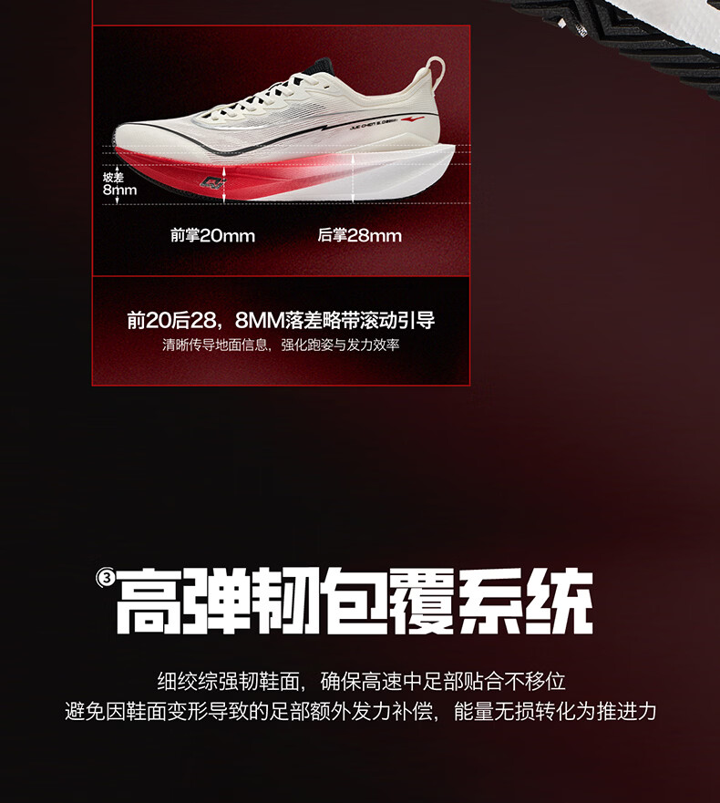 鸿星尔克(ERKE)运动鞋竞速竞训跑步鞋男绝尘5男士马拉松体考体侧跑鞋51126203028