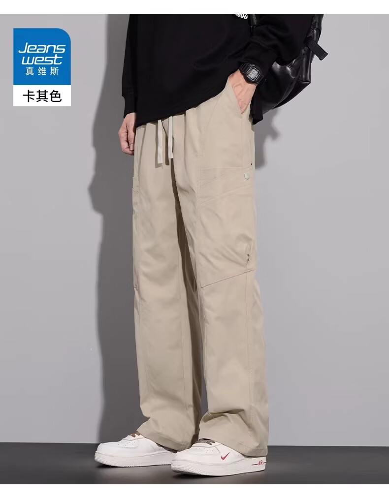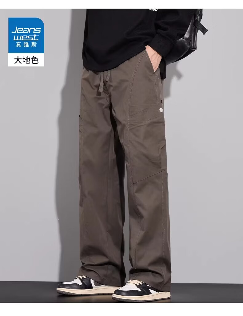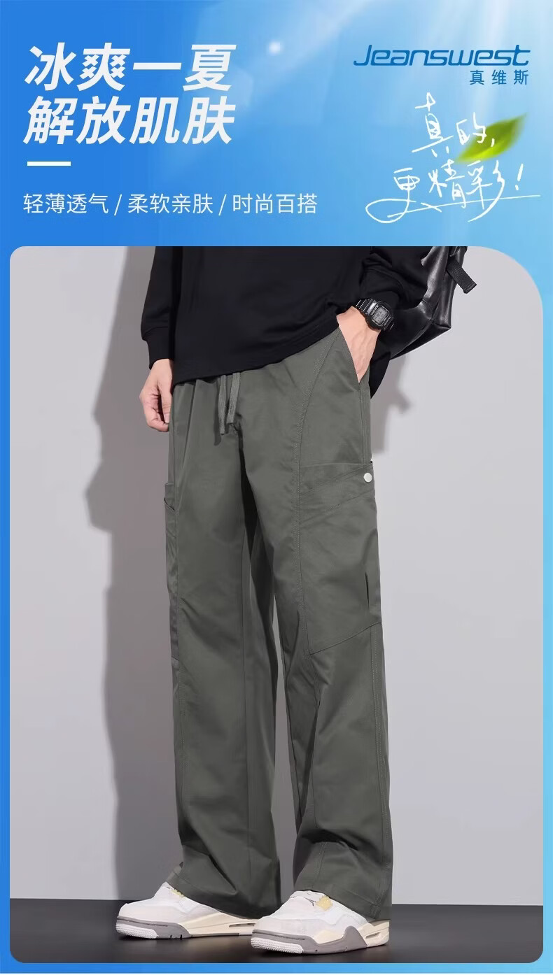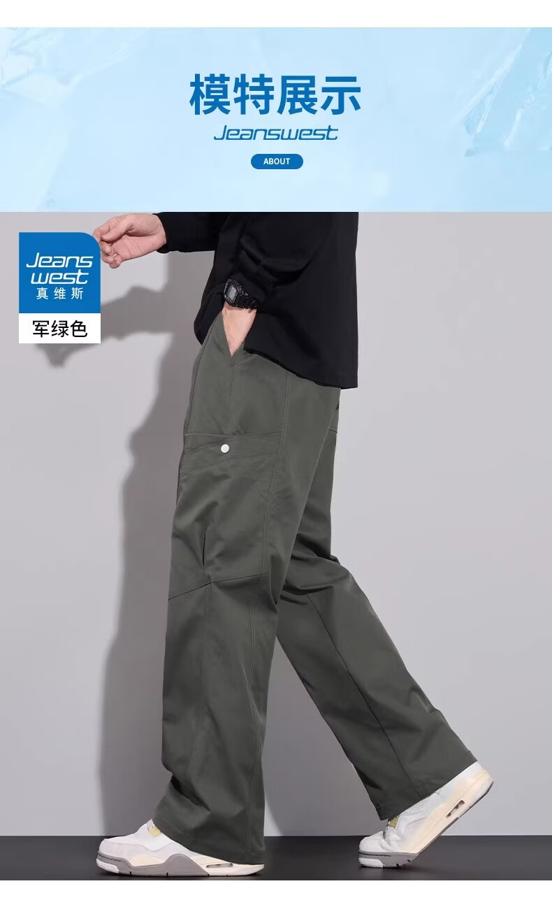 真维斯(Jeanswest)复古简约垂感休闲裤男2026春夏新款宽松百搭设计感时尚长裤 军绿色 【亲肤舒适】 M 【100-120斤】