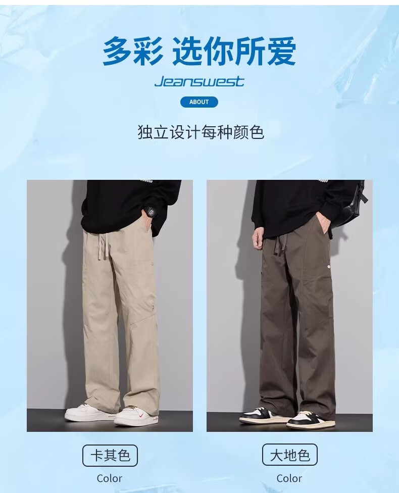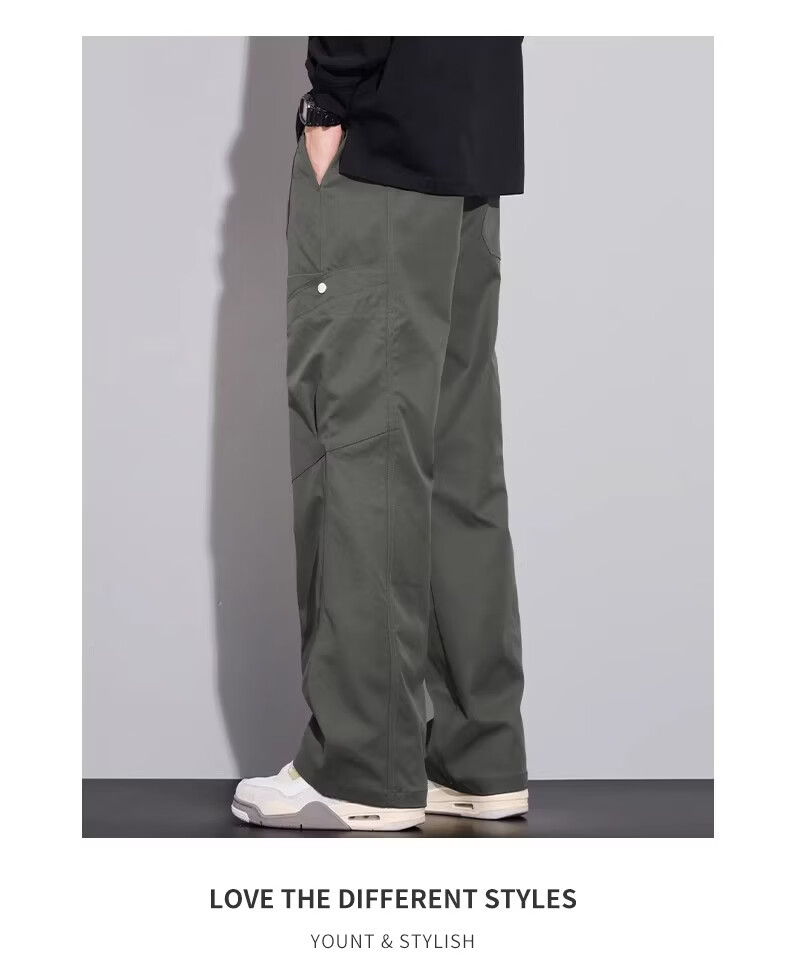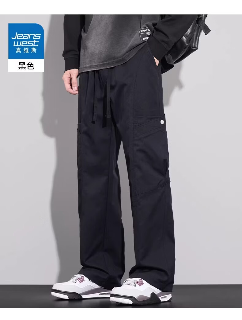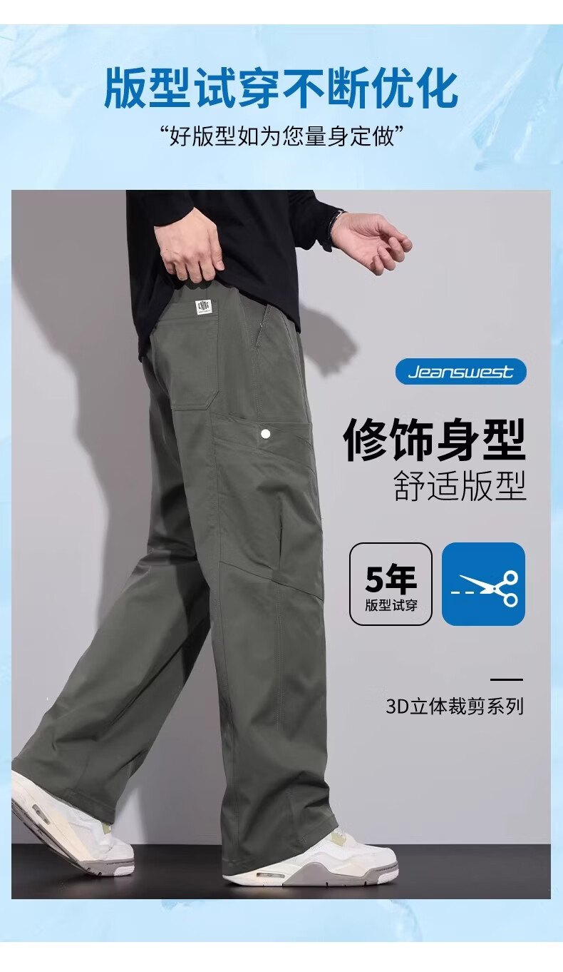 真维斯(Jeanswest)复古简约垂感休闲裤男2026春夏新款宽松百搭设计感时尚长裤 军绿色 【亲肤舒适】 M 【100-120斤】