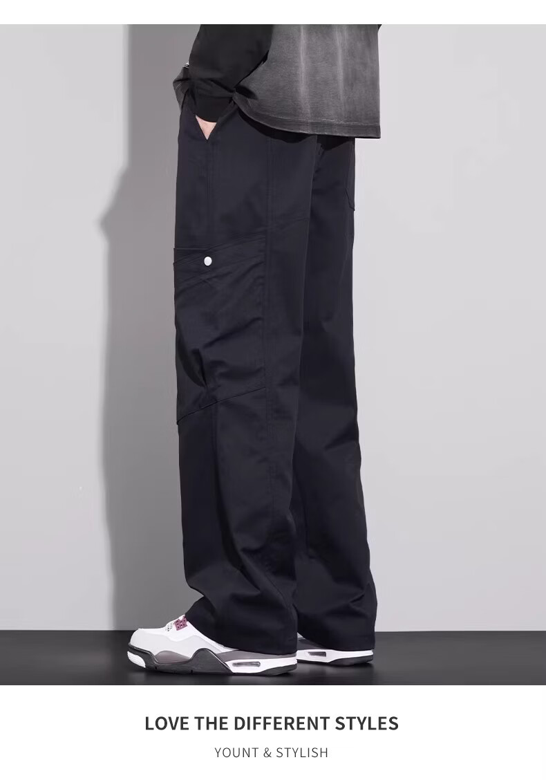 BAA AND BAA垂感裤子男春秋季潮牌宽松直筒阔腿裤2025新款男士休闲百搭长裤 黑色春秋款 C138-OPX M 【建议80-105斤】