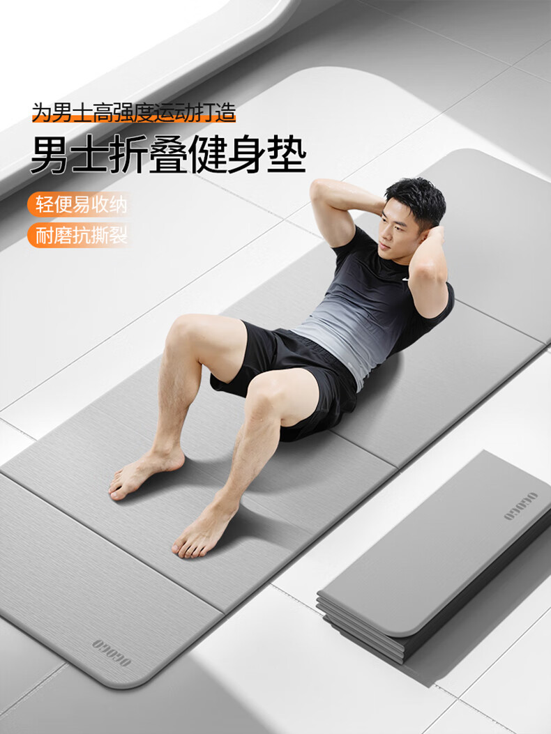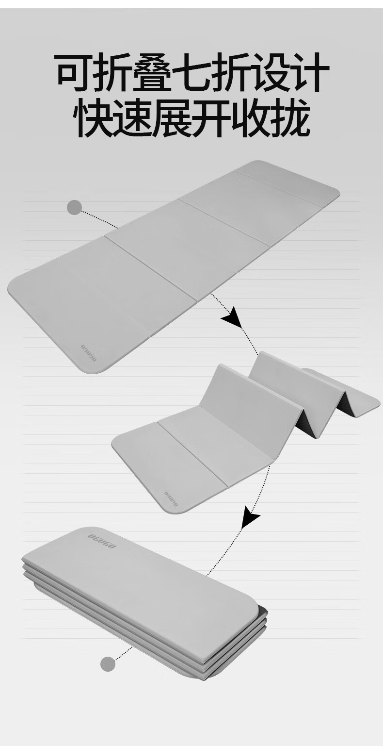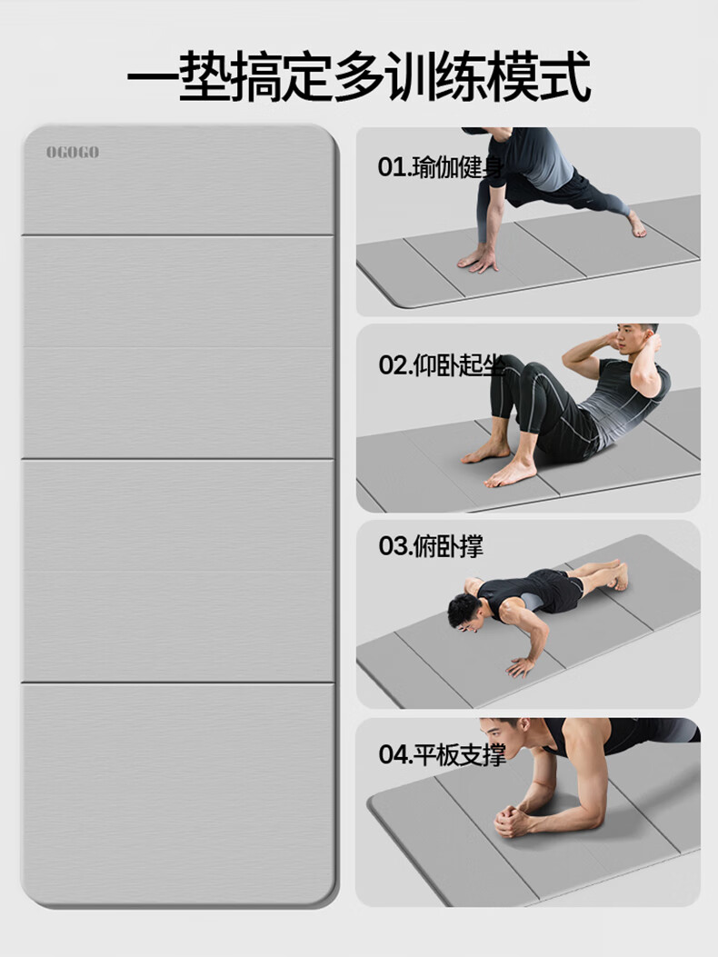 OGOGO可折叠瑜伽垫便携多功能家用地垫防滑减震隔音加大加厚运动健身垫 奶咖/黑色【180*61*0.8cm】