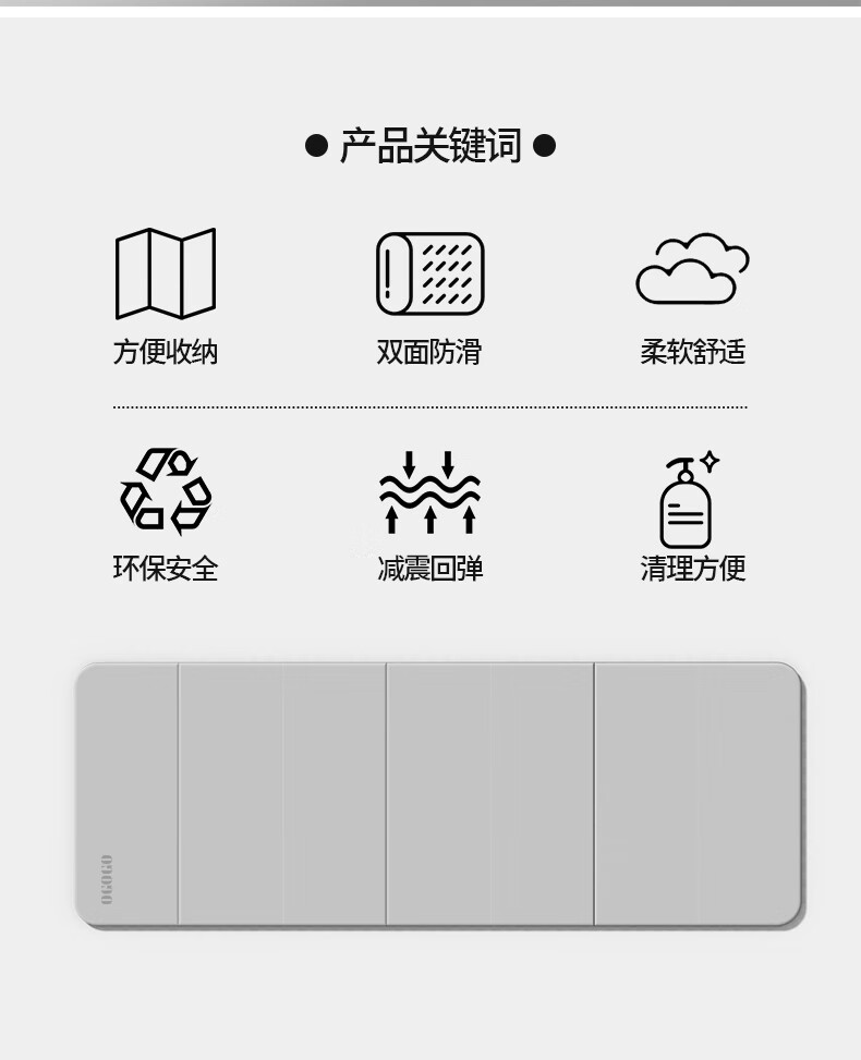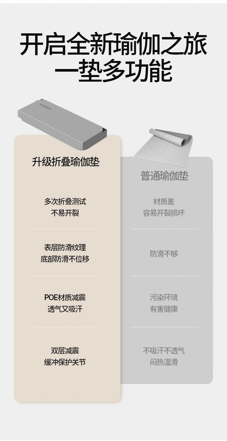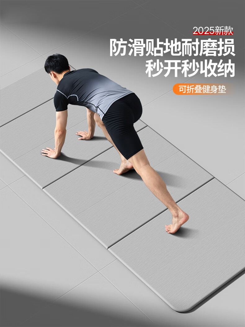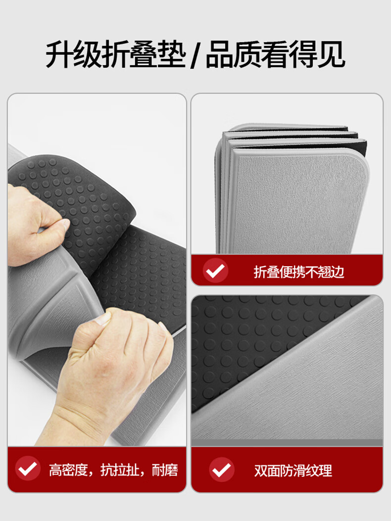 OGOGO可折叠瑜伽垫便携多功能家用地垫防滑减震隔音加大加厚运动健身垫 奶咖/黑色【180*61*0.8cm】