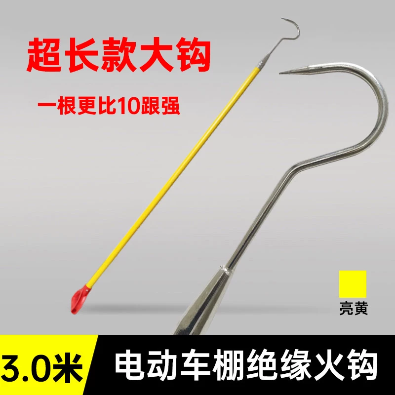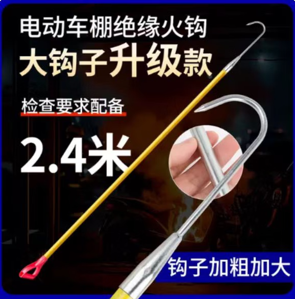 恒祥绝缘救援钩电动车棚加长拖拽钩小区物业救援拖拽消防火钩 电动车棚绝缘火钩2.4米红色加强款90%客户选择