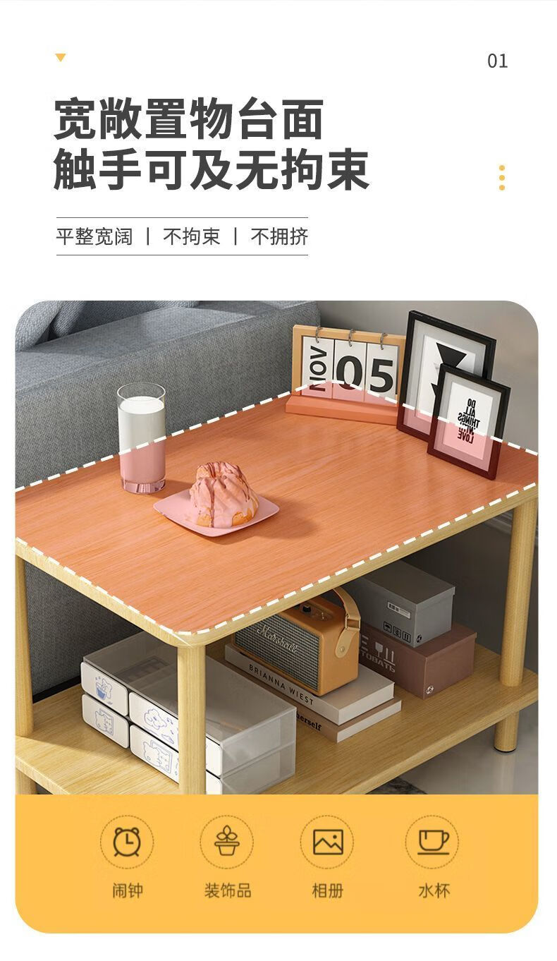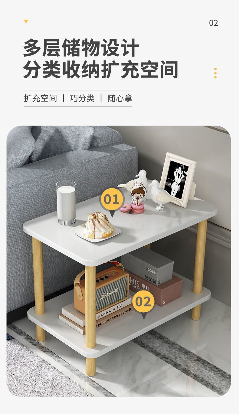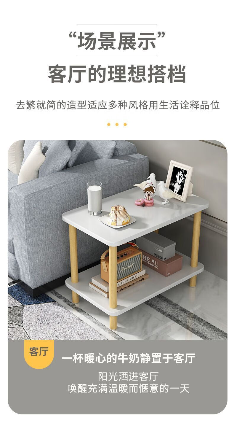 语森忆奶油风床头柜客厅小桌子沙发边几茶几卧室床头桌简易出租屋家用饭 40*40*53cm【实木桌腿】暖白色 【双层置物 宽大台面】