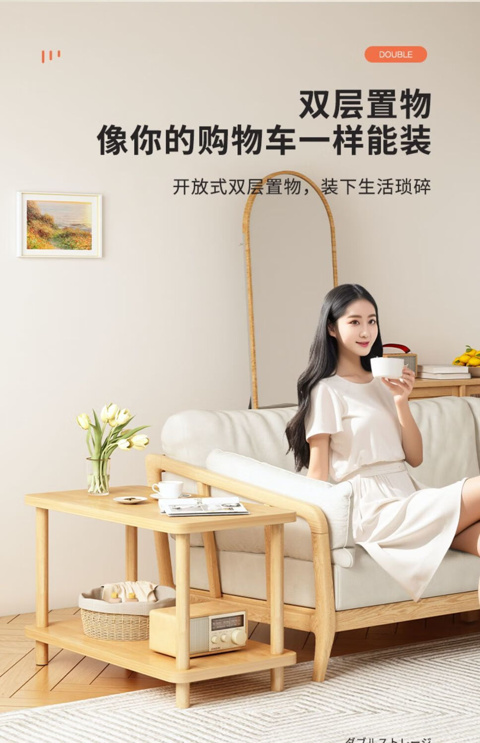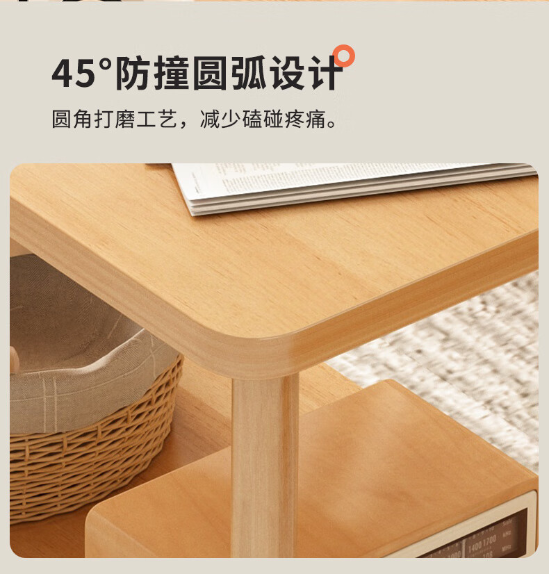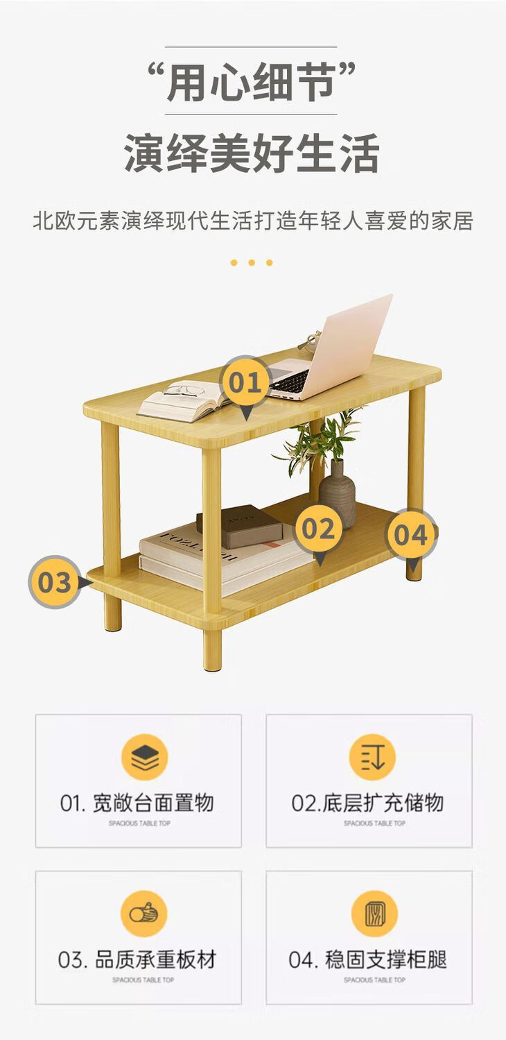 语森忆奶油风床头柜客厅小桌子沙发边几茶几卧室床头桌简易出租屋家用饭 40*40*53cm【实木桌腿】暖白色 【双层置物 宽大台面】