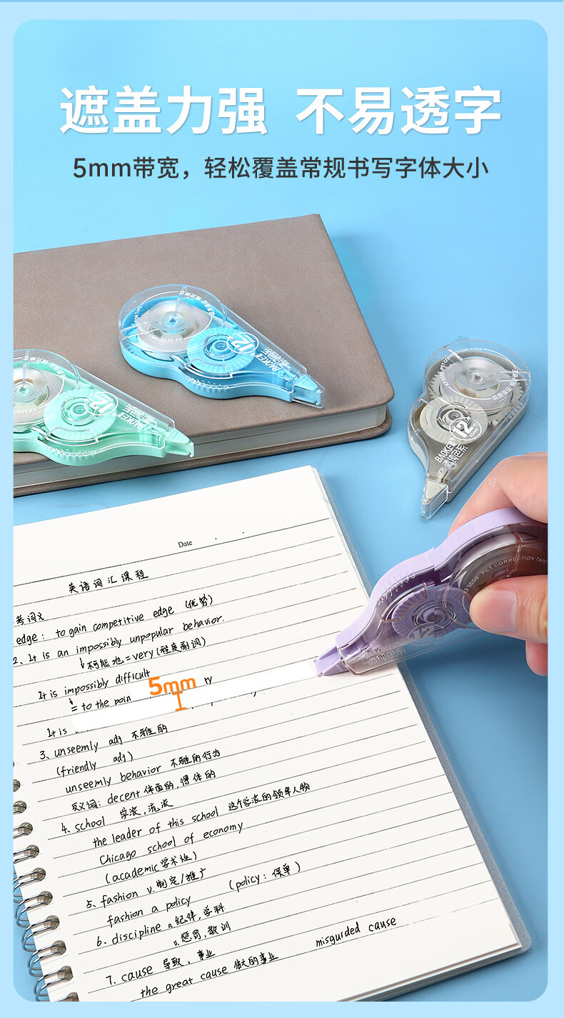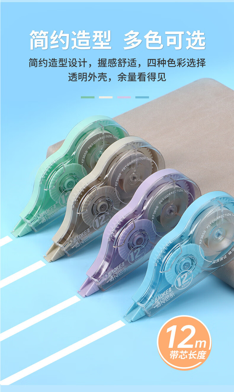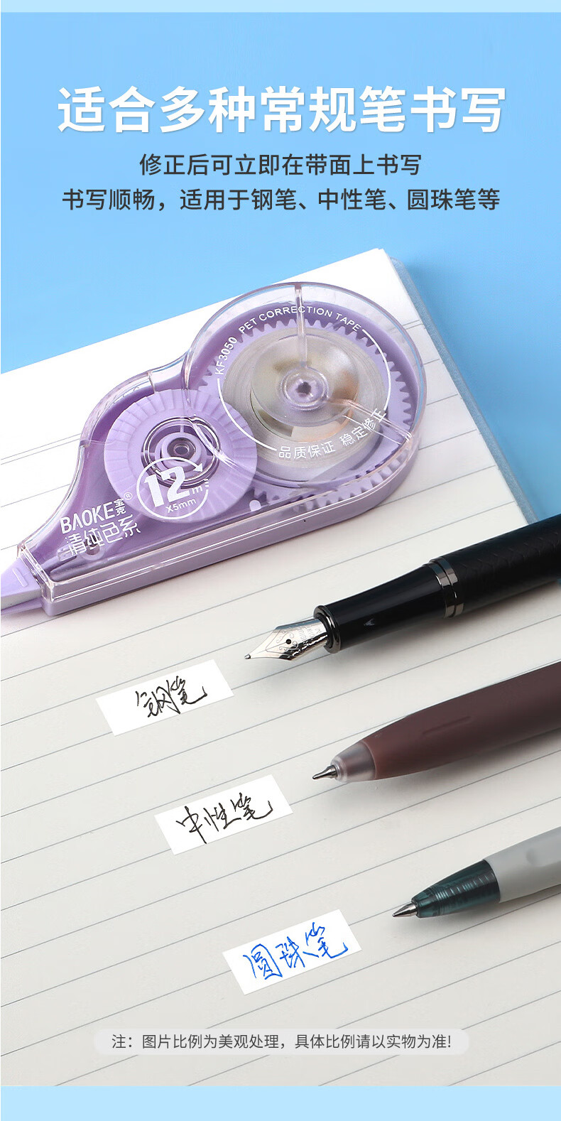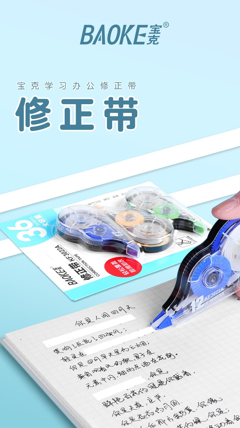 宝克(BAOKE) 修正带 学生办公通用 改正带 涂改带 大中小学生儿童读书写字学习用品文具 包邮 【PET巨容量】20m*6支装(外壳颜色随机)