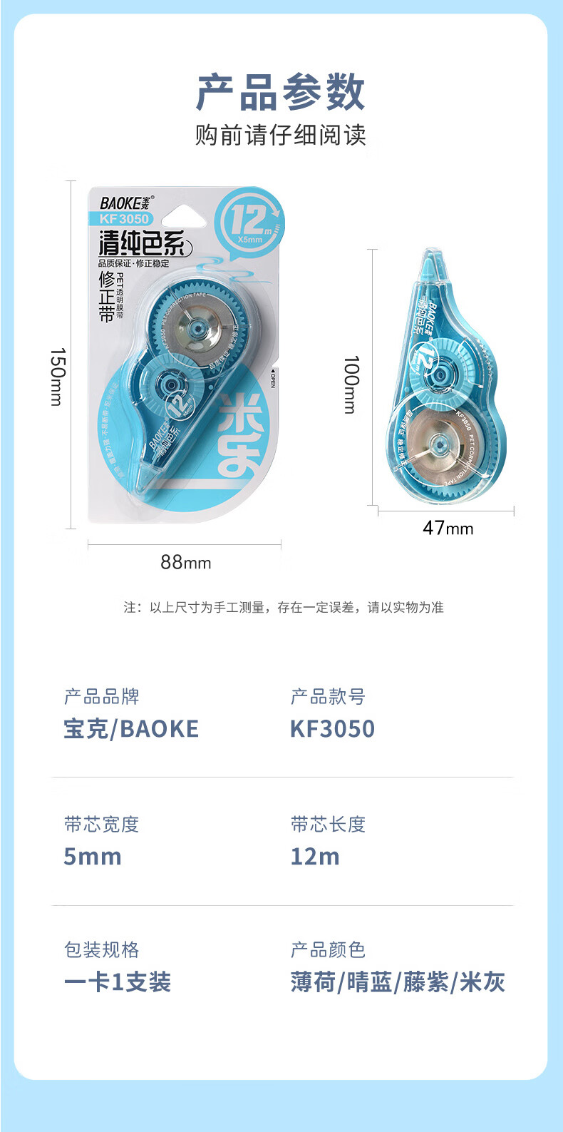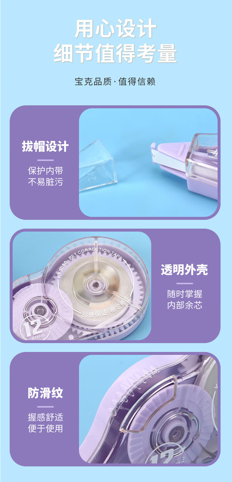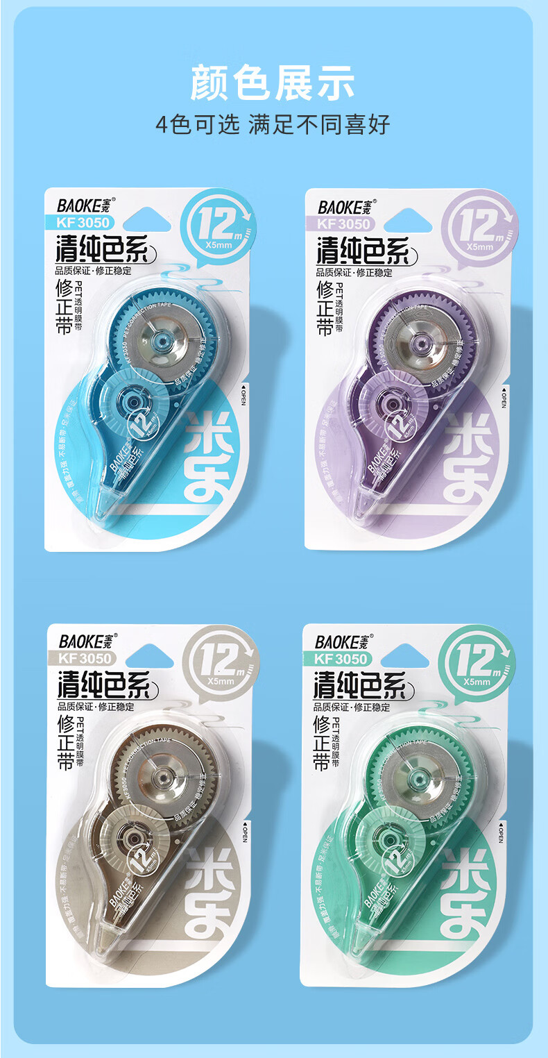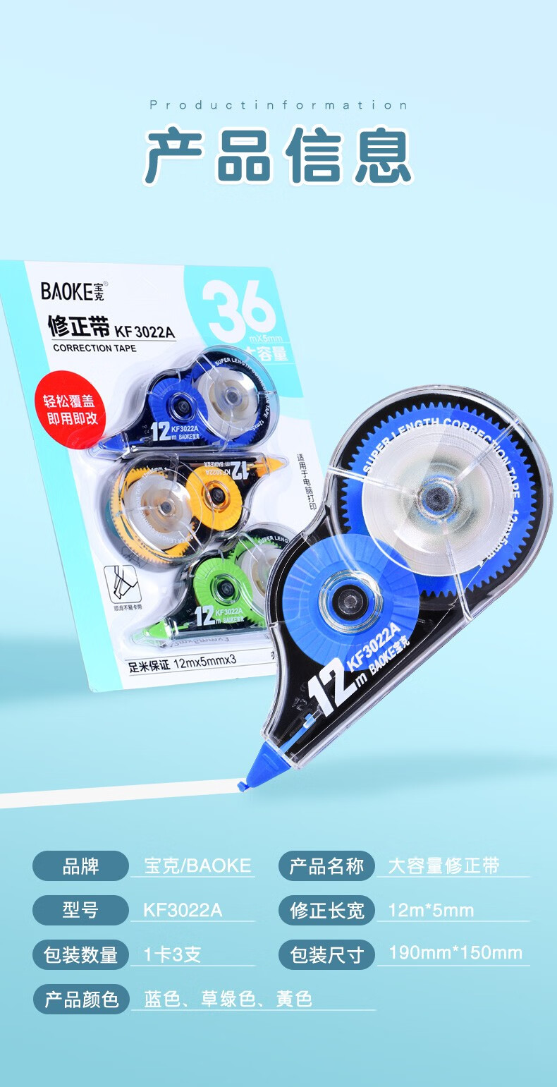 宝克(BAOKE) 修正带 学生办公通用 改正带 涂改带 大中小学生儿童读书写字学习用品文具 包邮 【PET巨容量】20m*6支装(外壳颜色随机)