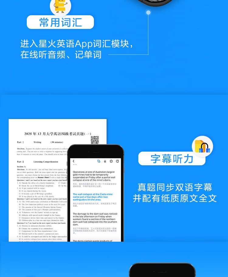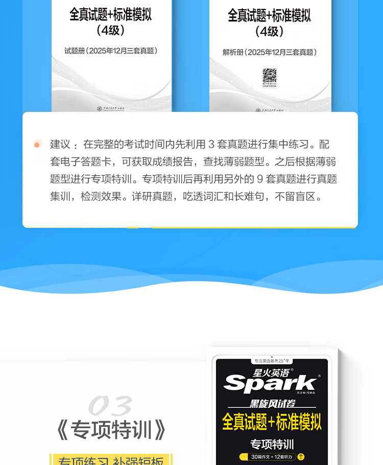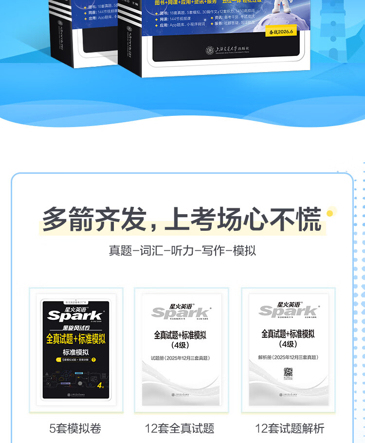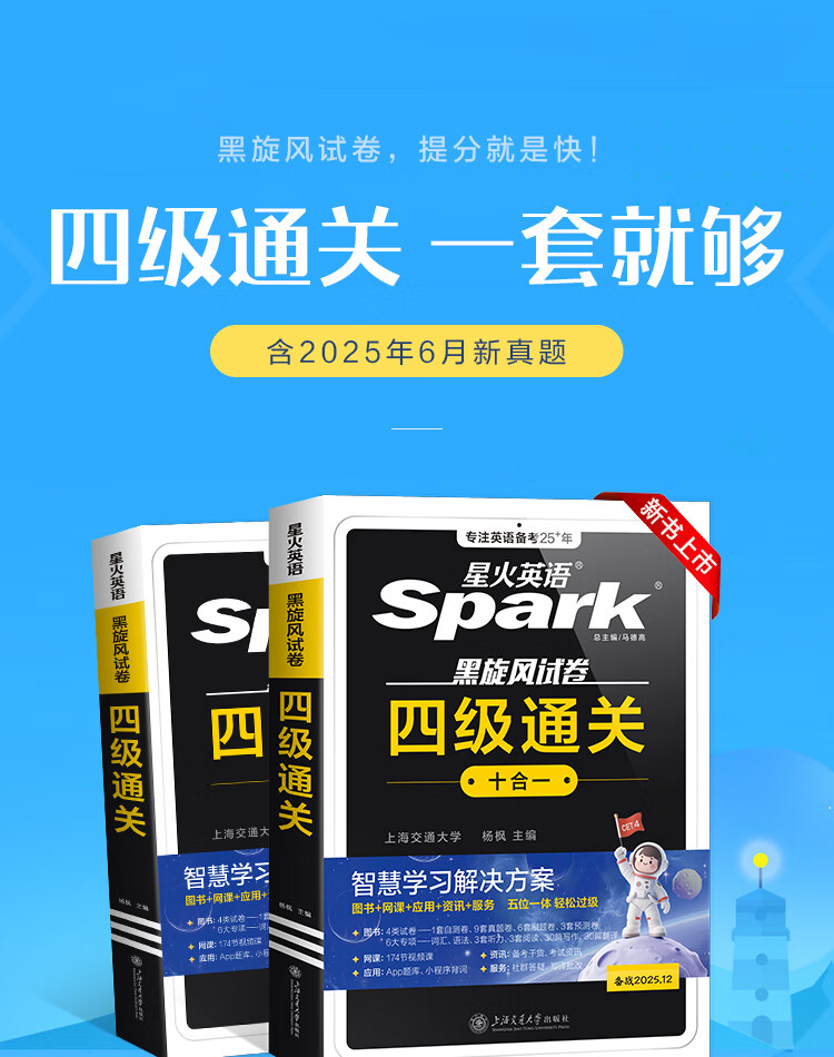 【新华现货】星火英语四级真题备考2026年6月 含25.12月新试卷 大学英语CET4考试英语4级真题试卷 英语四级词汇阅读听力全套备考资料 四级真题试卷