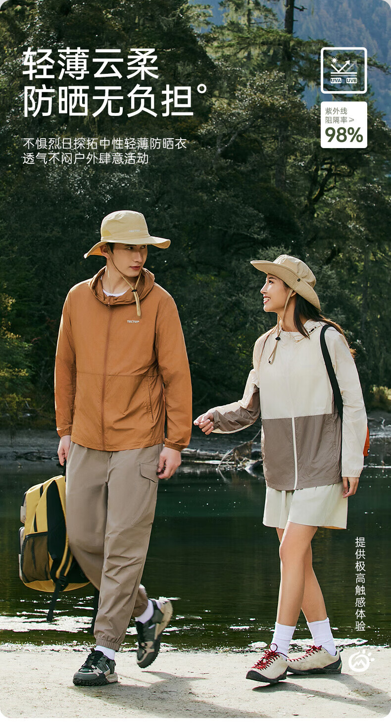 探拓(TECTOP)户外防晒衣男女同款夏季轻薄透气UPF50+防紫外线皮肤衣冰感防晒服 【男女同款】燕麦色/新卡其 S