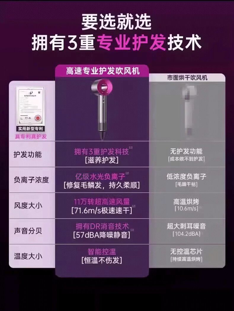 戴森德乐【智能测距感应自动调温|三八节女神礼物】吹风机家用静音负离子大功率不伤发恒温护发速干 中国红-五风嘴30亿水润负离子恒