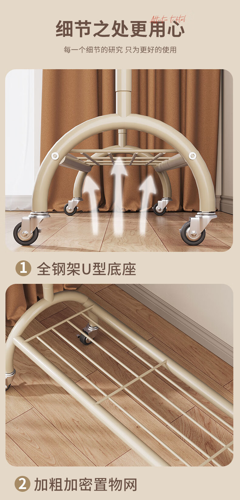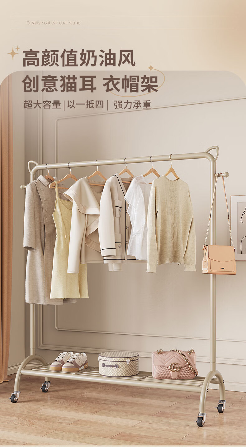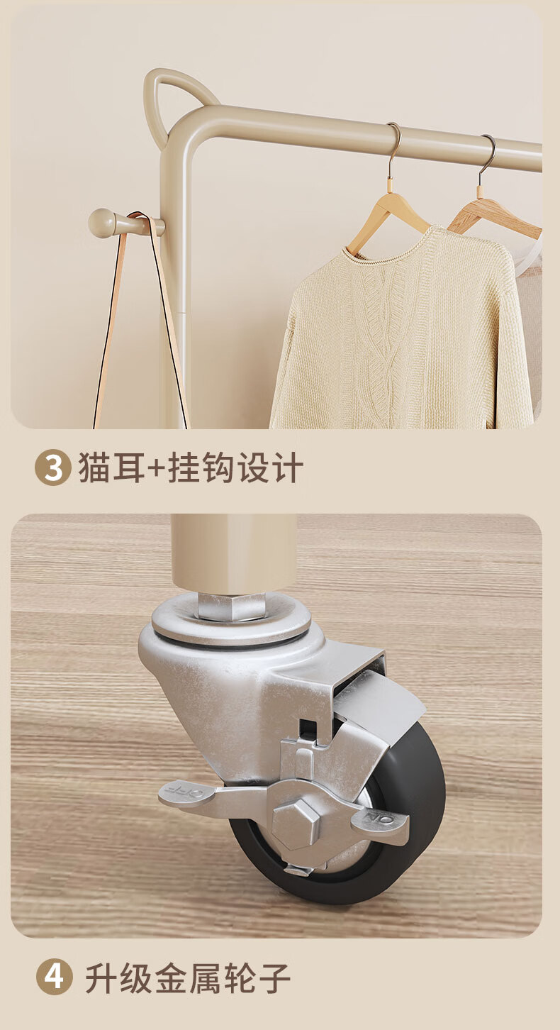 咏幻加粗晾衣架移动挂衣架杆落地卧室内家用儿童房间衣服收纳置物架子 轻奢金6 0【22加粗管/可挂冬衣】