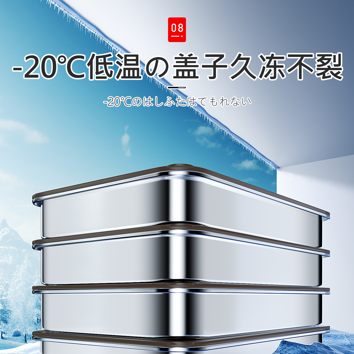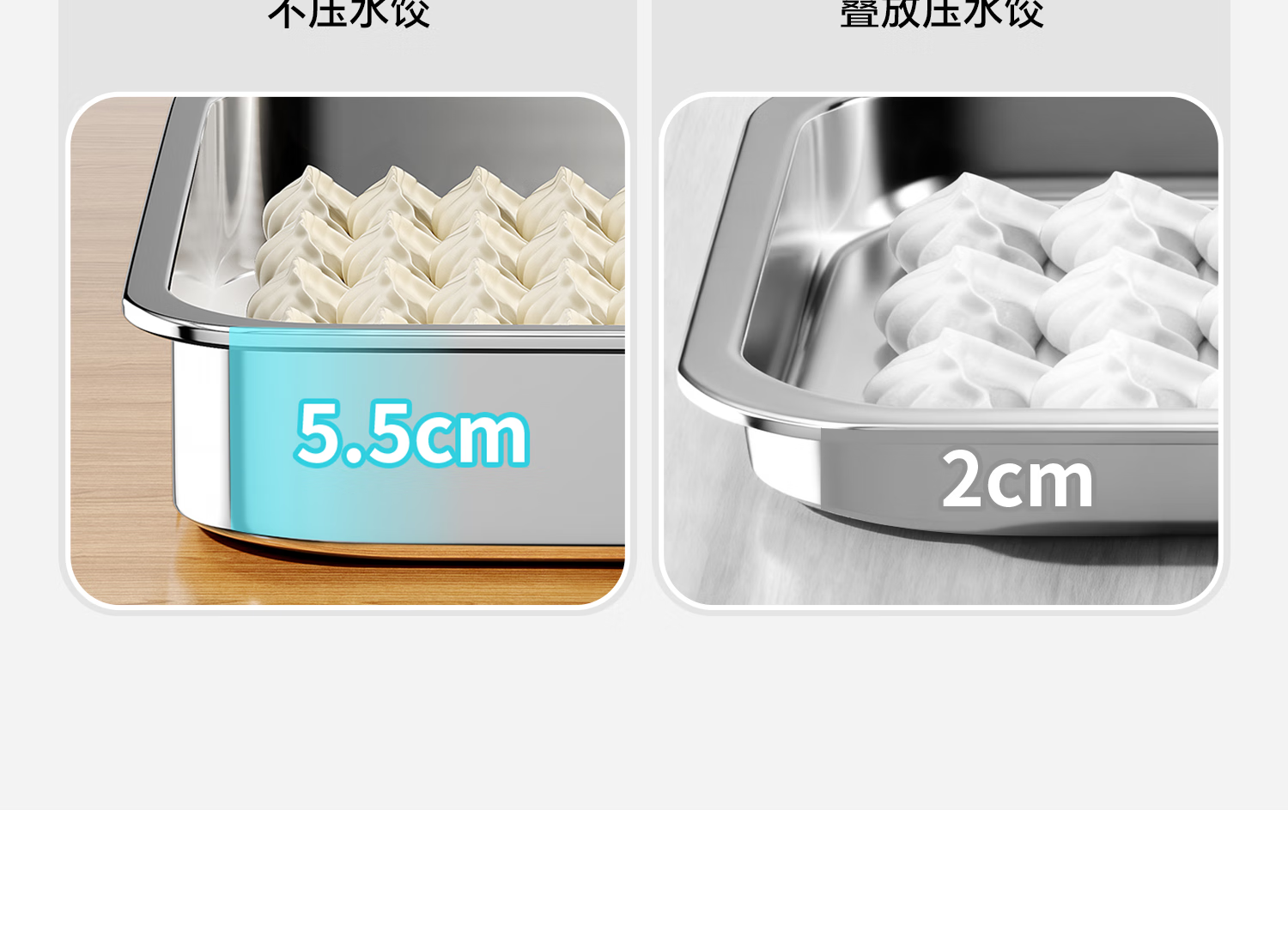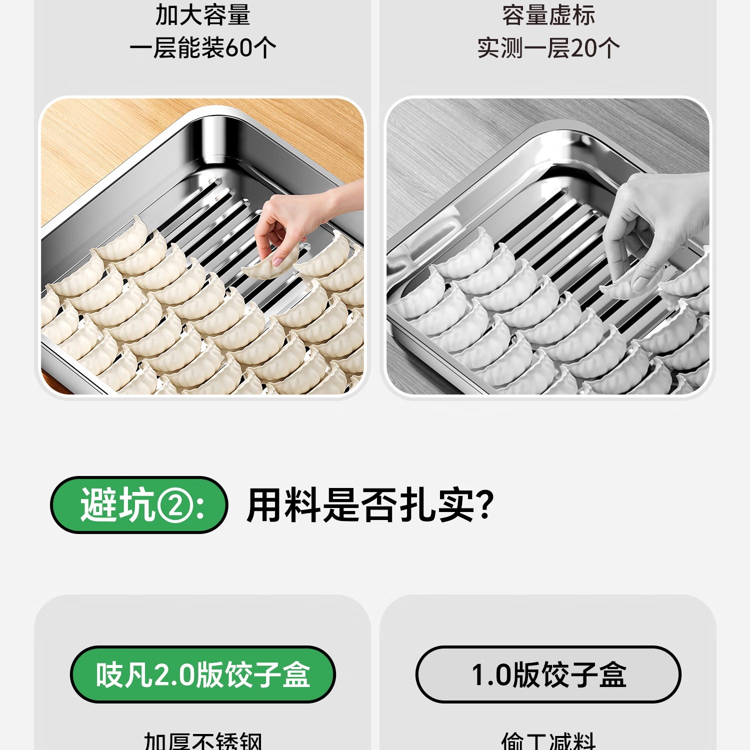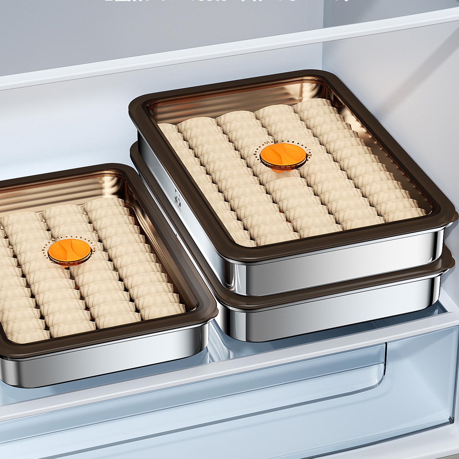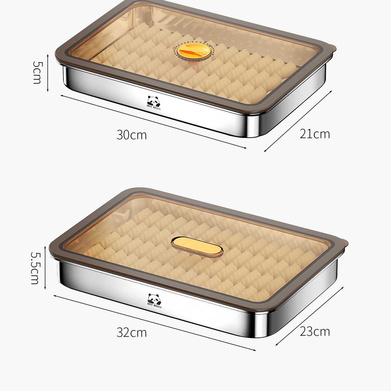 吱凡日本食品级304不锈钢饺子收纳盒冰箱保鲜盒冷藏速冻水饺托盘带盖 【大号】2层2盖-约放120个饺子【食品级304】