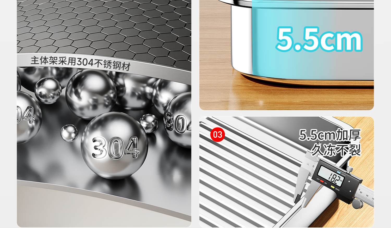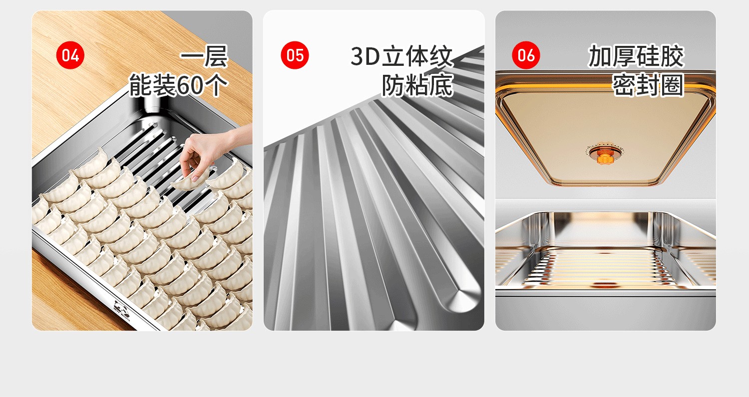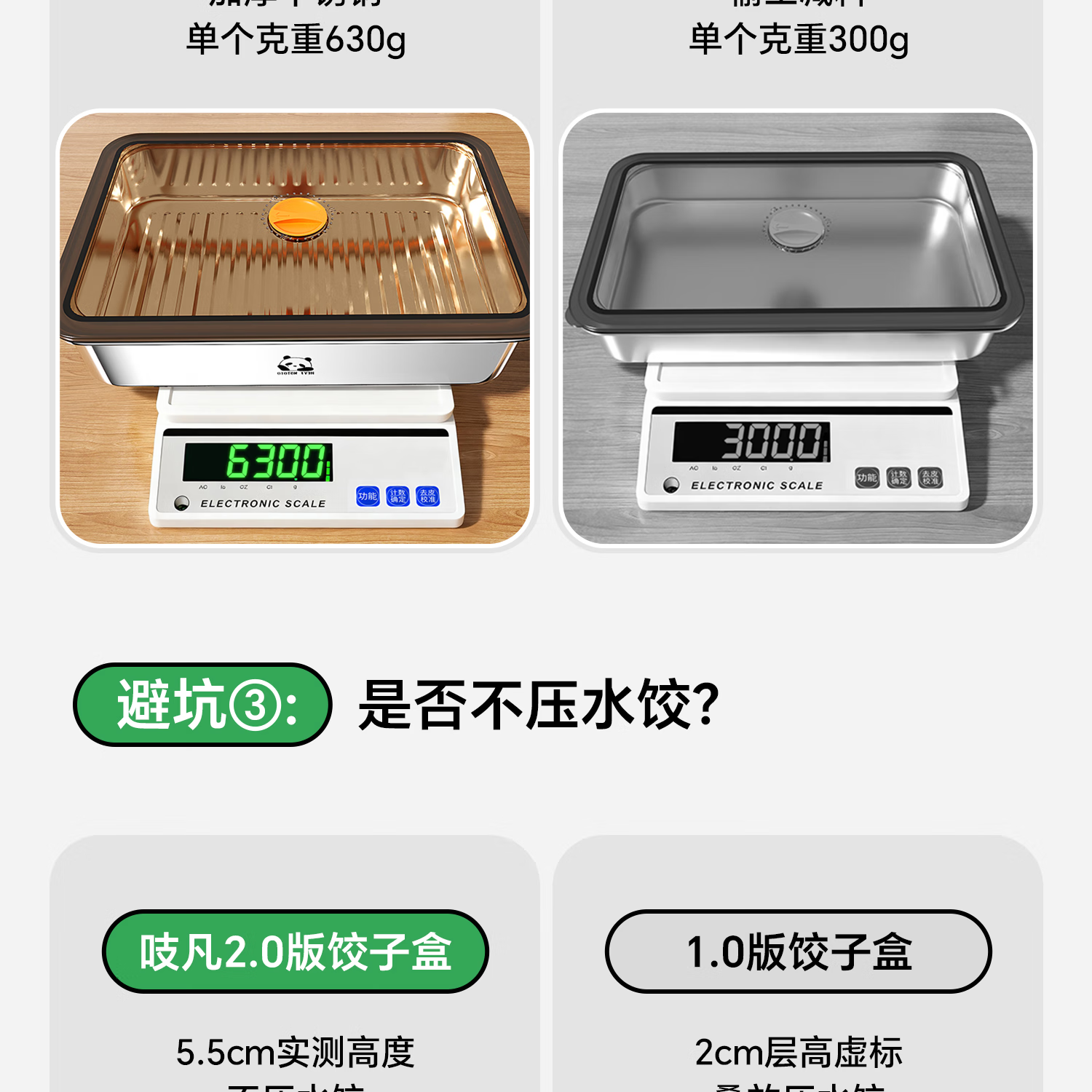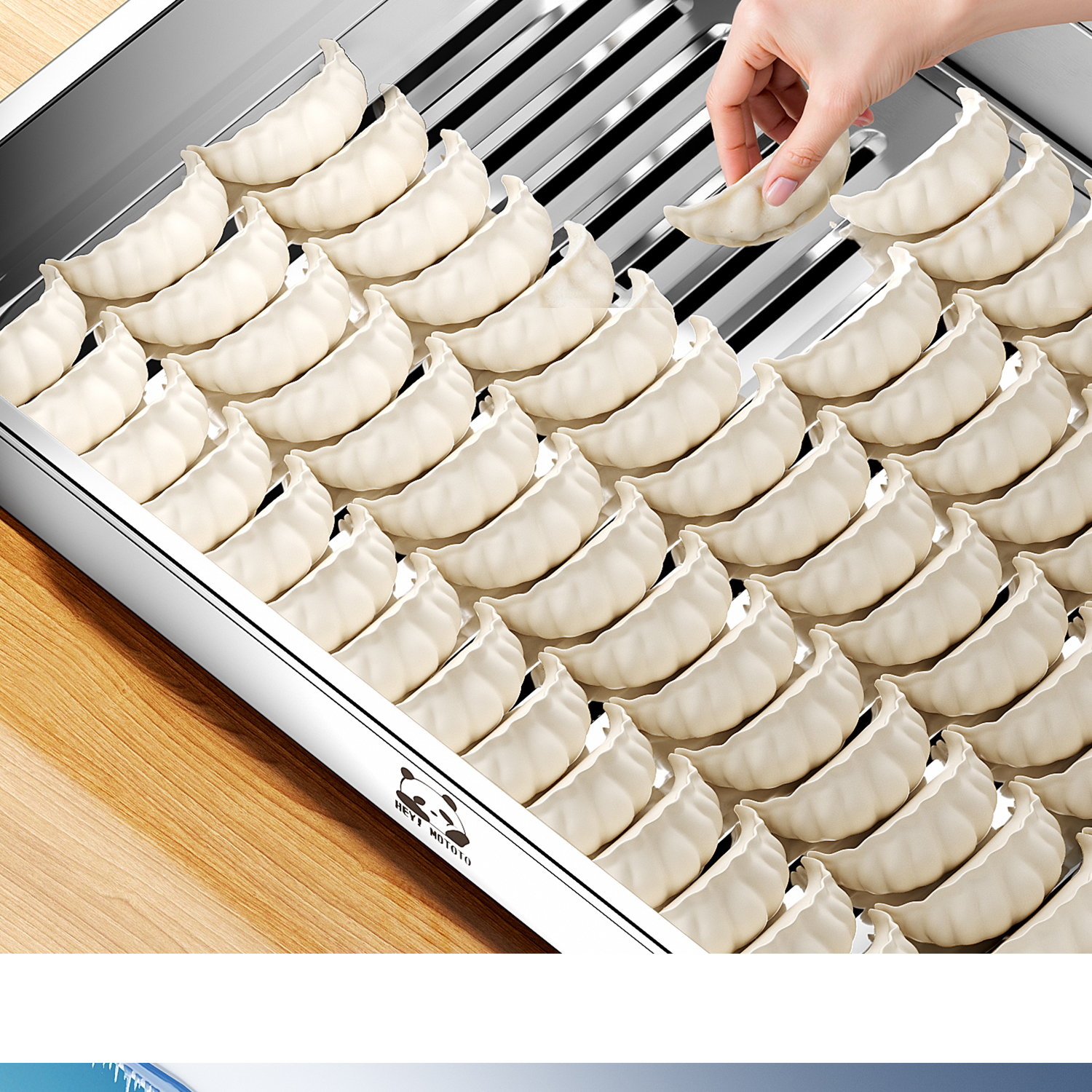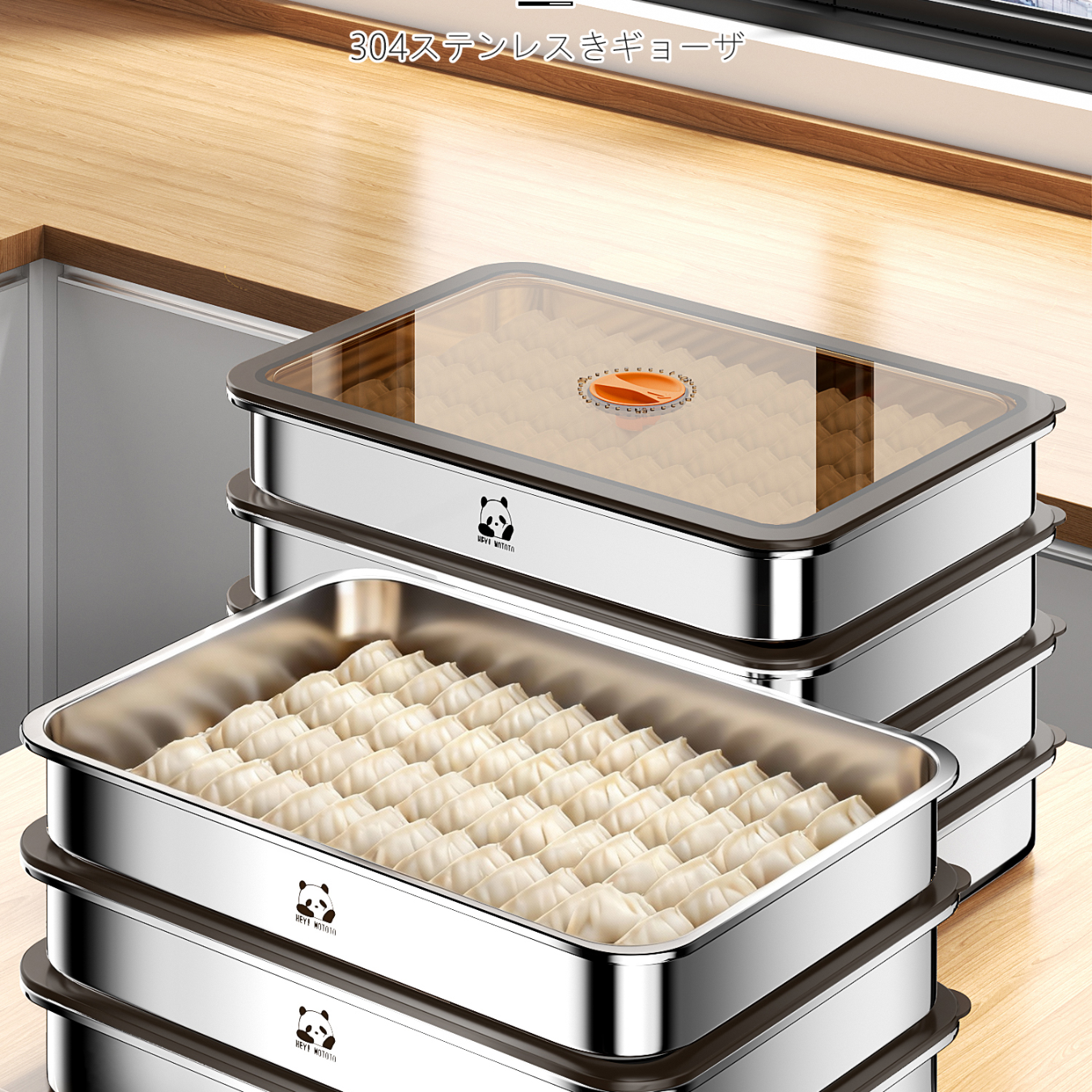 吱凡日本食品级304不锈钢饺子收纳盒冰箱保鲜盒冷藏速冻水饺托盘带盖 【大号】2层2盖-约放120个饺子【食品级304】