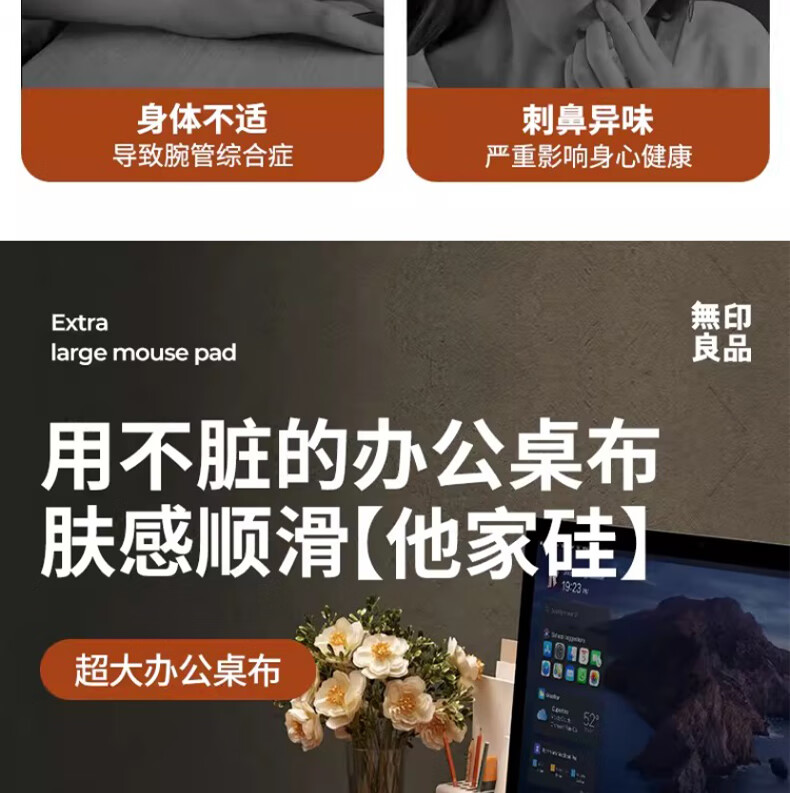 无印良品【不掉帧】超大电脑桌布垫办公桌面鼠标键盘桌盖垫大号书桌保护垫 【五代升级鼠标顺滑款】焦糖可可 30*70cm【鼠标顺滑】