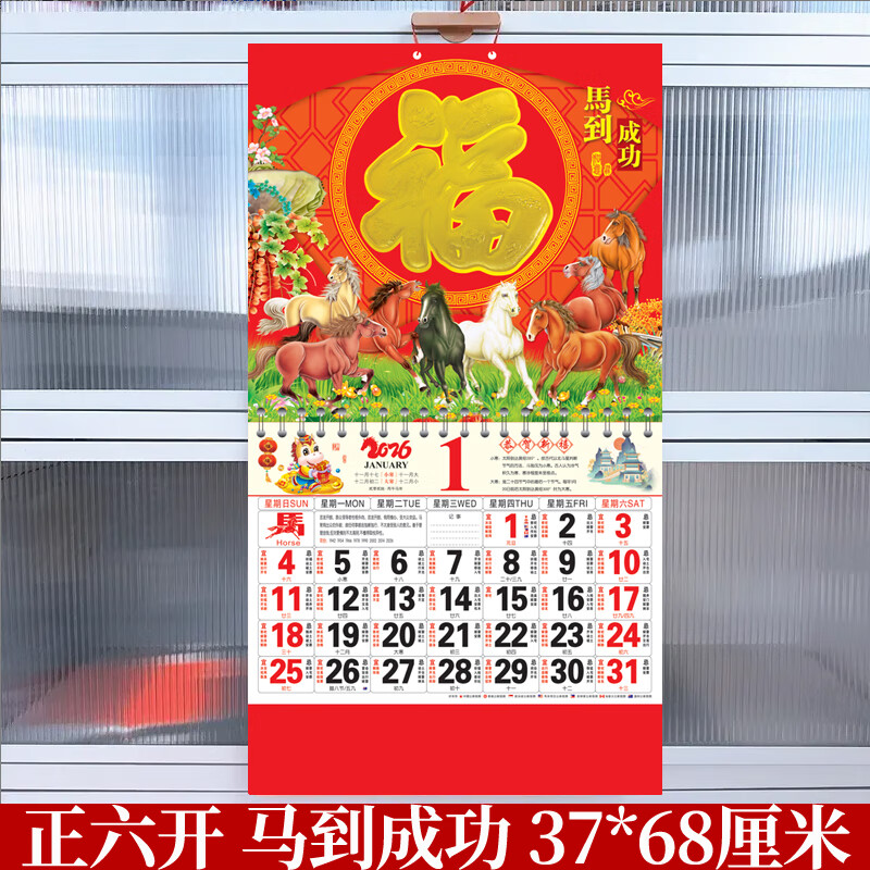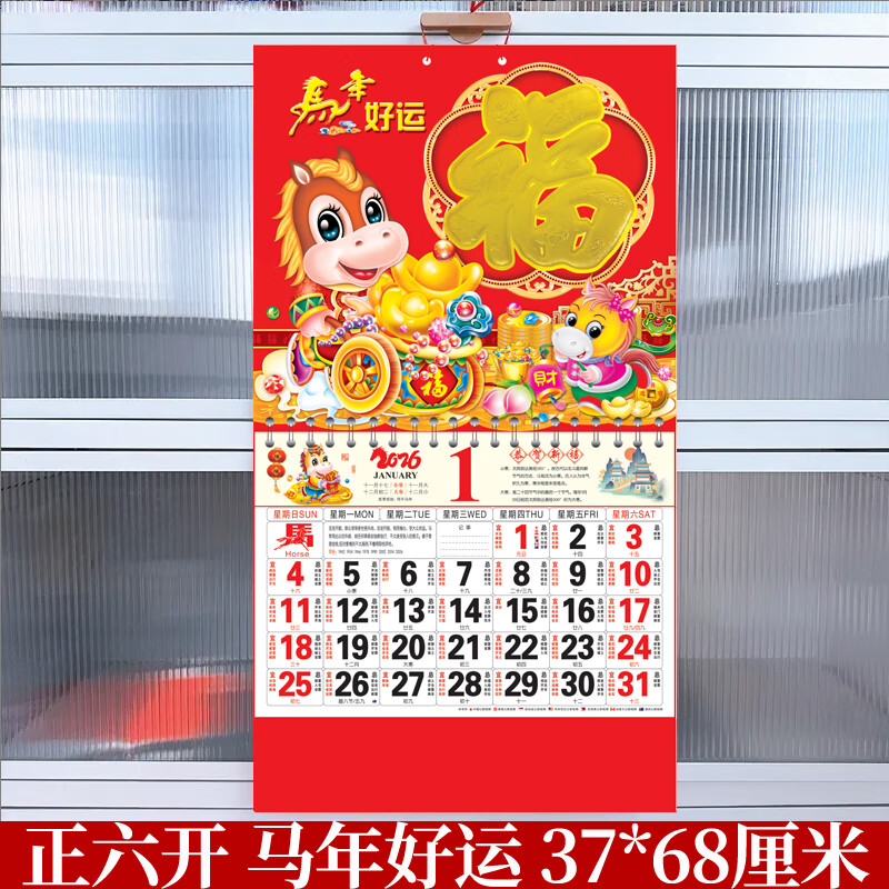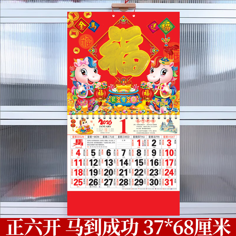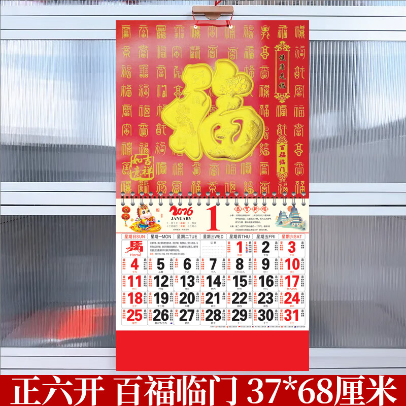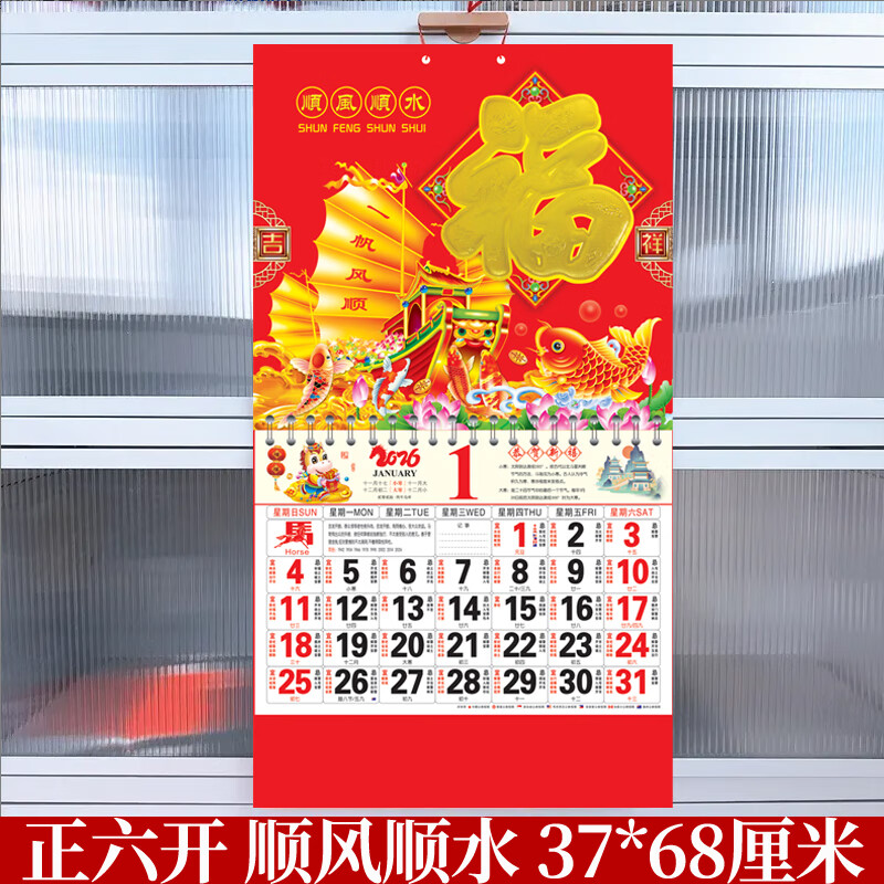 【限时低价】2026年马年挂历定制新款福字挂历吊历日历月历批发定做挂历版订制 2026马年挂历【顺风顺水】37cm*68cm 正6开烫金福字款