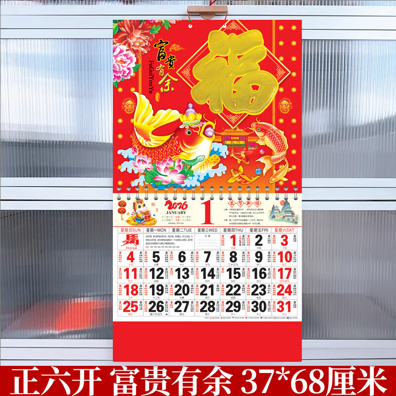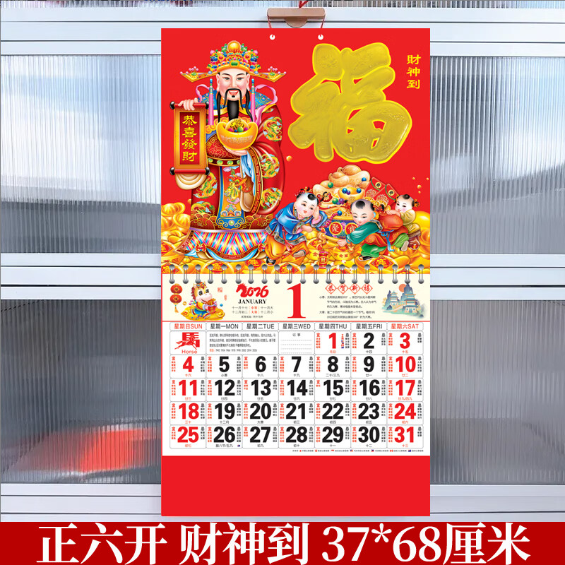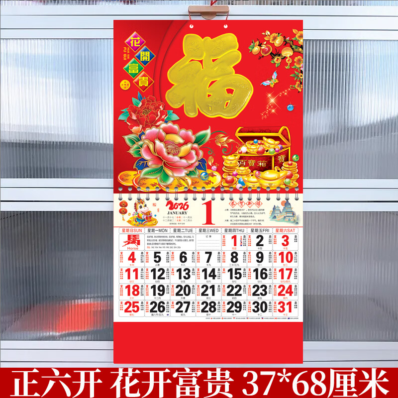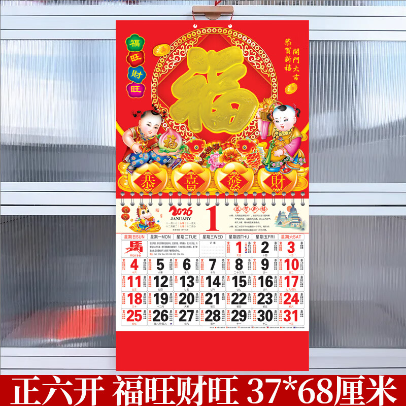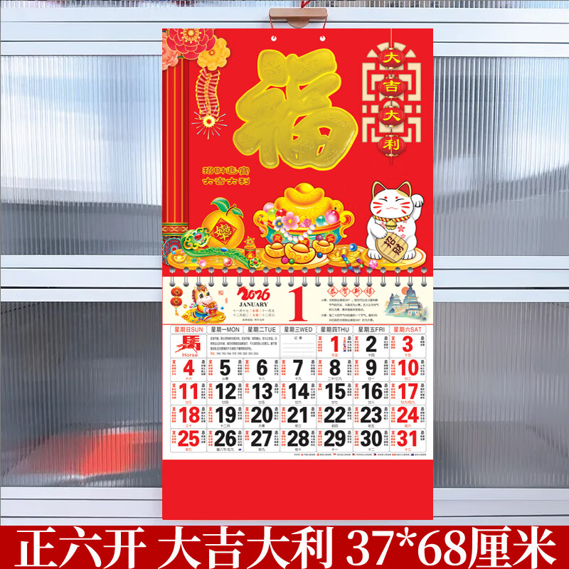 【限时低价】2026年马年挂历定制新款福字挂历吊历日历月历批发定做挂历版订制 2026马年挂历【顺风顺水】37cm*68cm 正6开烫金福字款