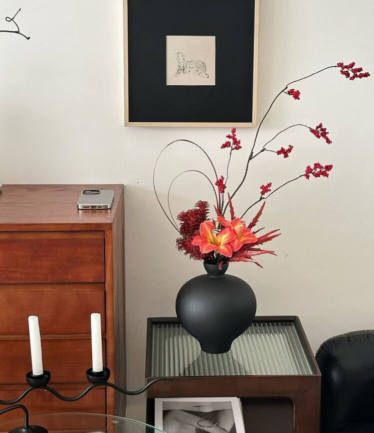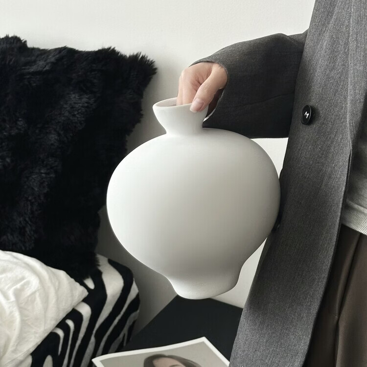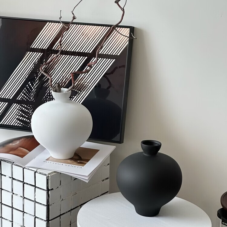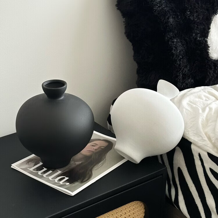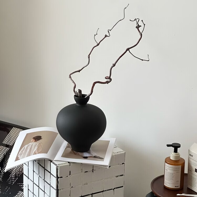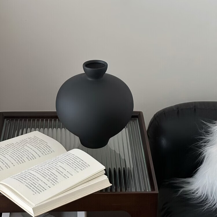 OYKTN黑色陶瓷花瓶桌面插花摆件高级感小众创意客厅装饰花瓶陶瓷插花器 黑色可装水 23*19.7cm