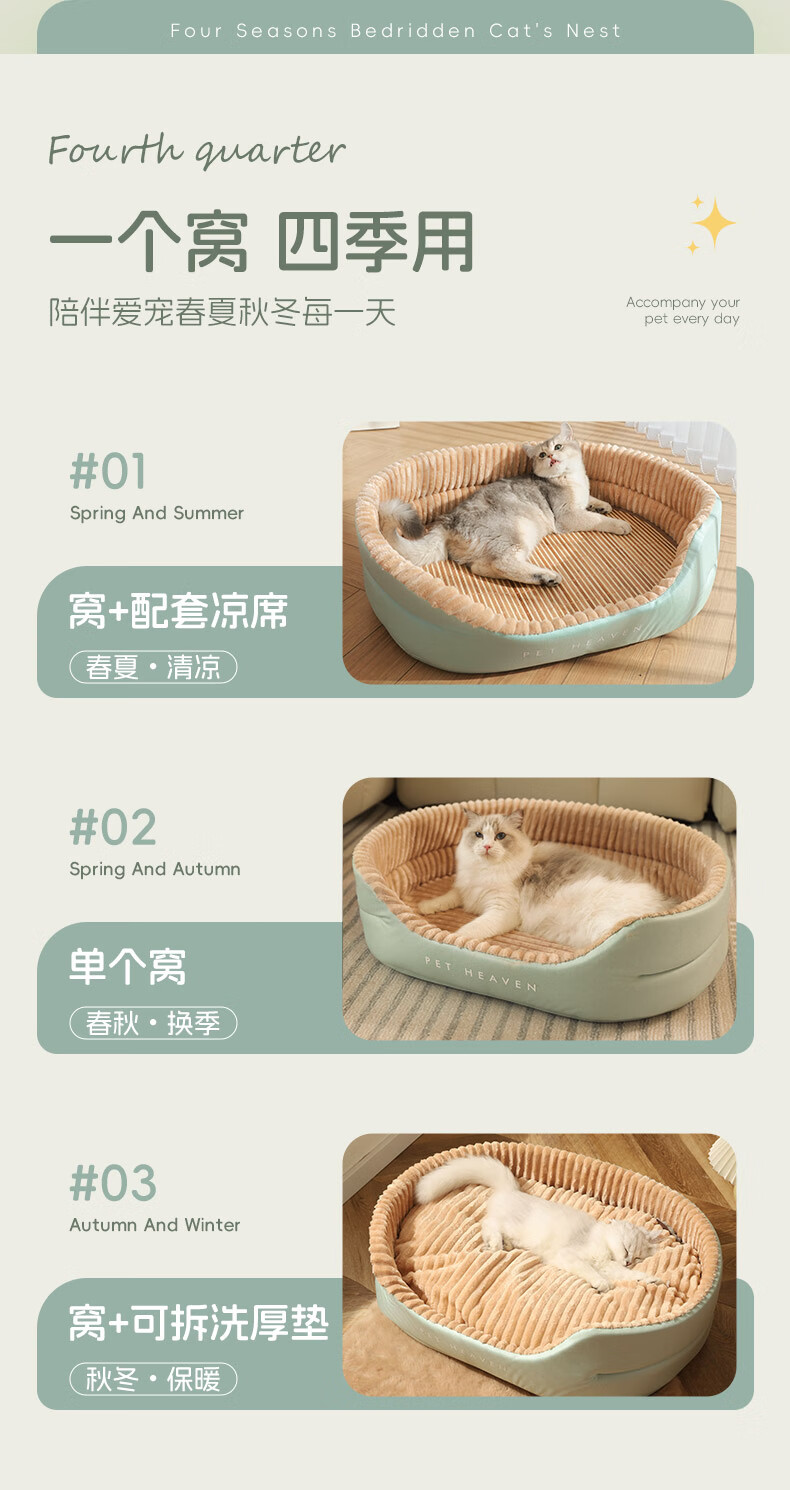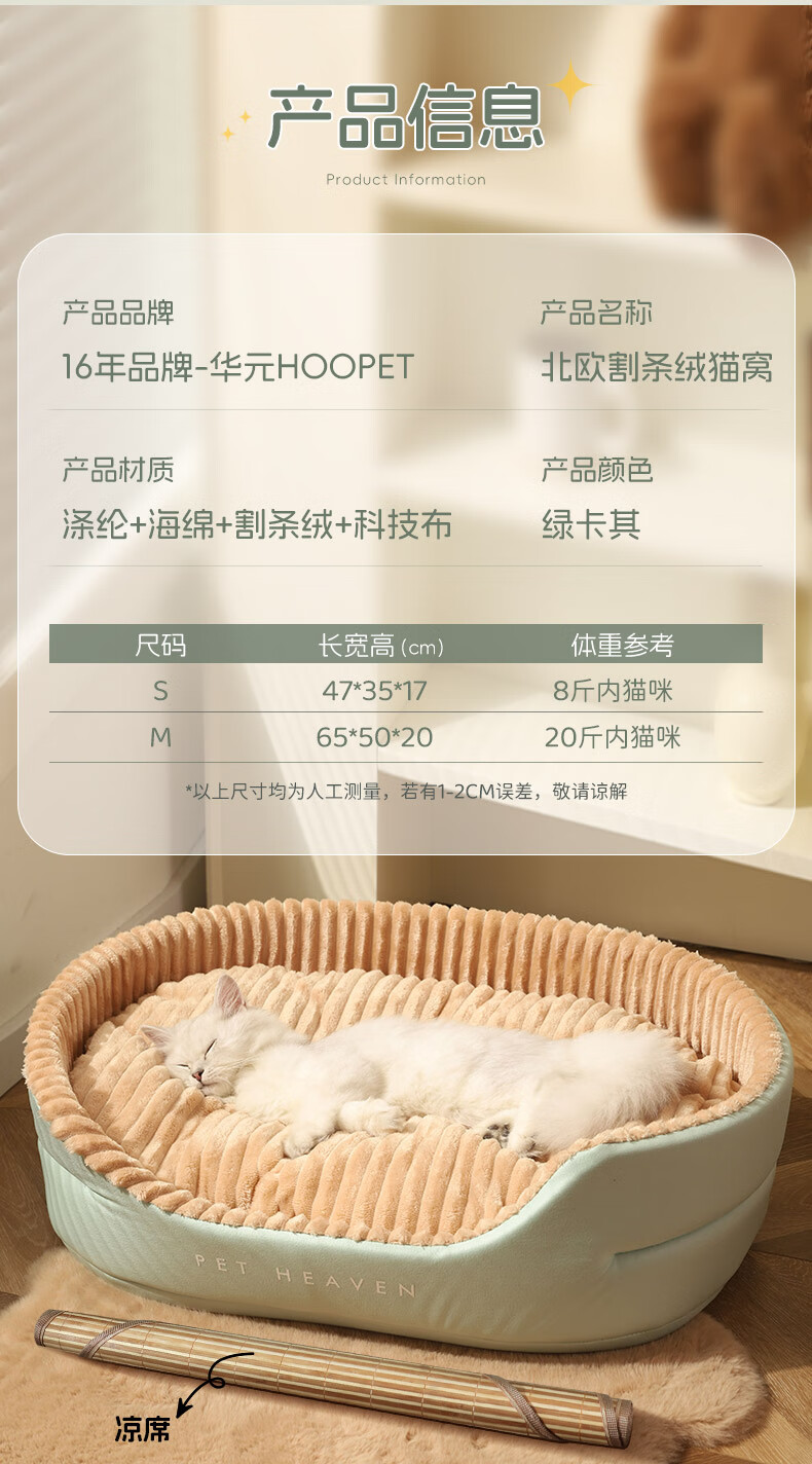 华元宠具(hoopet)猫窝四季通用猫咪床狗狗窝秋冬季保暖宠物沙发睡觉用可拆洗睡垫子