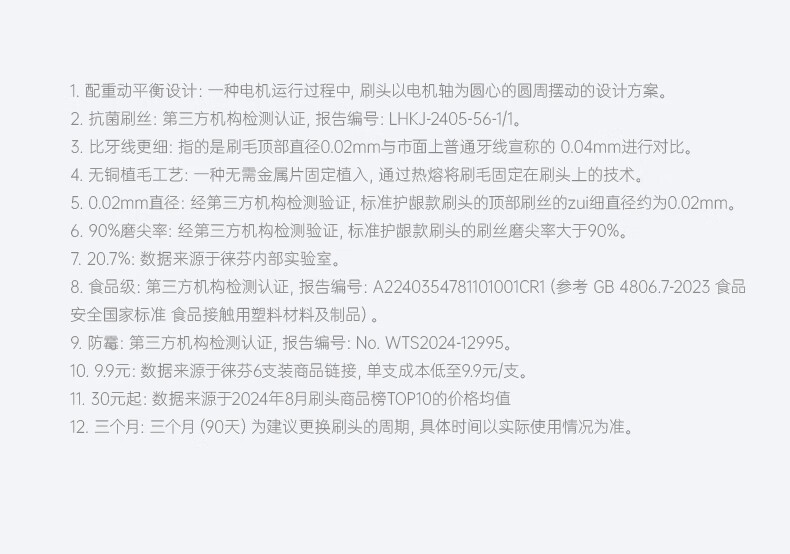 徕芬电动牙刷官配缓震刷头 光感亮白款6支装生日