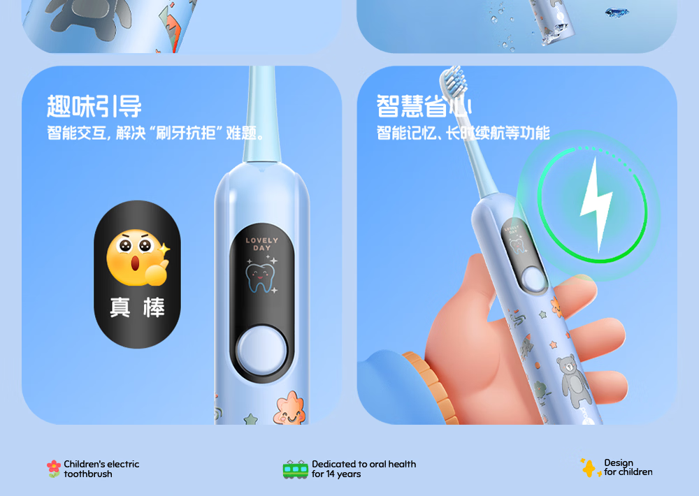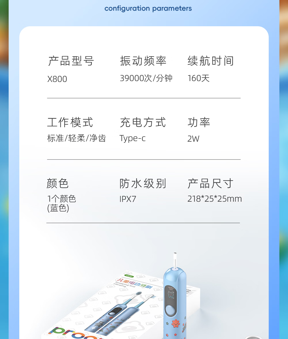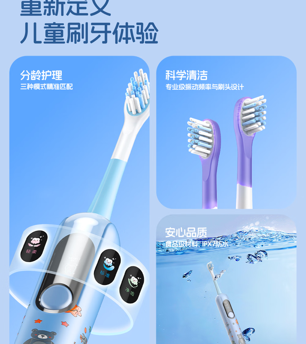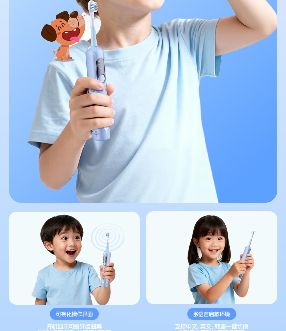 博皓(prooral)儿童电动牙刷5-12岁青少年儿童声波振动智能牙刷软毛清洁防蛀牙护龈 儿童节生日礼物 X800 蓝色| 智能数显| 趣味互动