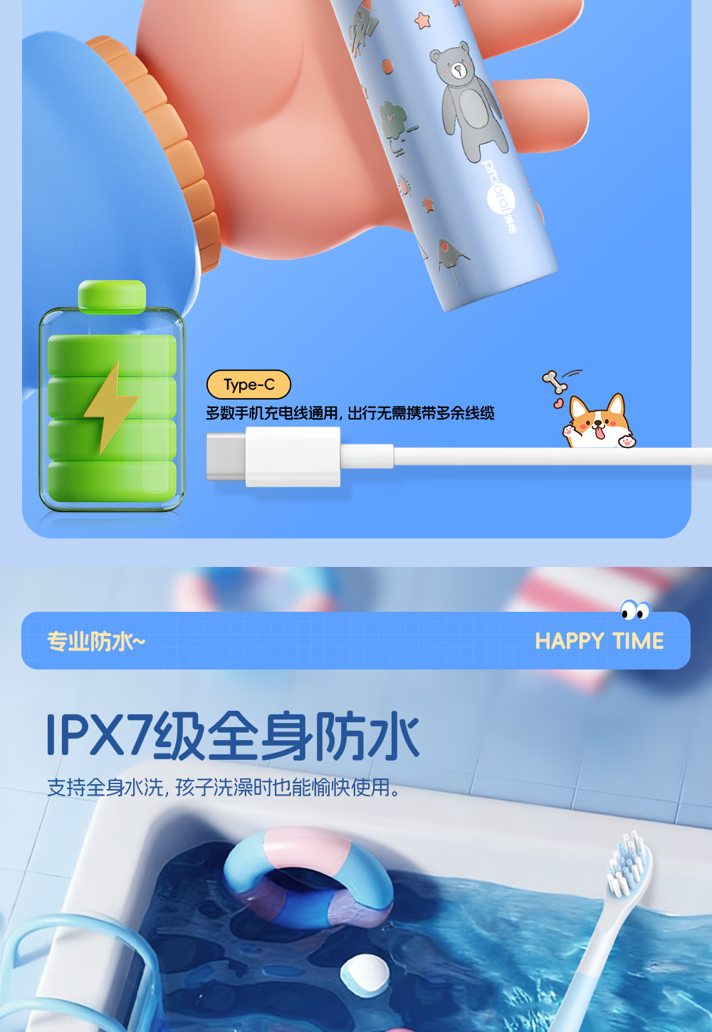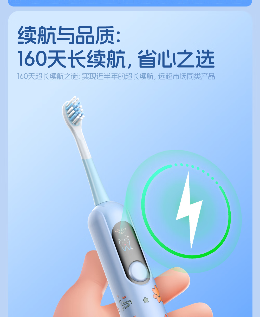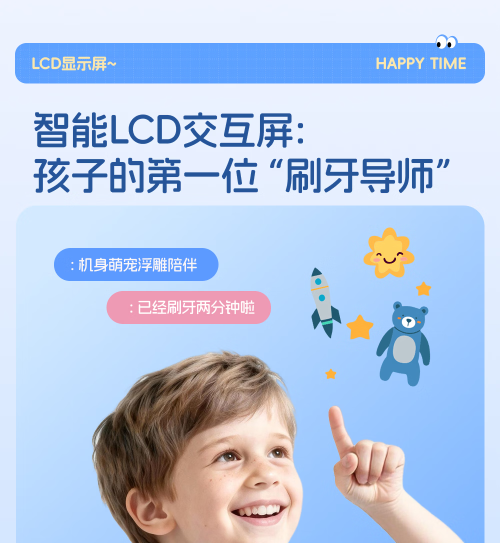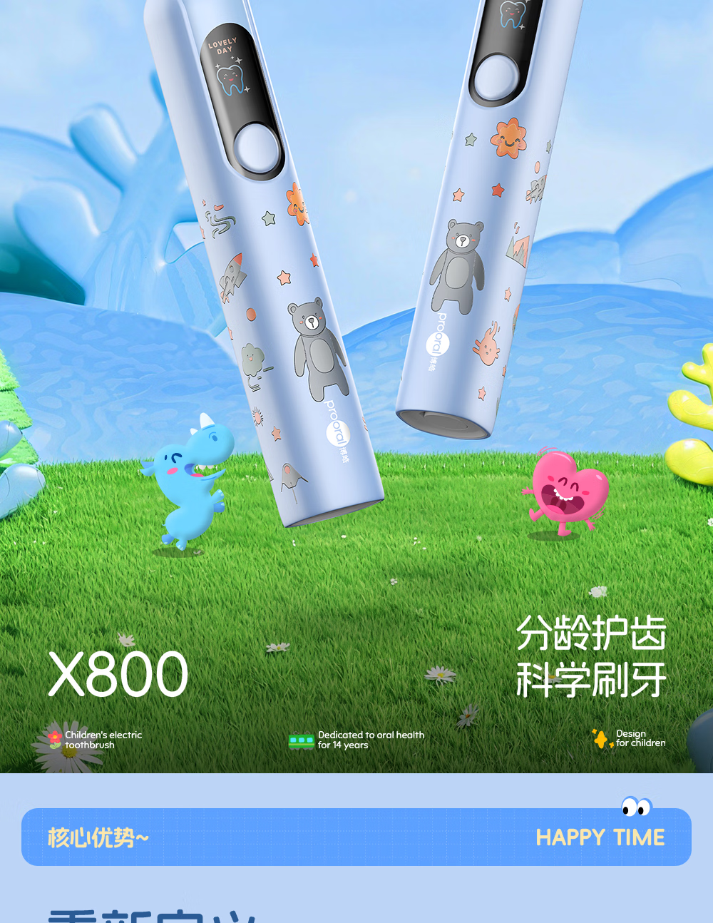 博皓(prooral)儿童电动牙刷5-12岁青少年儿童声波振动智能牙刷软毛清洁防蛀牙护龈 儿童节生日礼物 X800 蓝色| 智能数显| 趣味互动